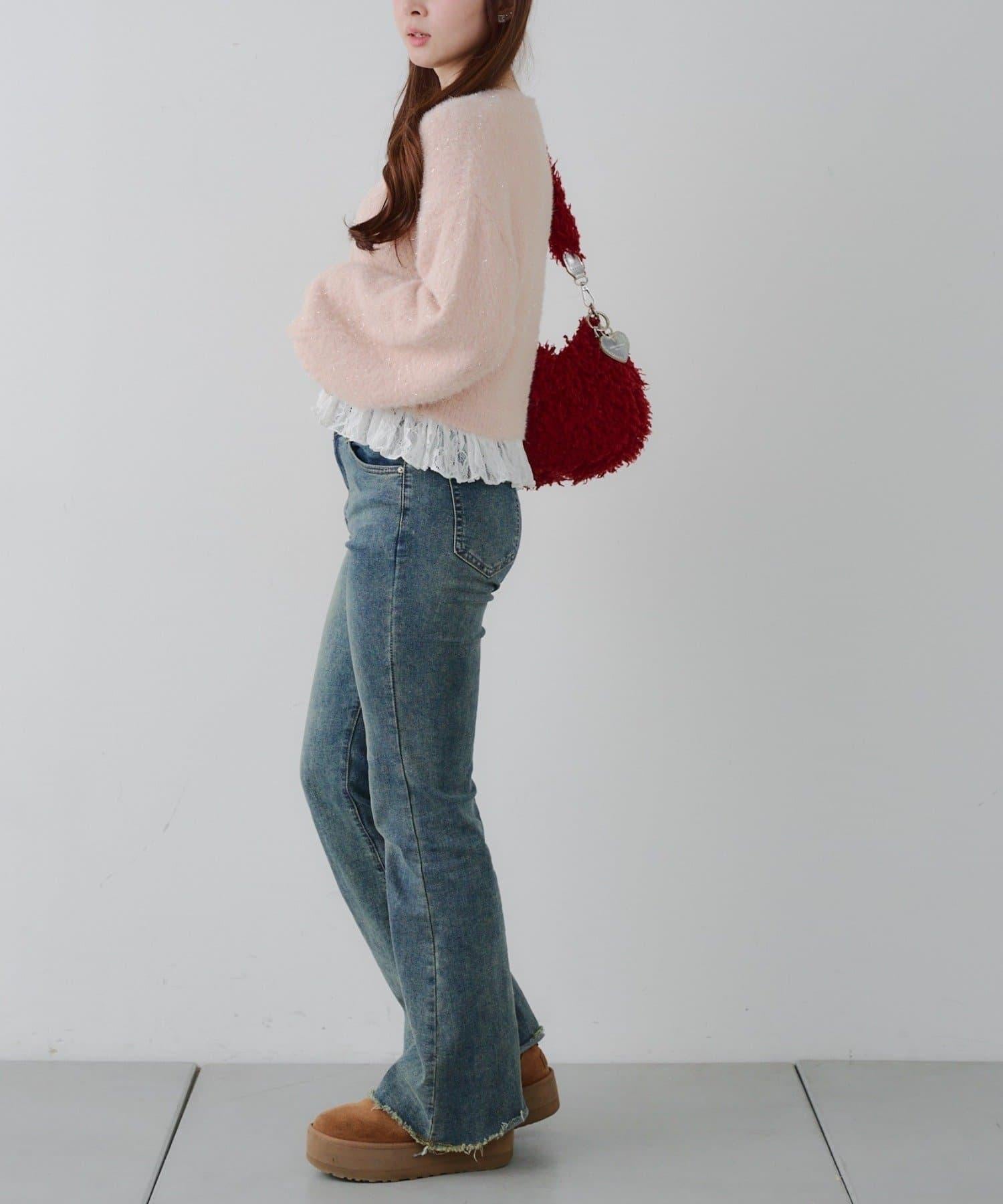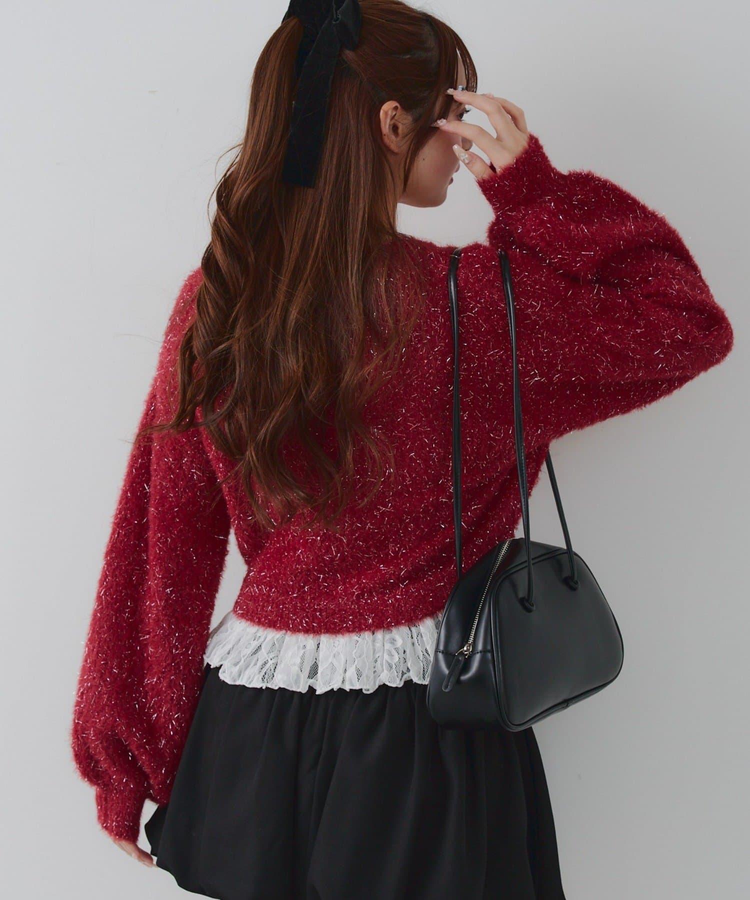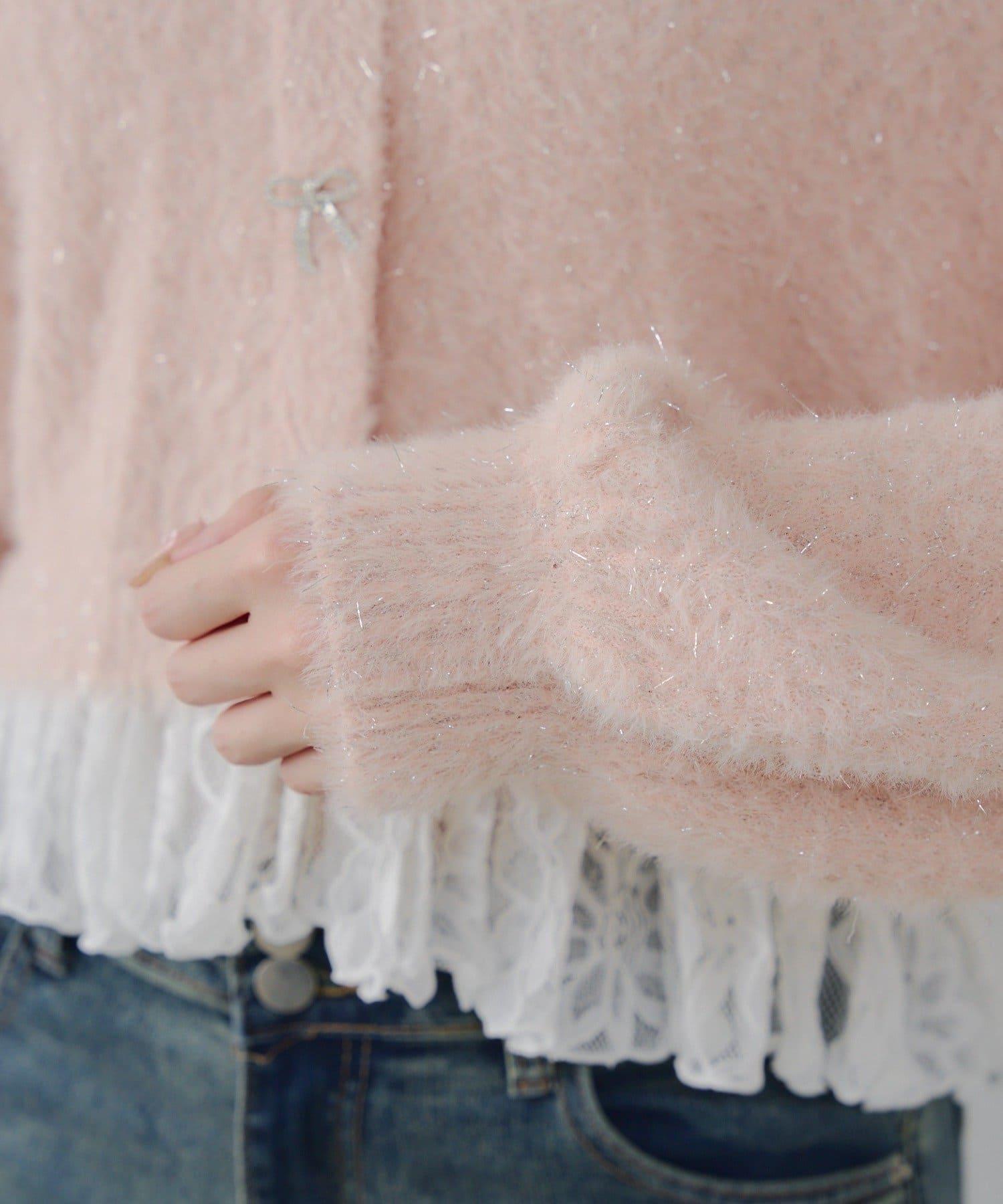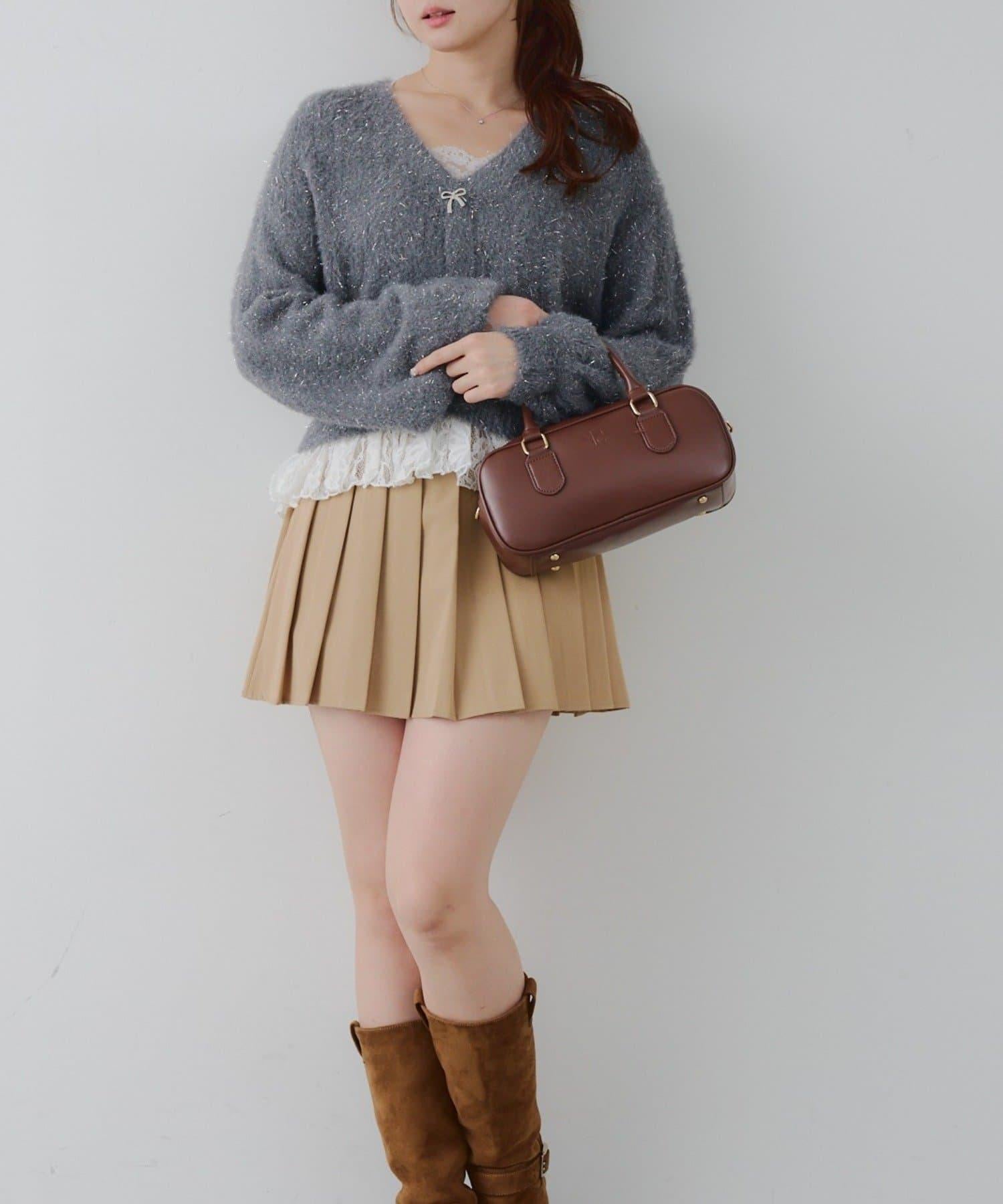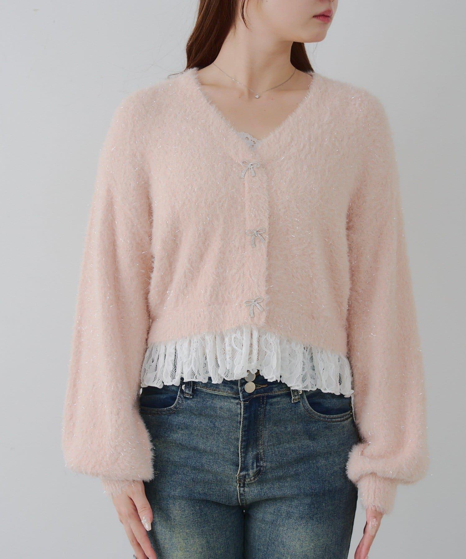 閃亮的絲帶圖案♪短款開衫,讓您的秋冬搭配更加可愛。