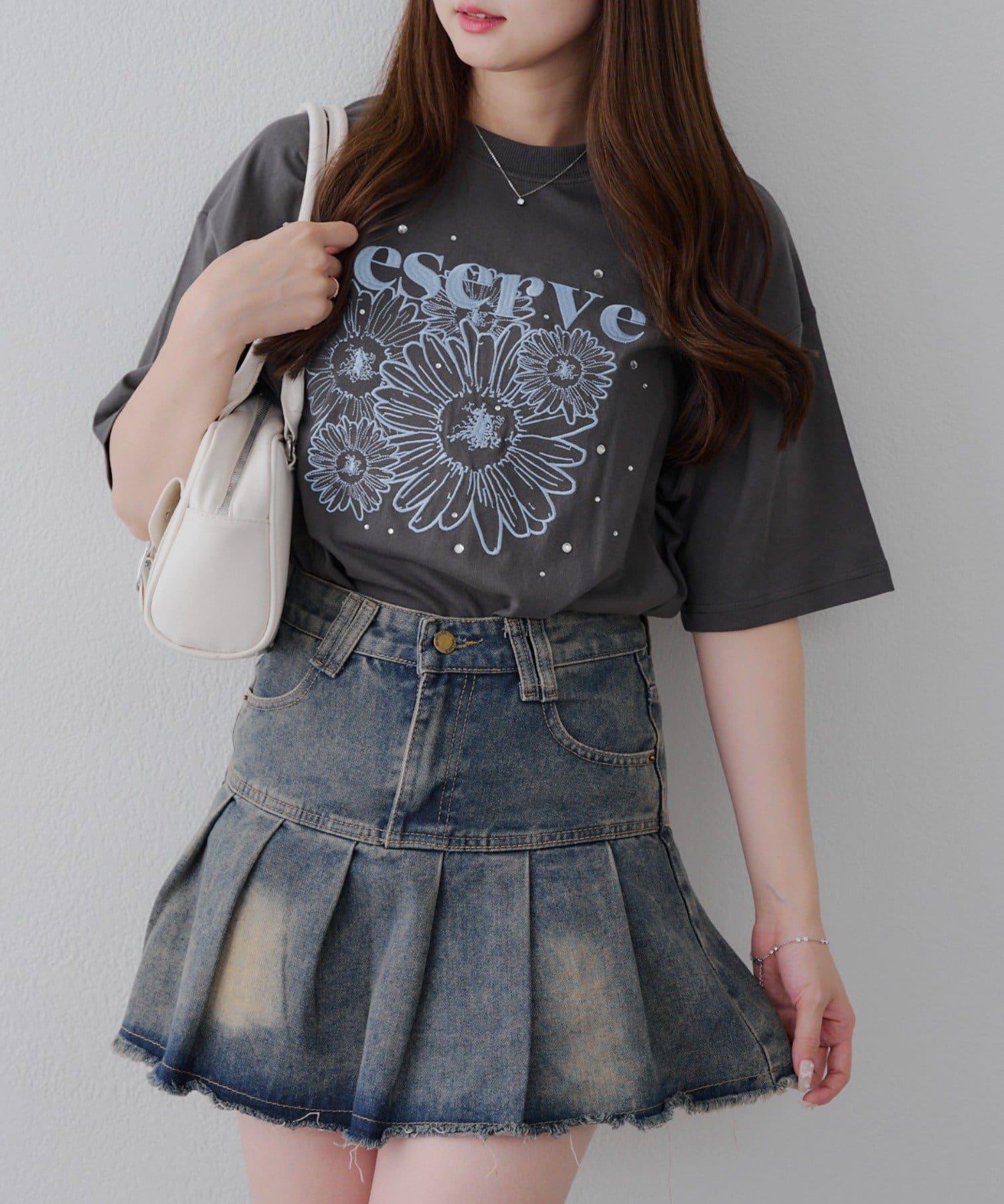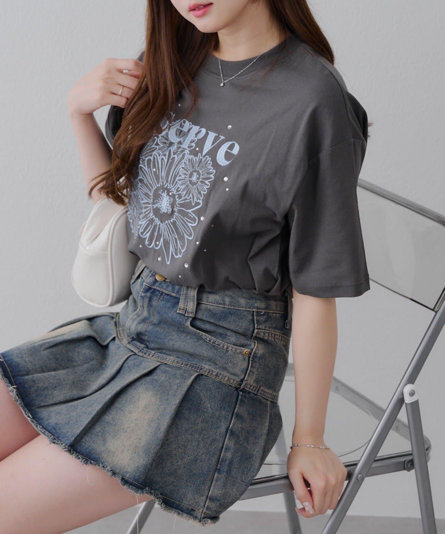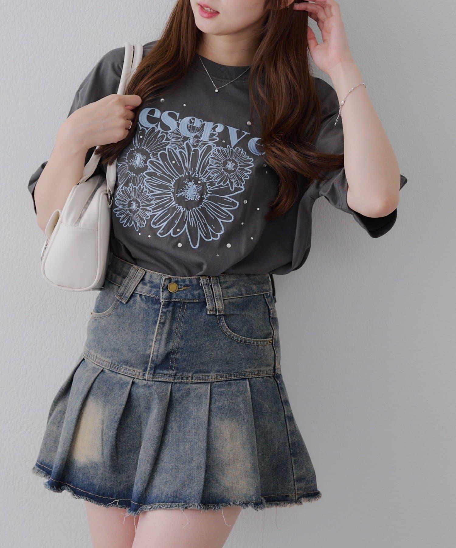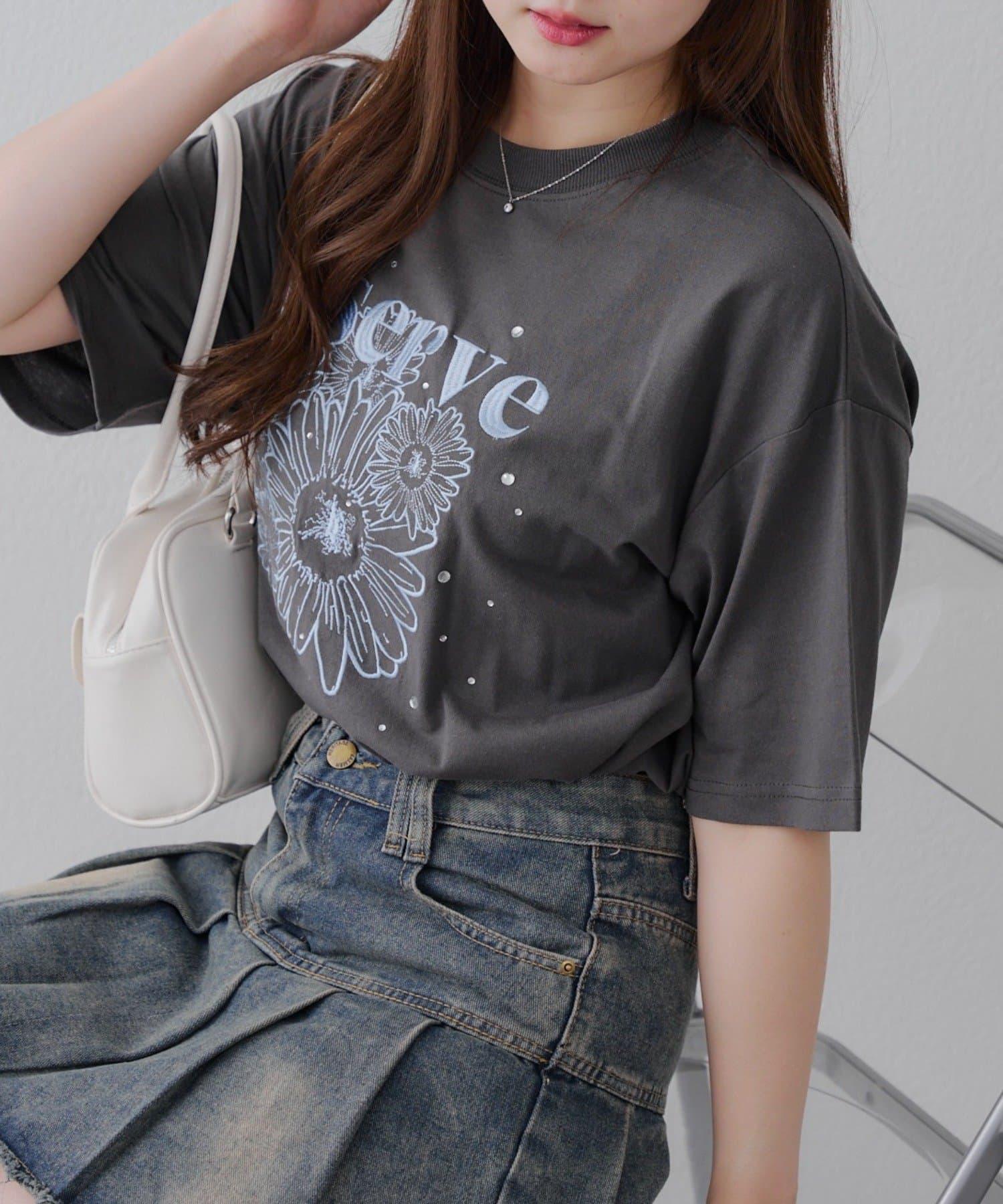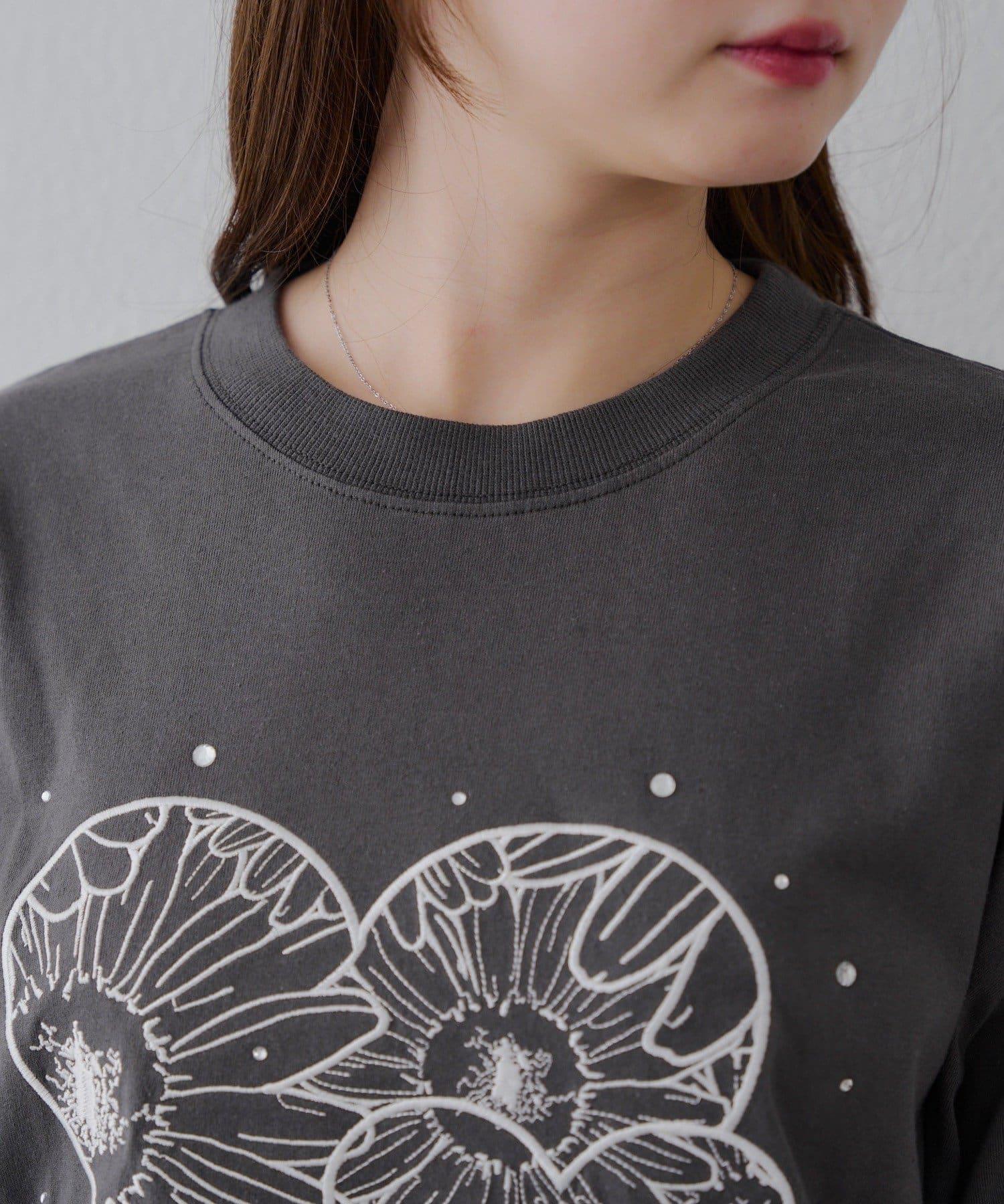 這款 T 恤上的花朵刺繡給人一種華麗的感覺。