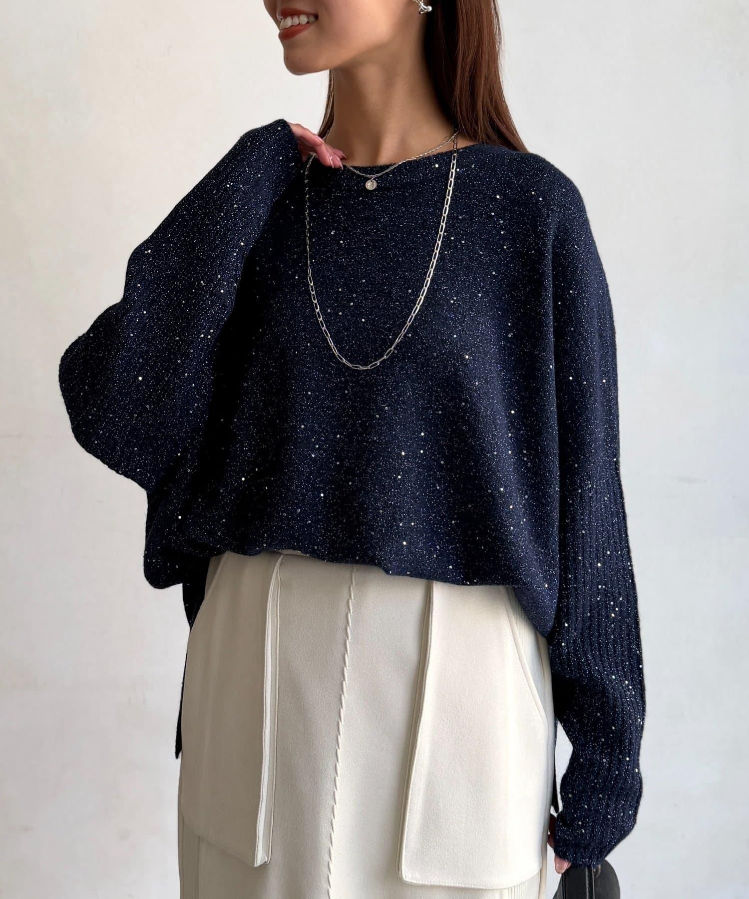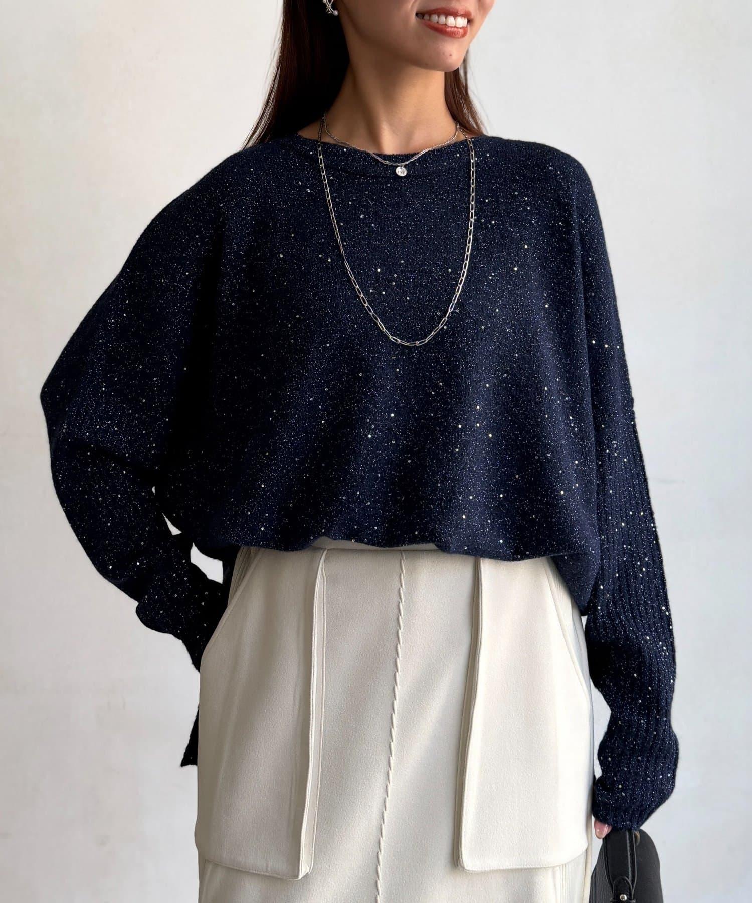 亮片蝙蝠袖針織套頭衫