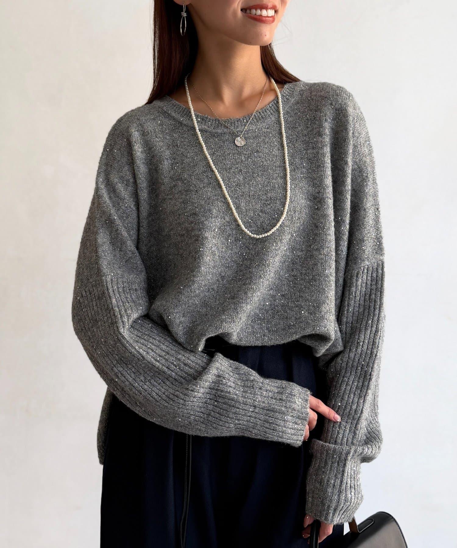 溫暖的羊毛混紡針織衫以亮片裝飾,給人耳目一新的感覺。