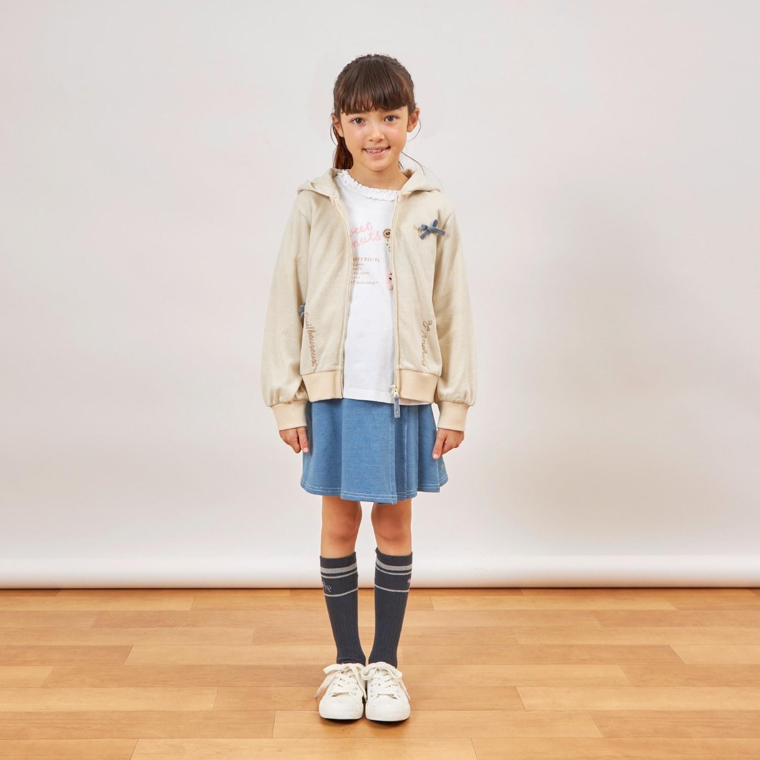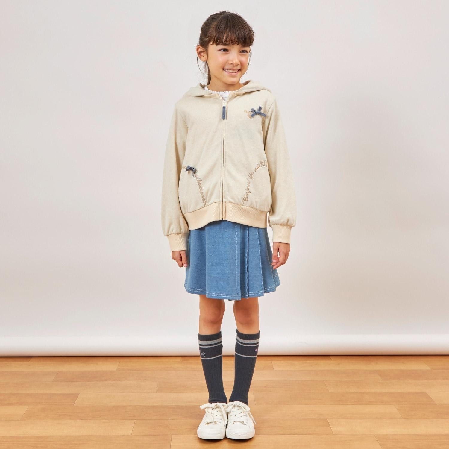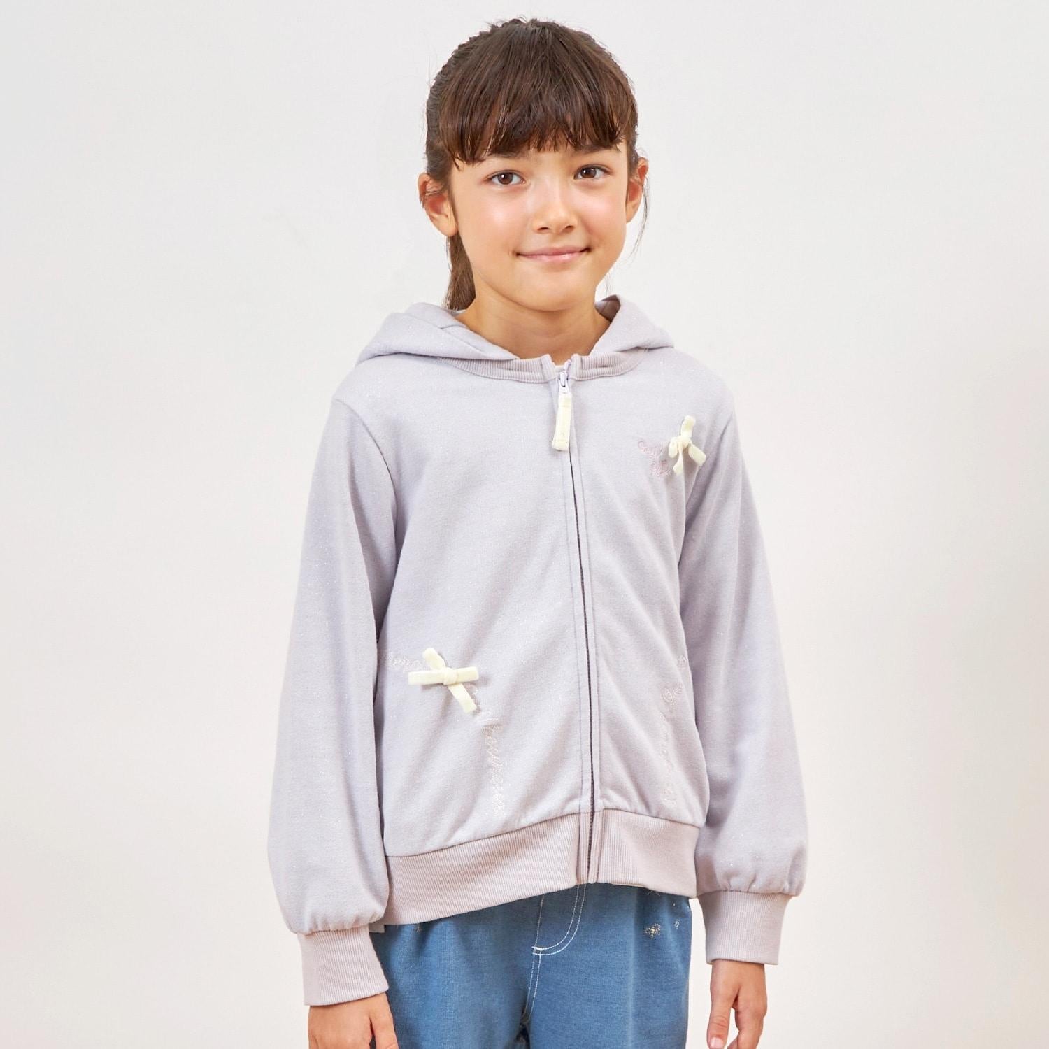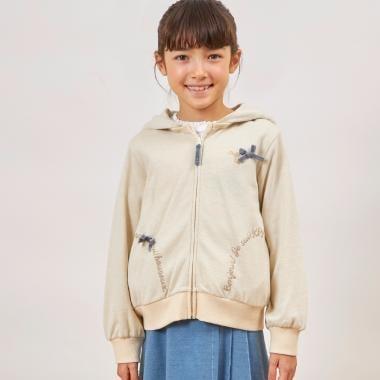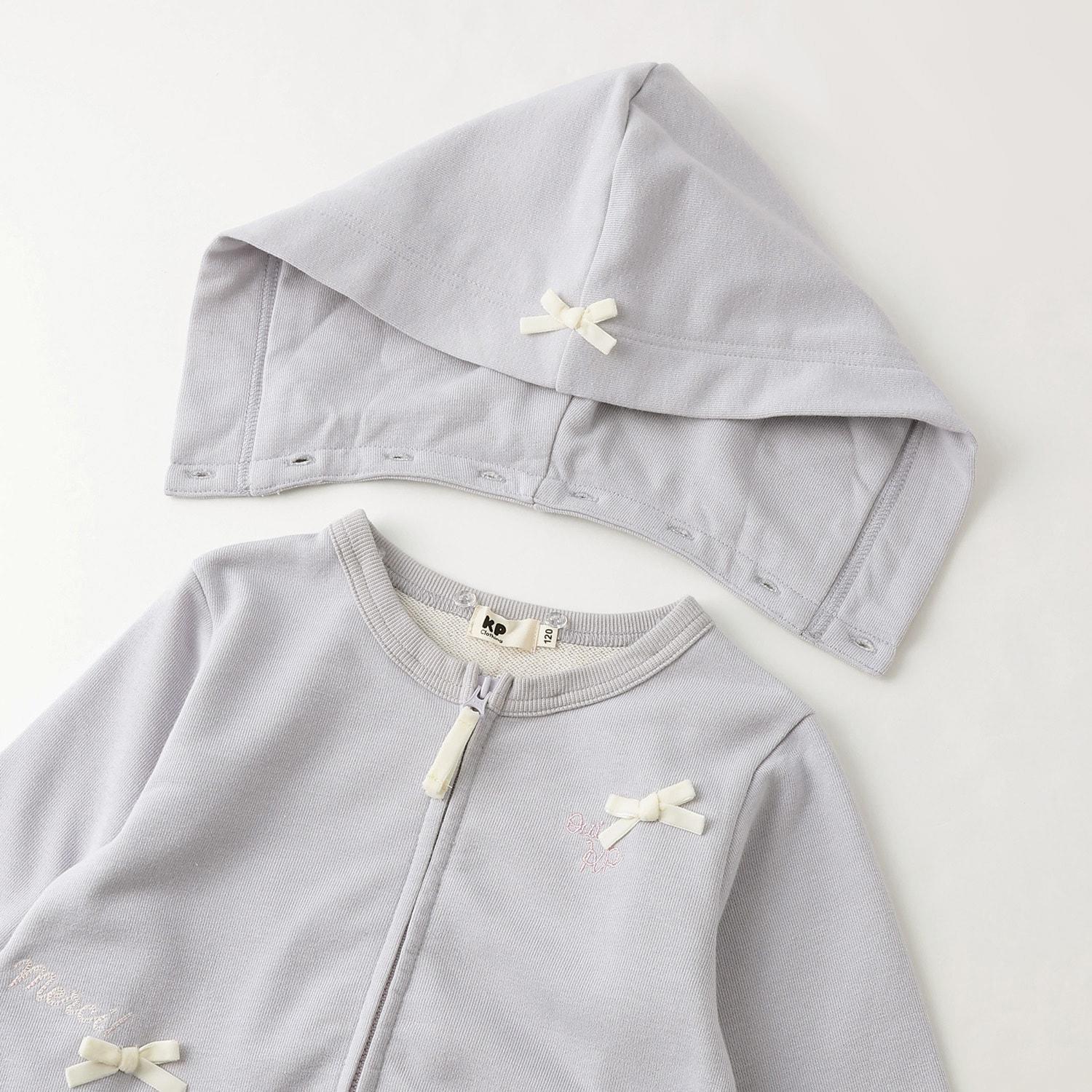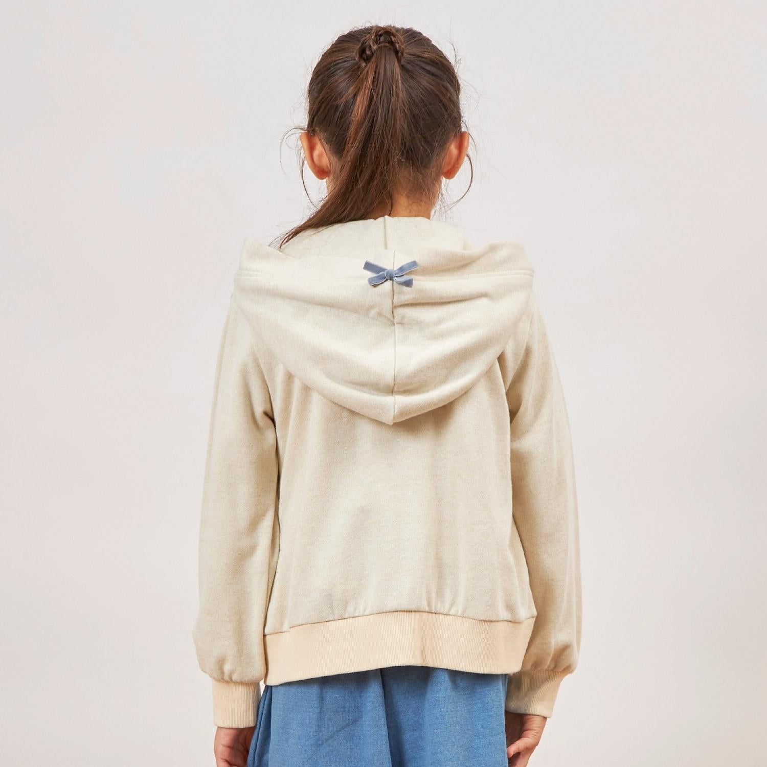 口袋弧線上的徽標刺繡以及兜帽和衣身的絲絨緞帶給人一種精緻漂亮的印象。