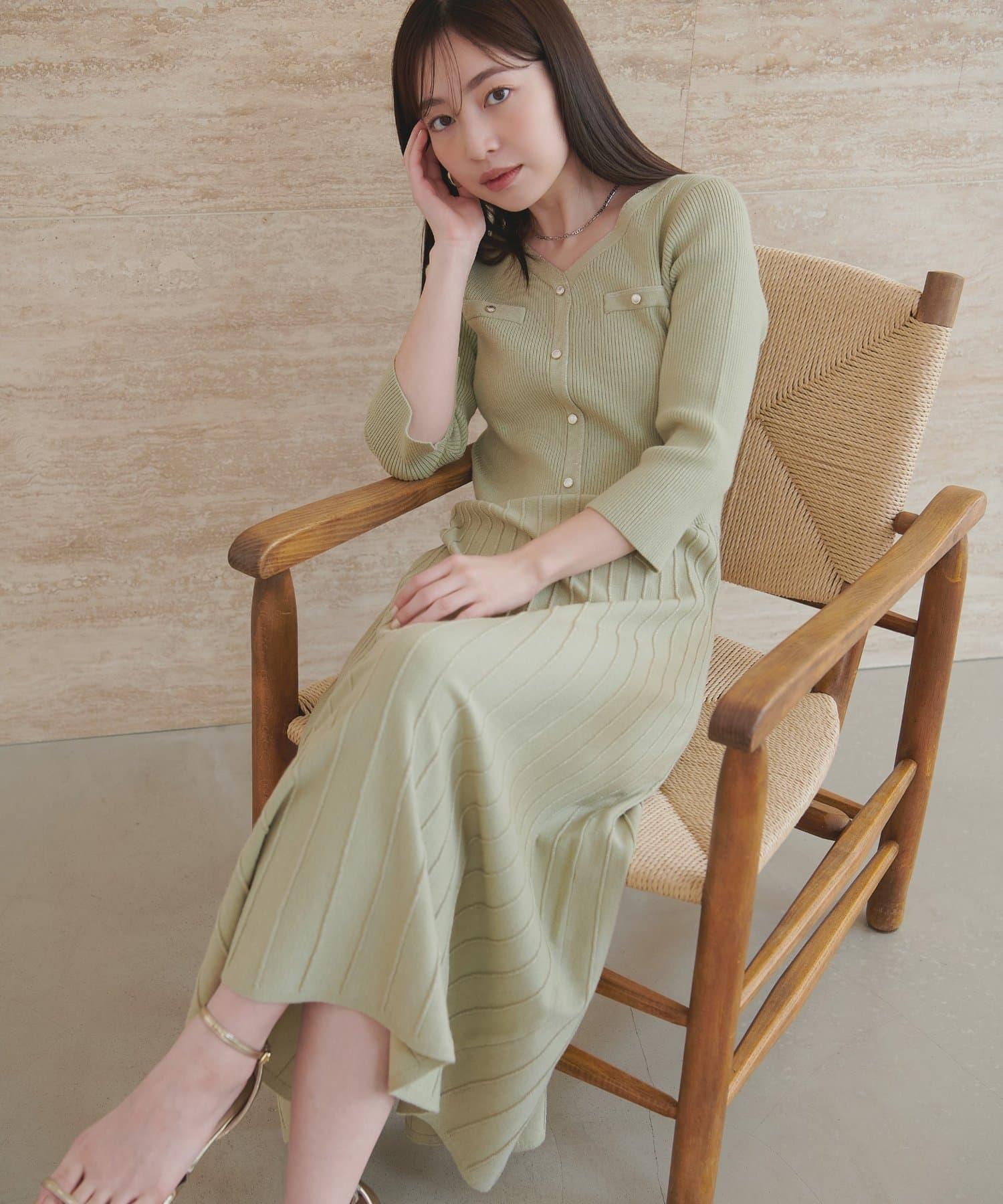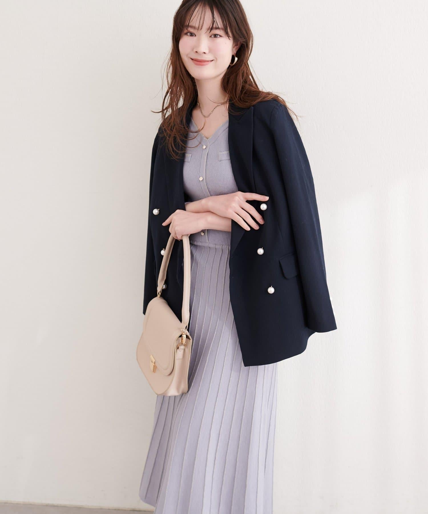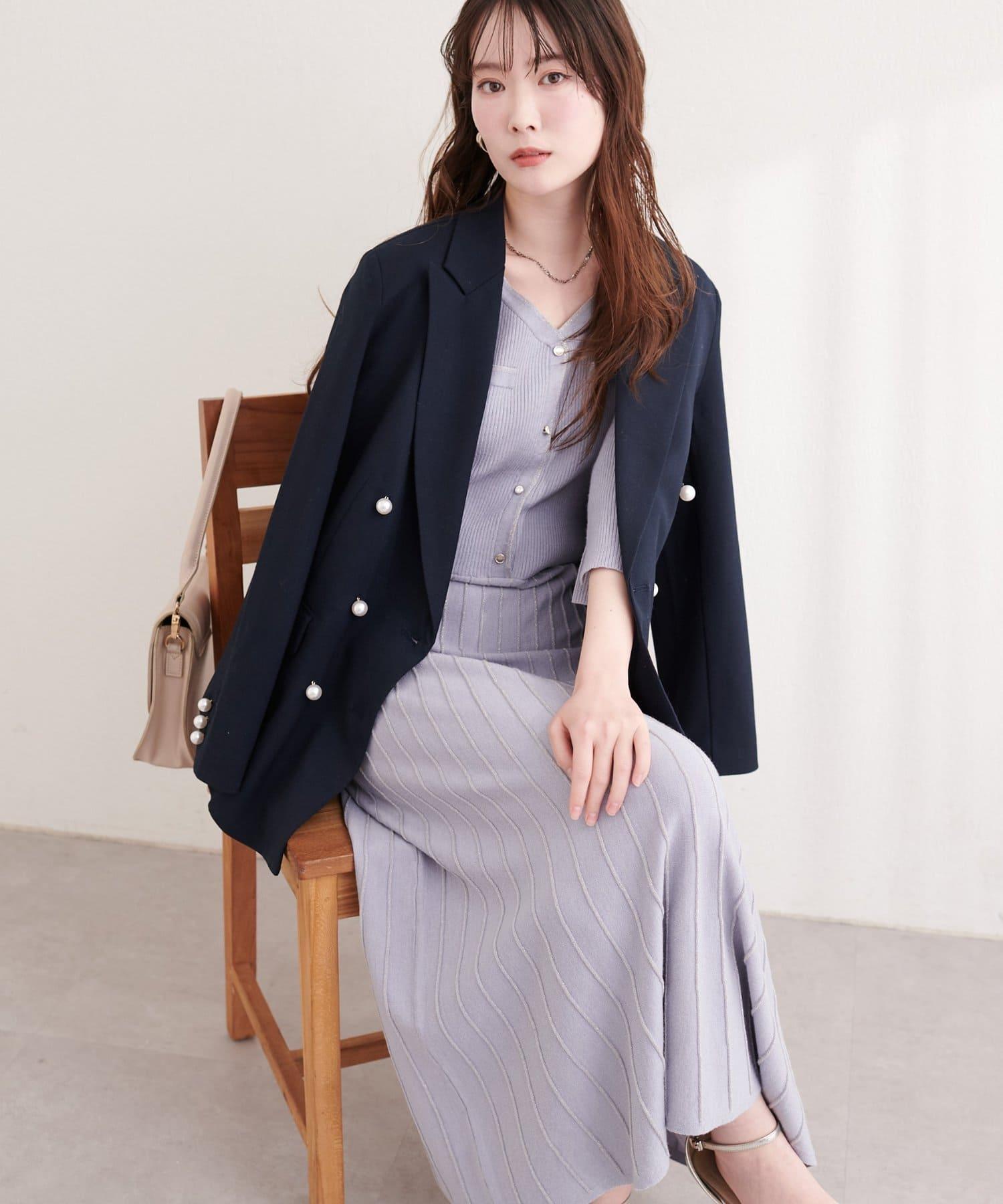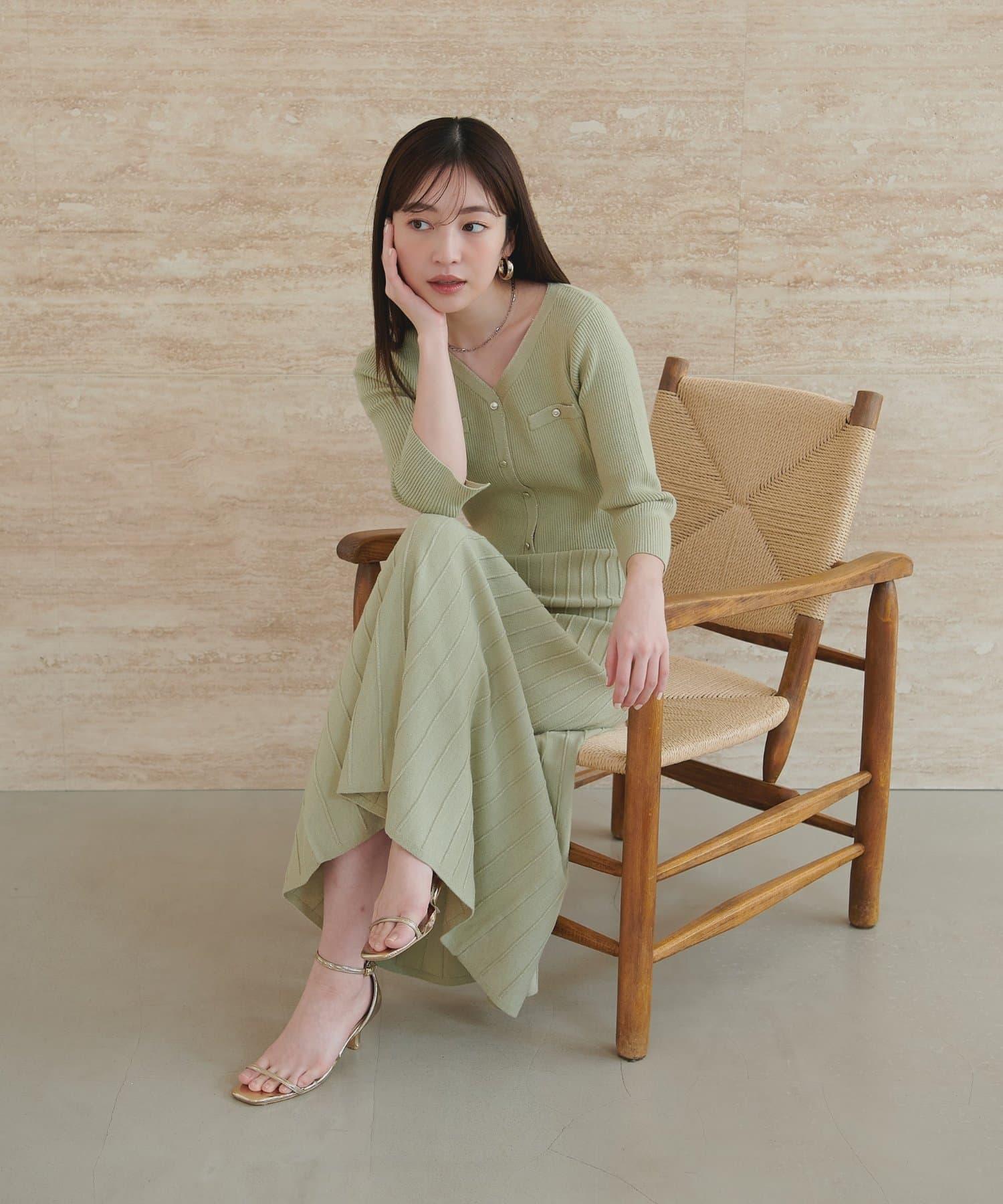 針織面料在上半身和下半身之間變換,營造出利落的設計感。