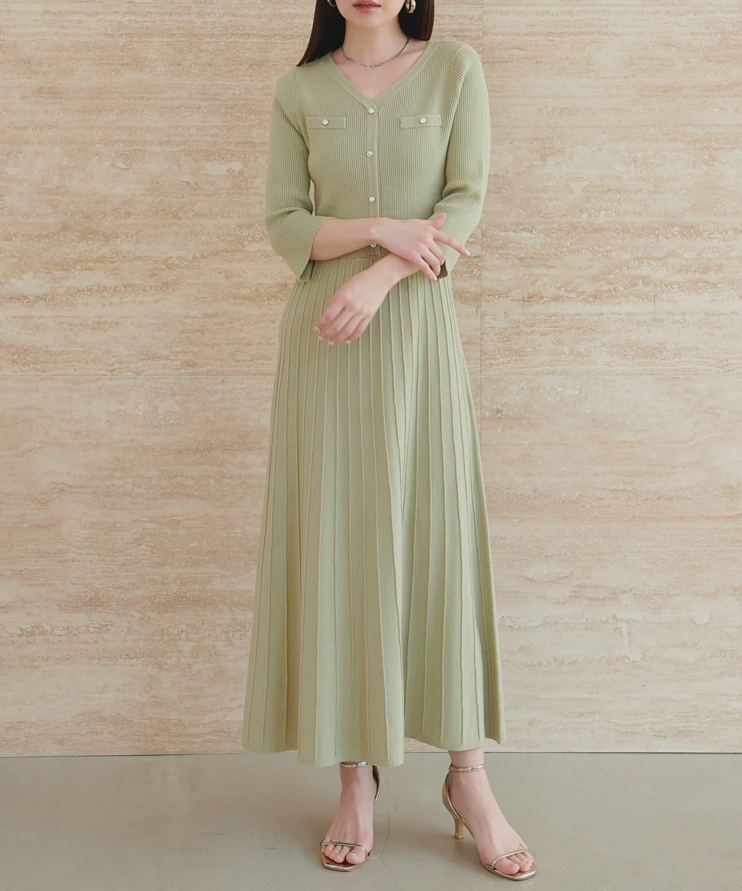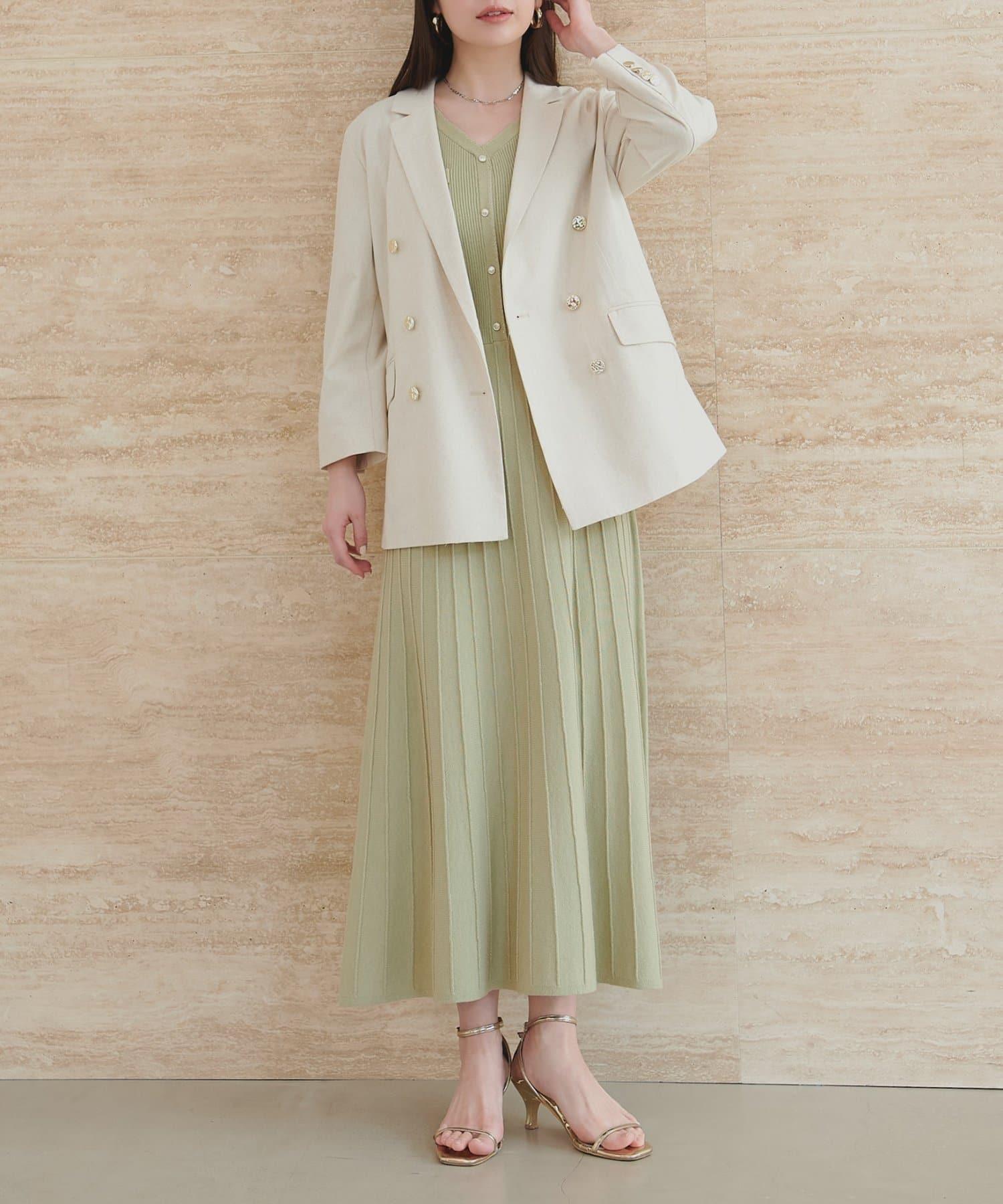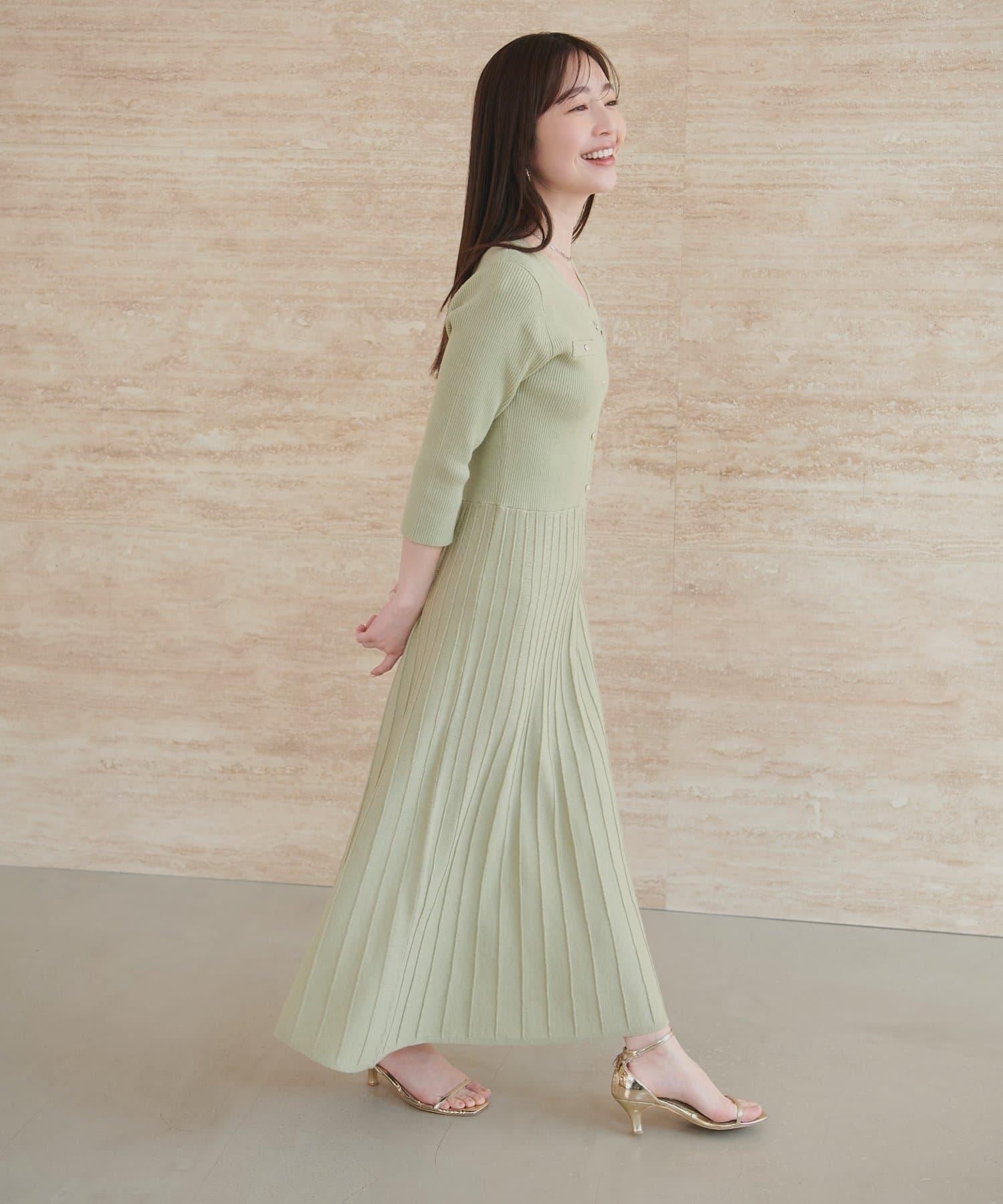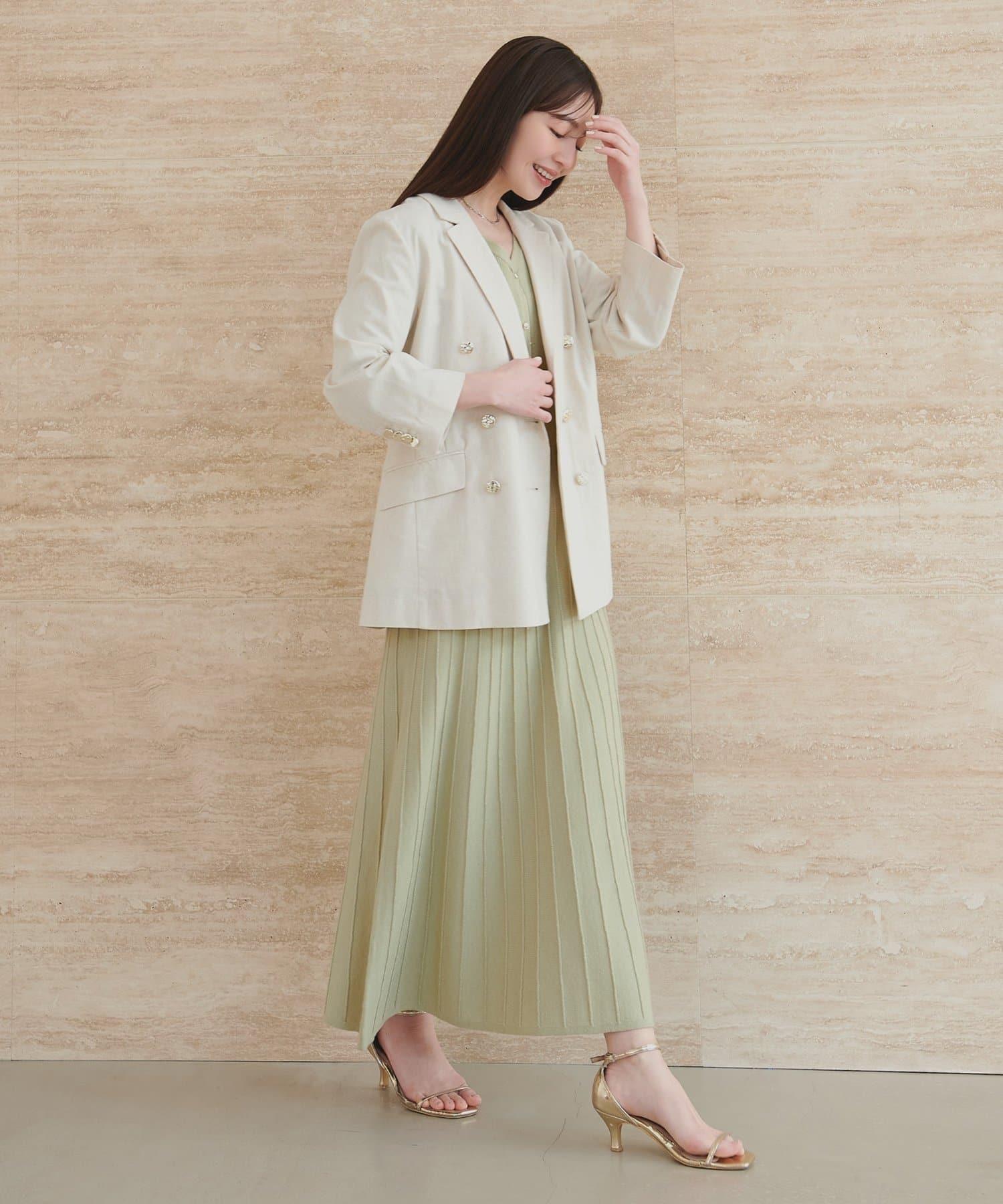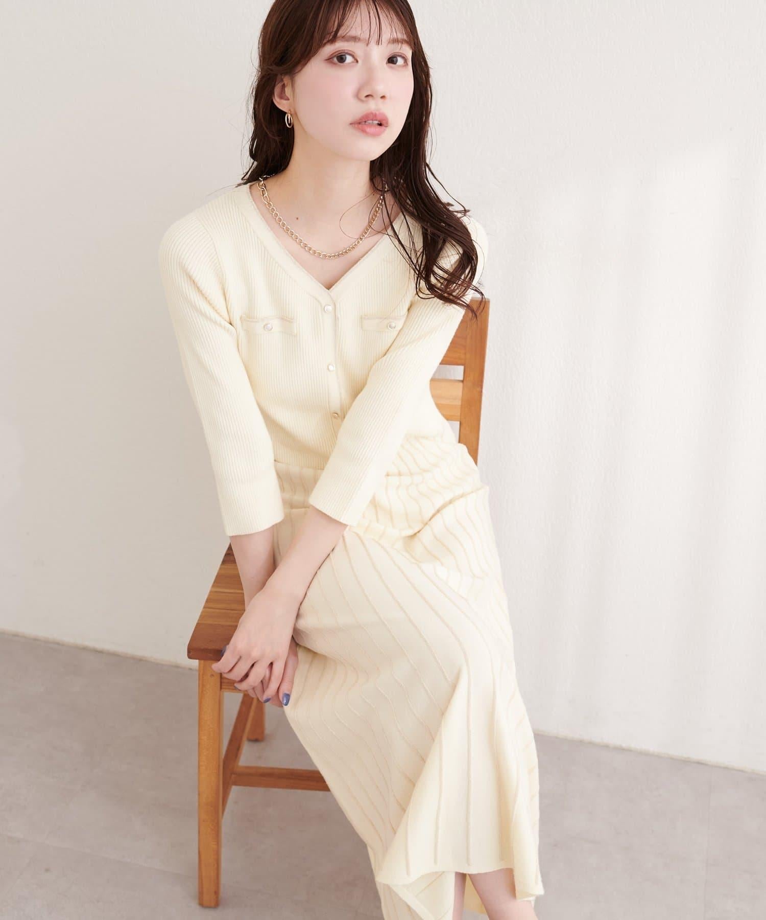 針織面料在上半身和下半身之間變換,營造出利落的設計感。