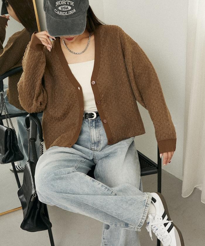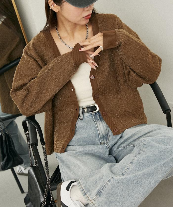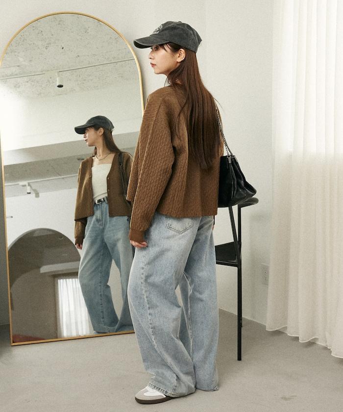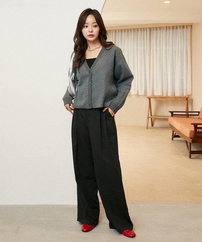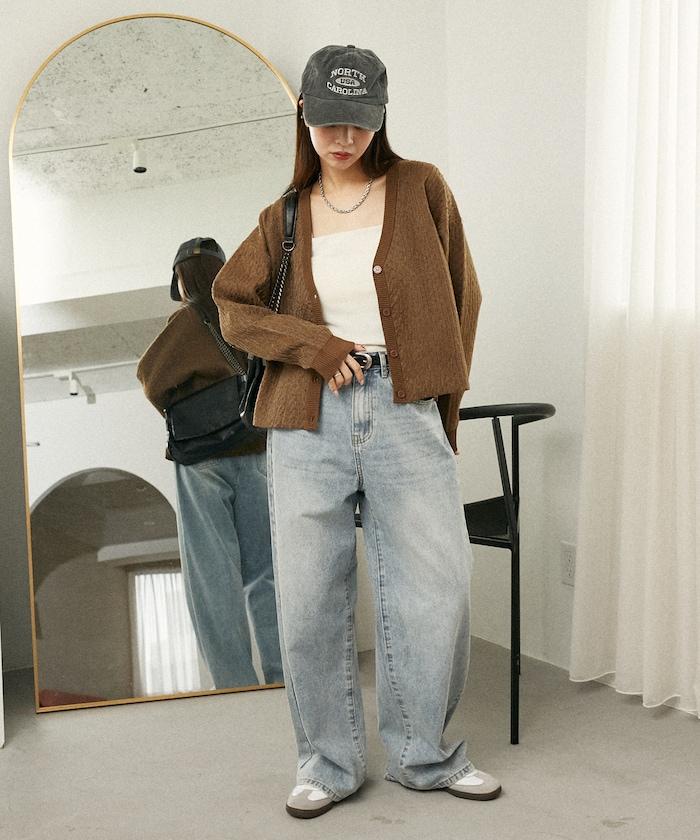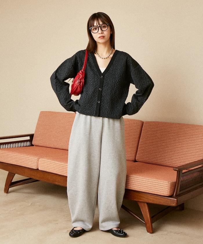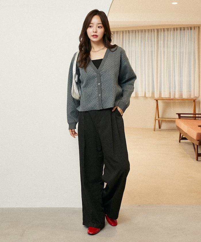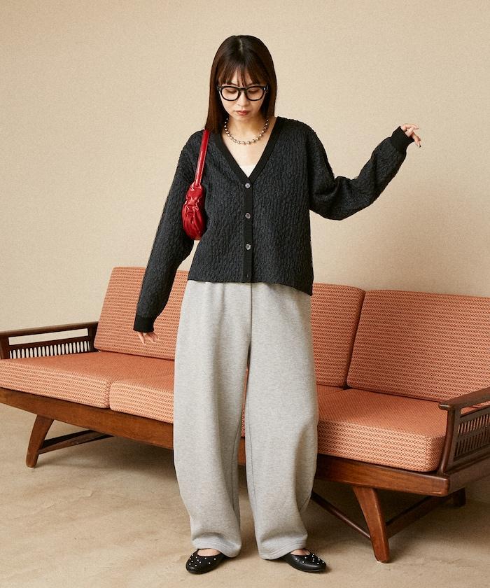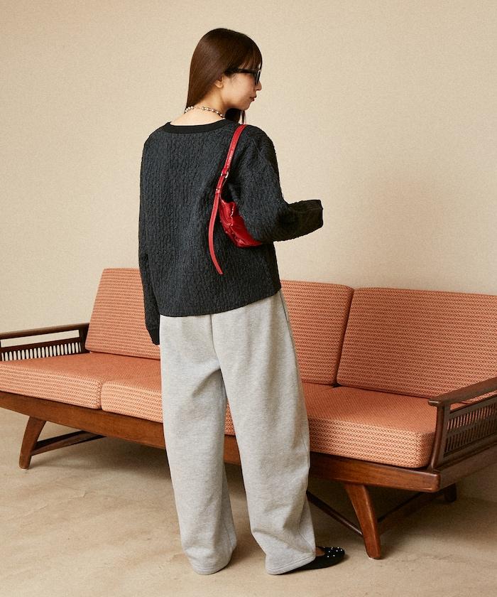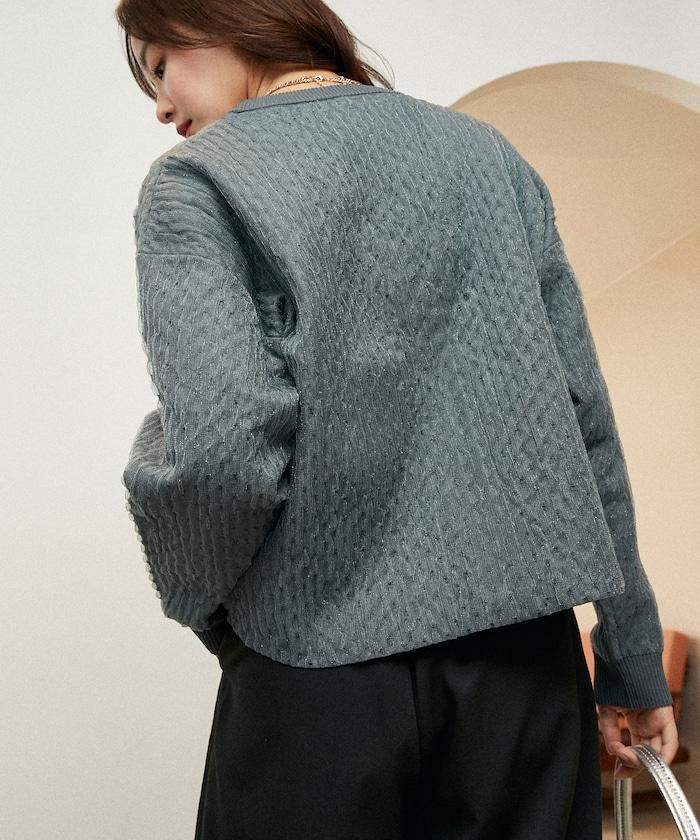 搭配簡單的 T 恤,完成寬鬆的搭配,展現提花的立體效果。