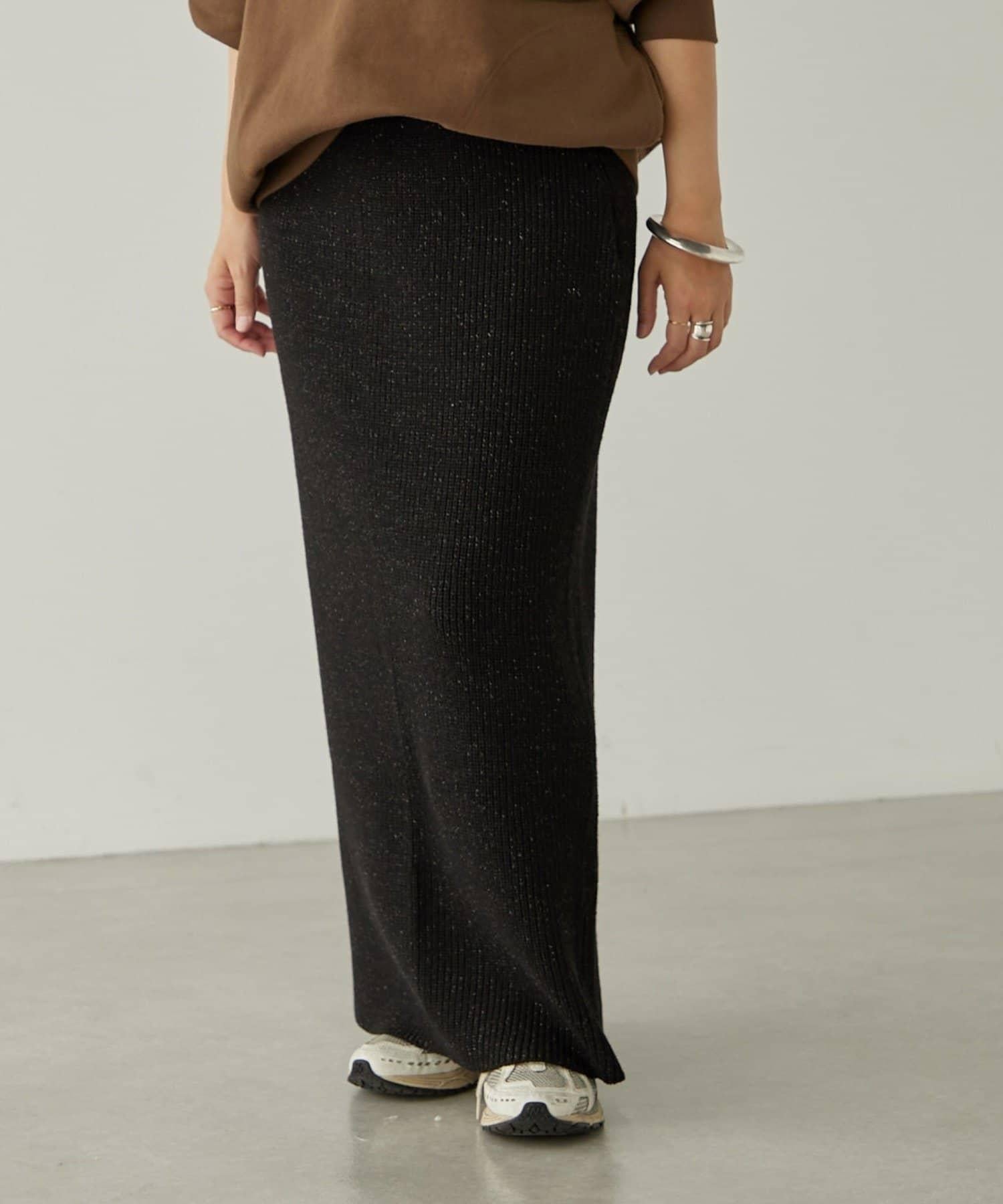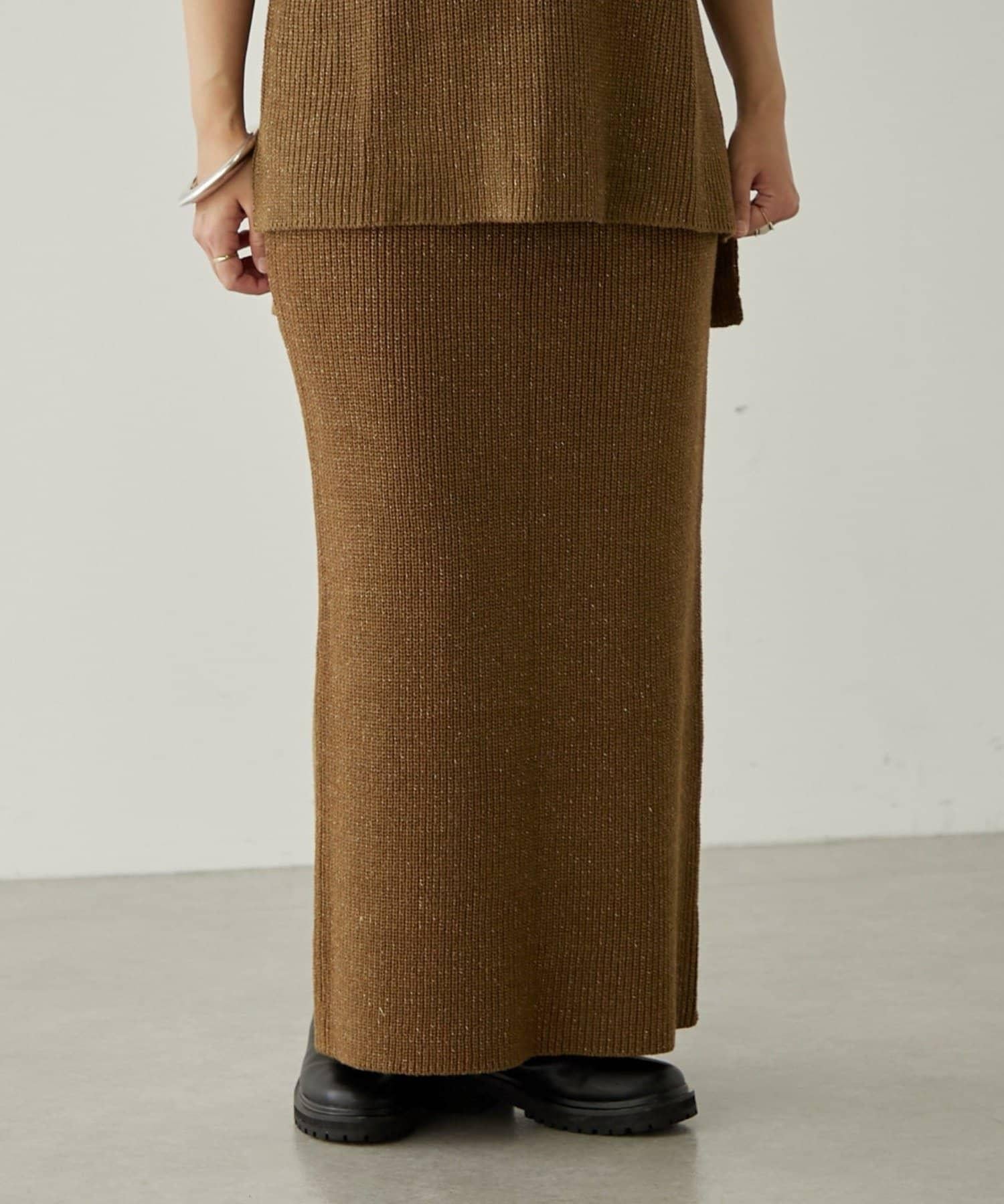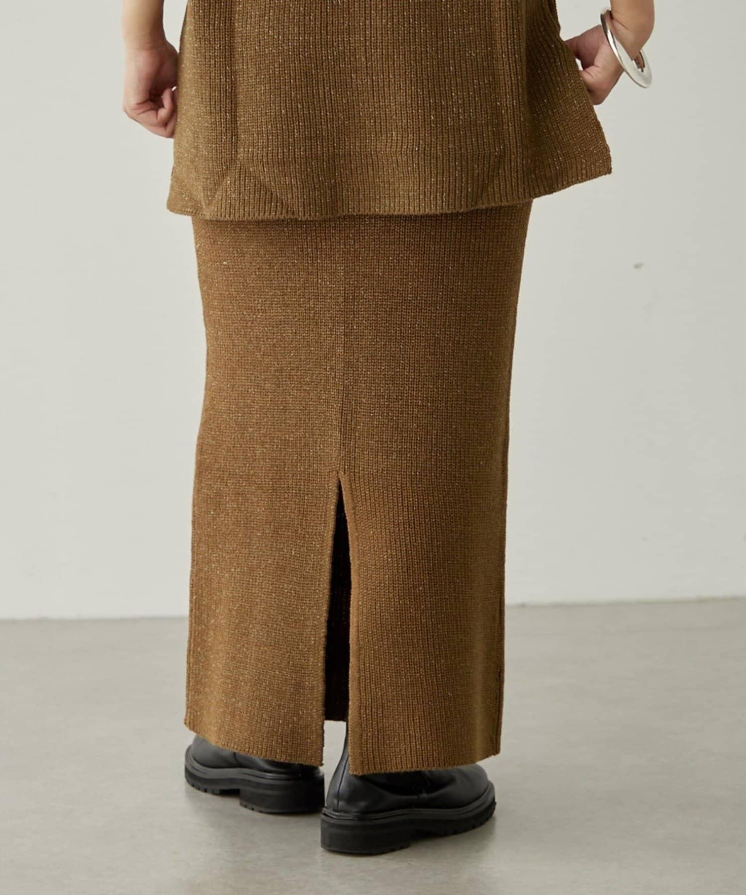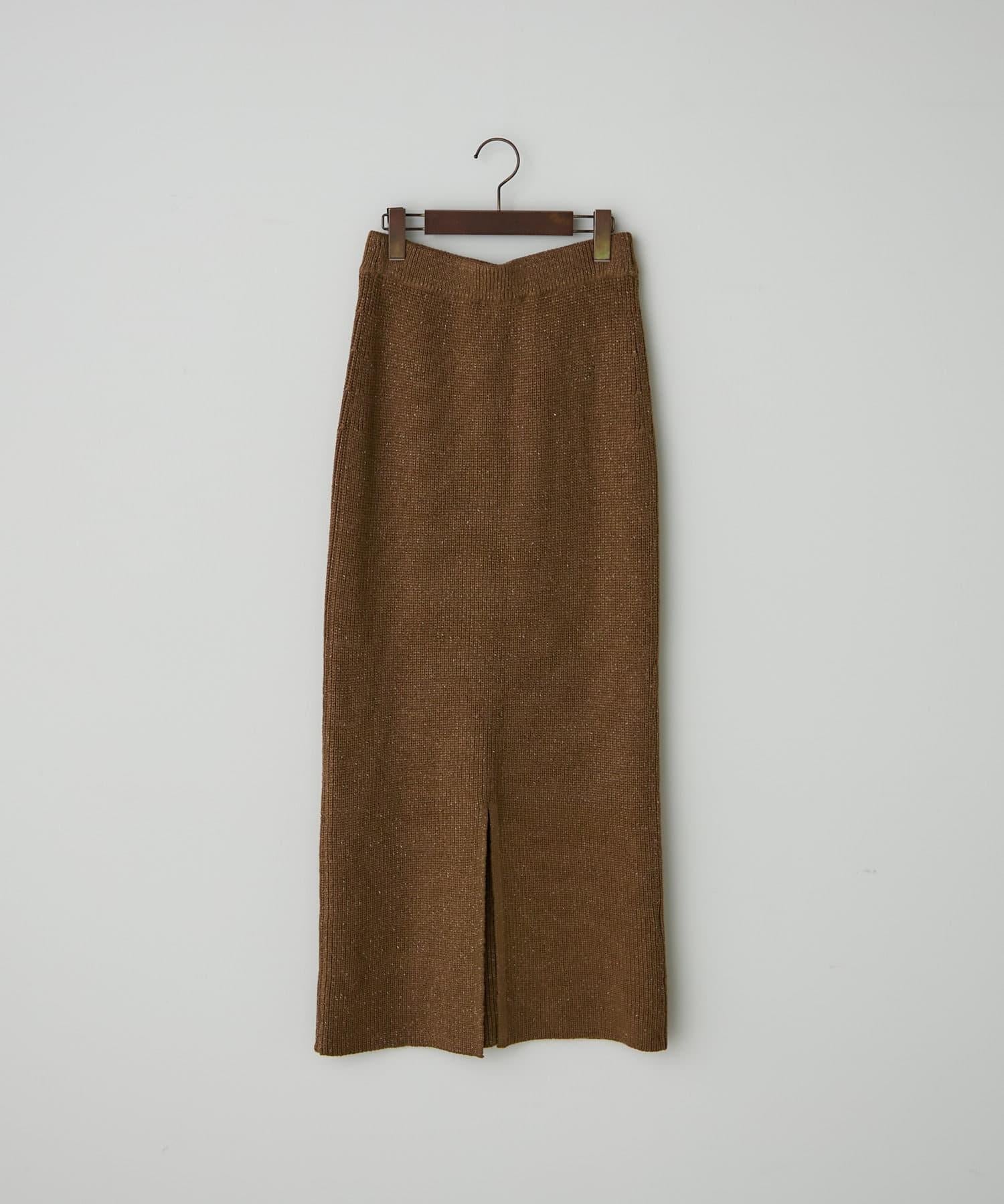 這款時髦的針織裙單面採用混有微微閃爍的薄片的紗線編織而成。