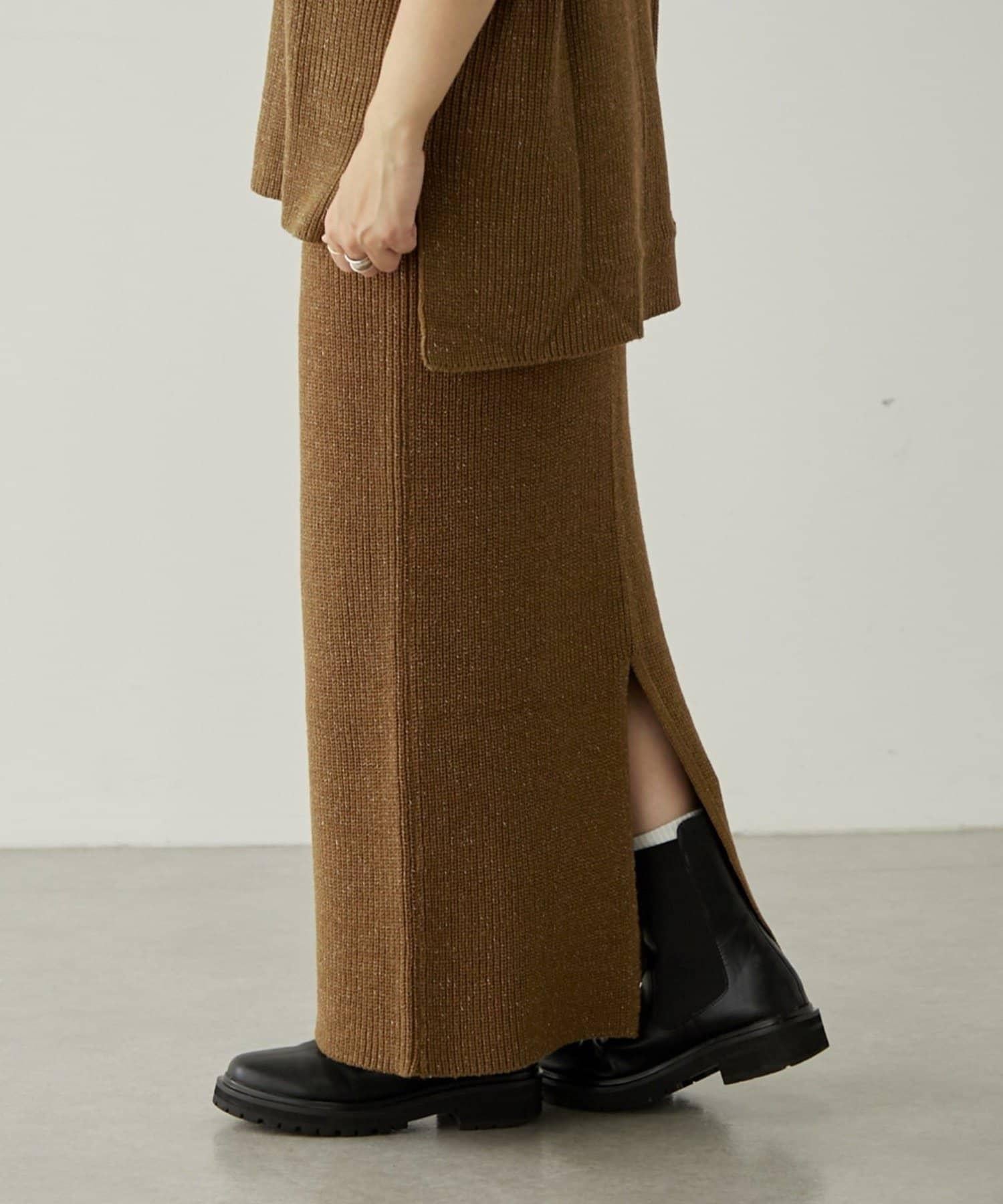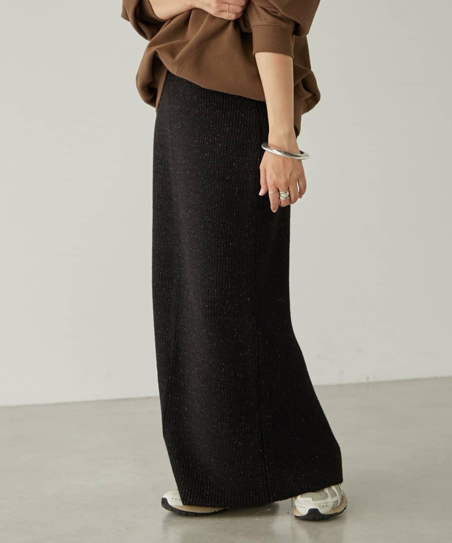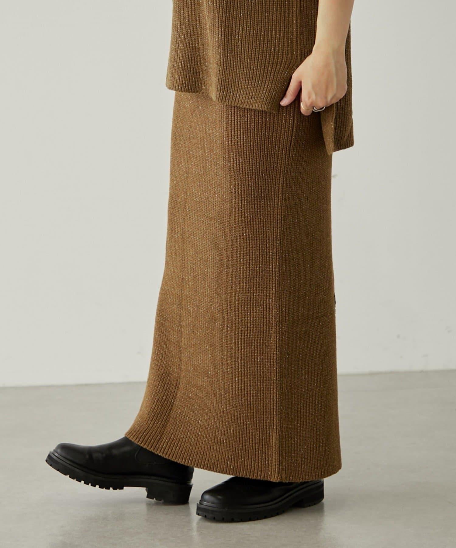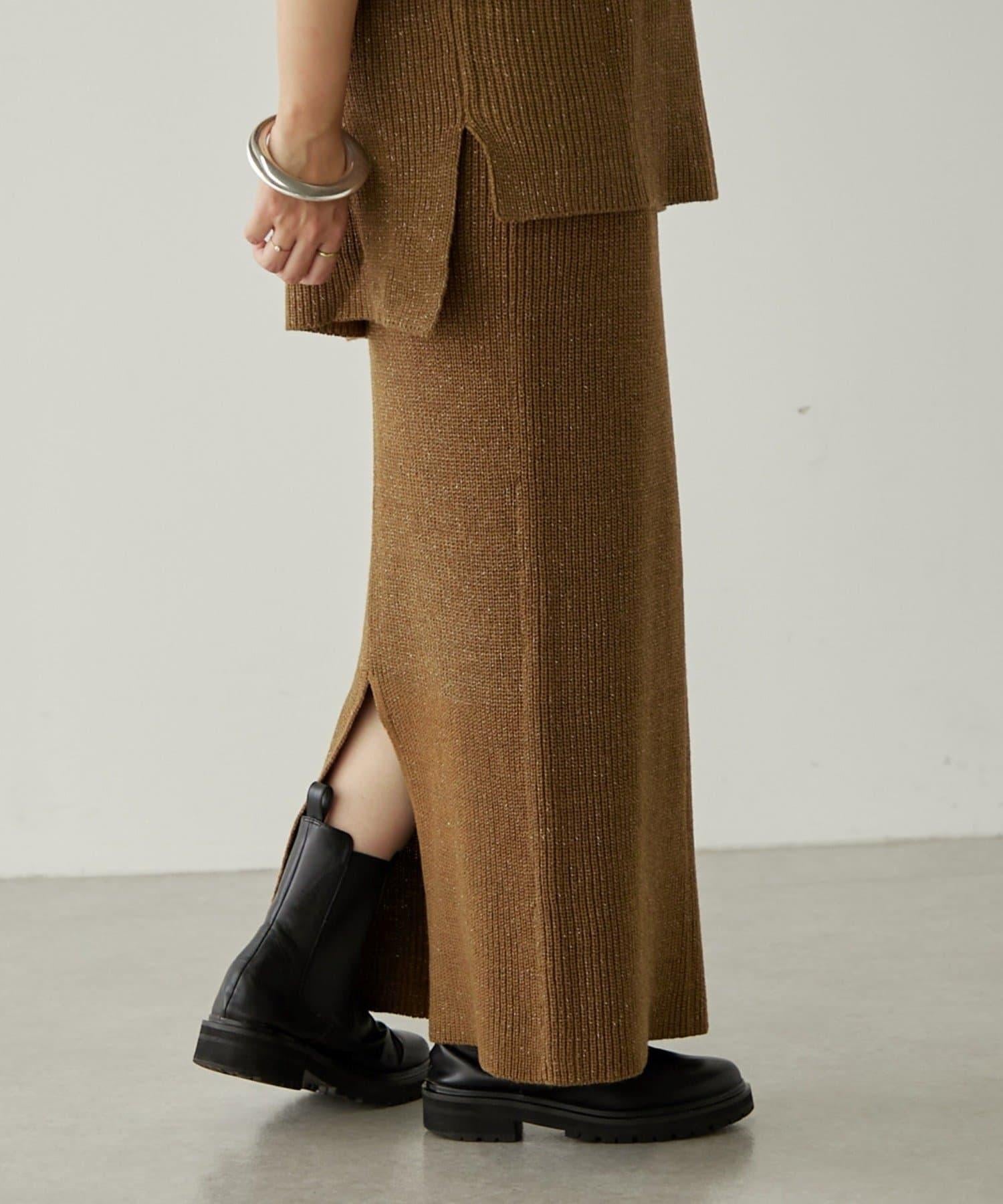 這款時髦的針織裙單面採用混有微微閃爍的薄片的紗線編織而成。