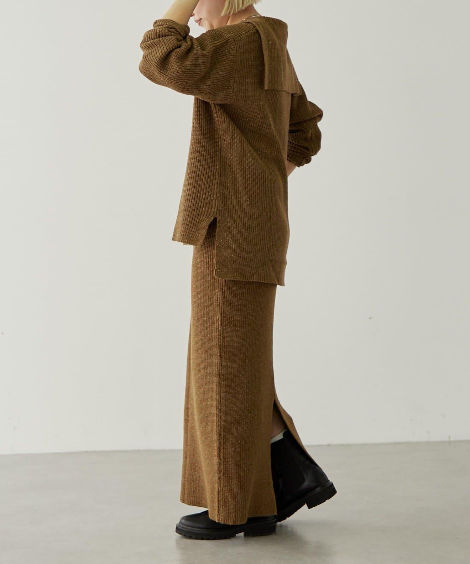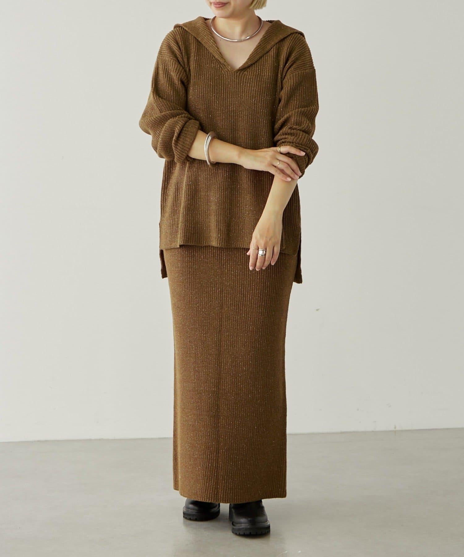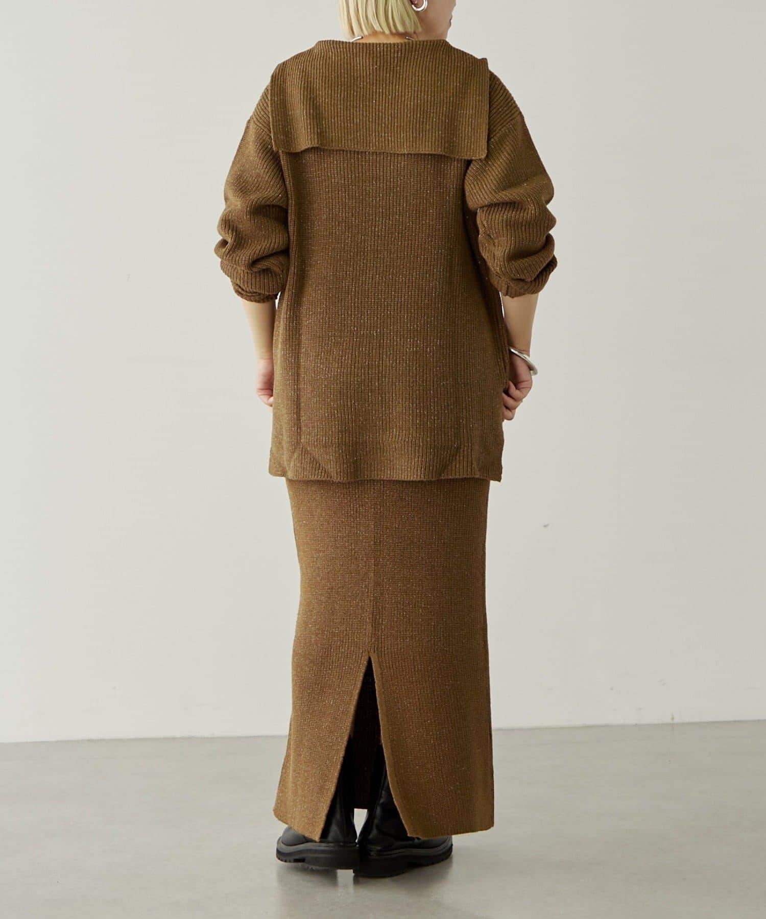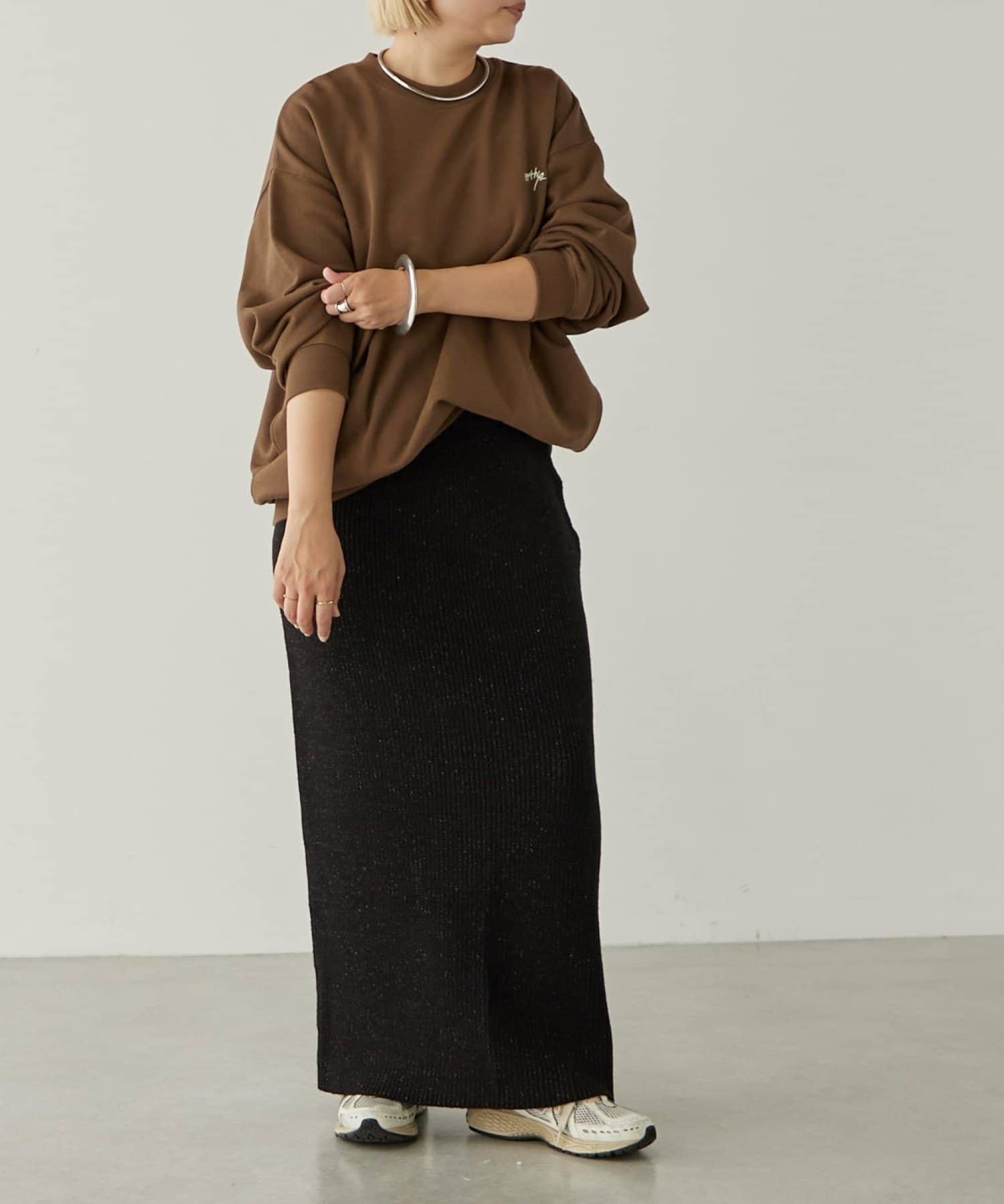 這款時髦的針織裙單面採用混有微微閃爍的薄片的紗線編織而成。