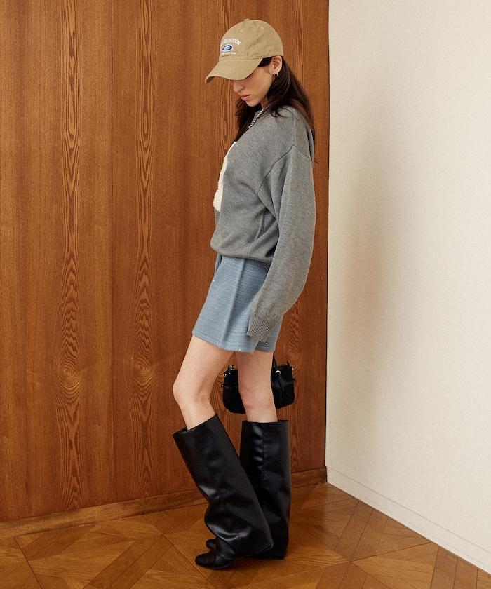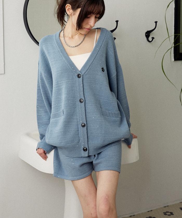 與同系列的亮片針織開衫搭配,打造華麗的整體搭配。