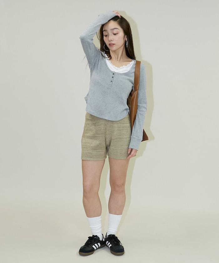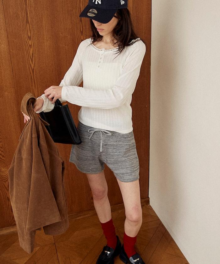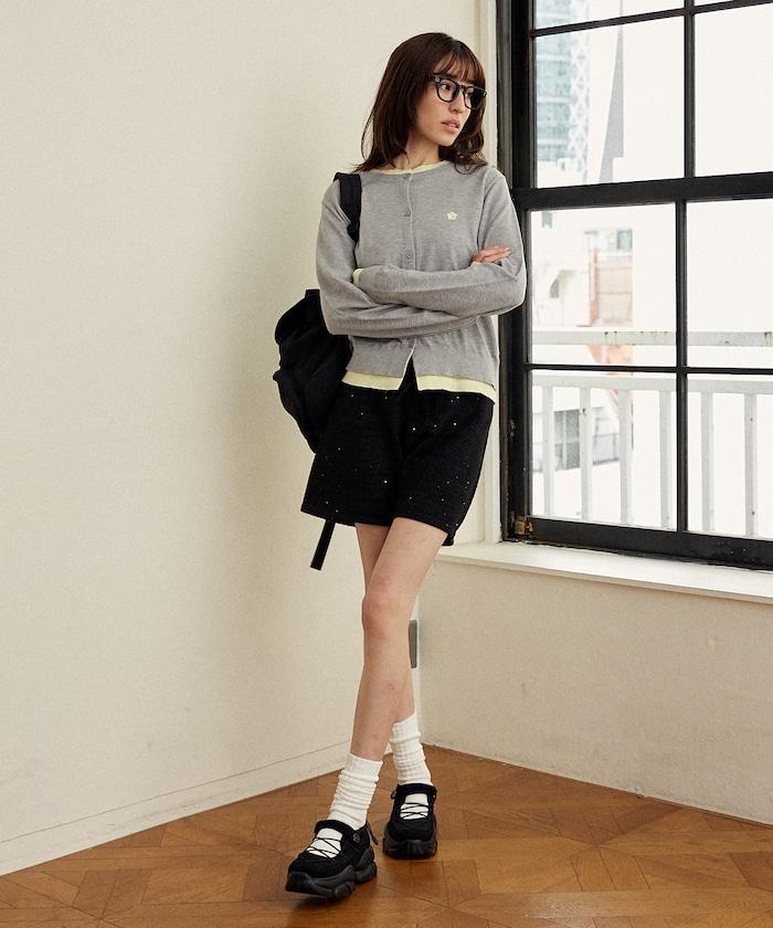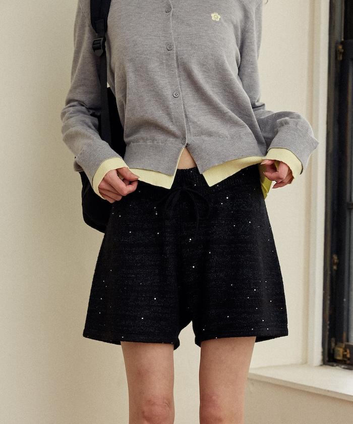 這款時髦的針織短褲閃爍著微小的亮片,非常優雅。