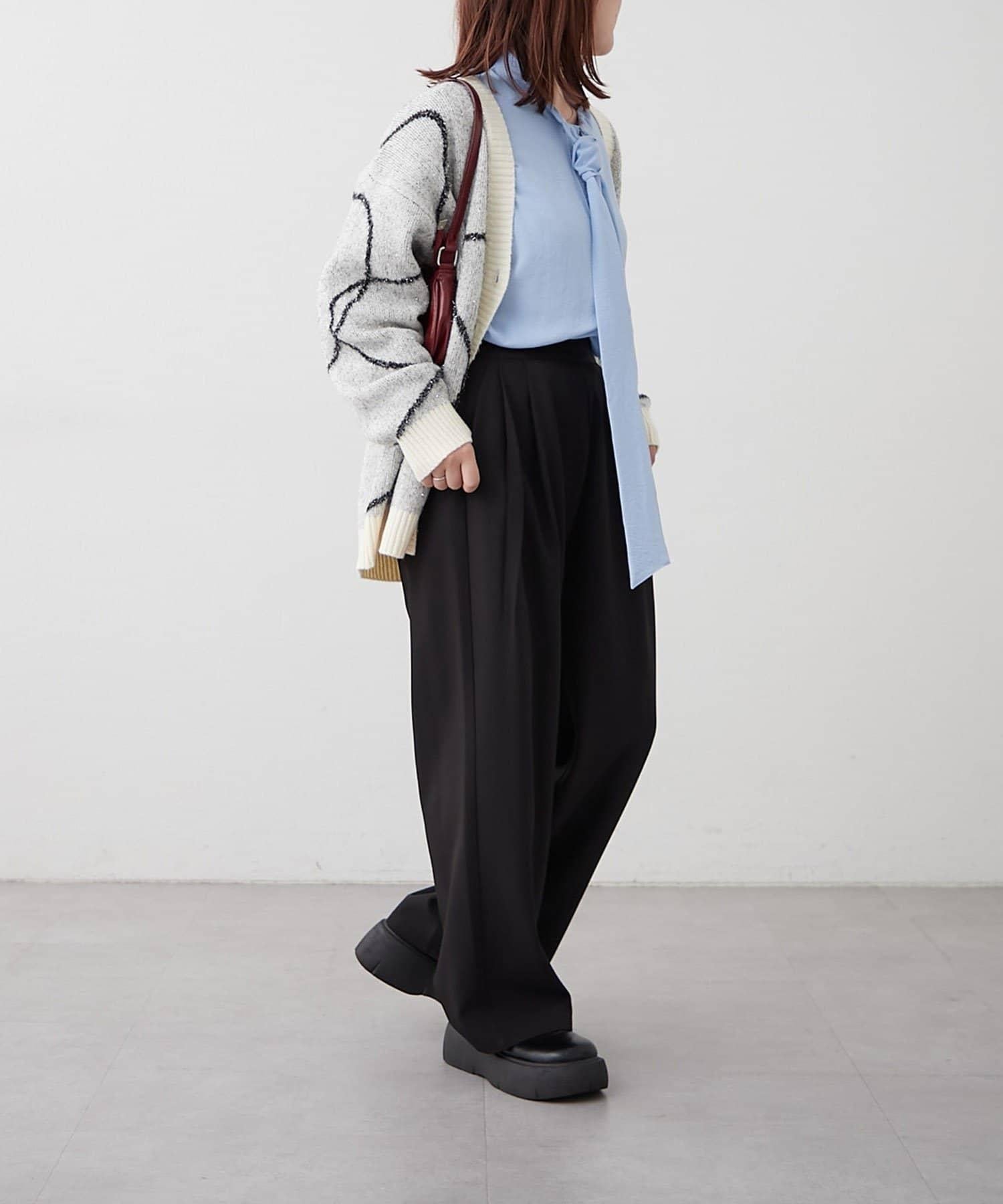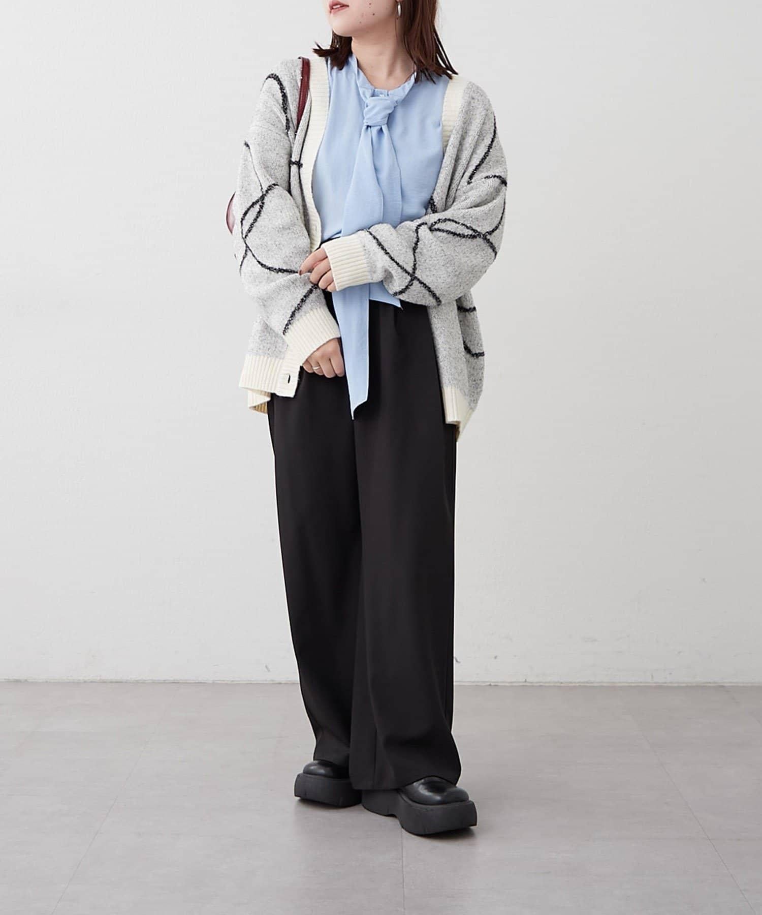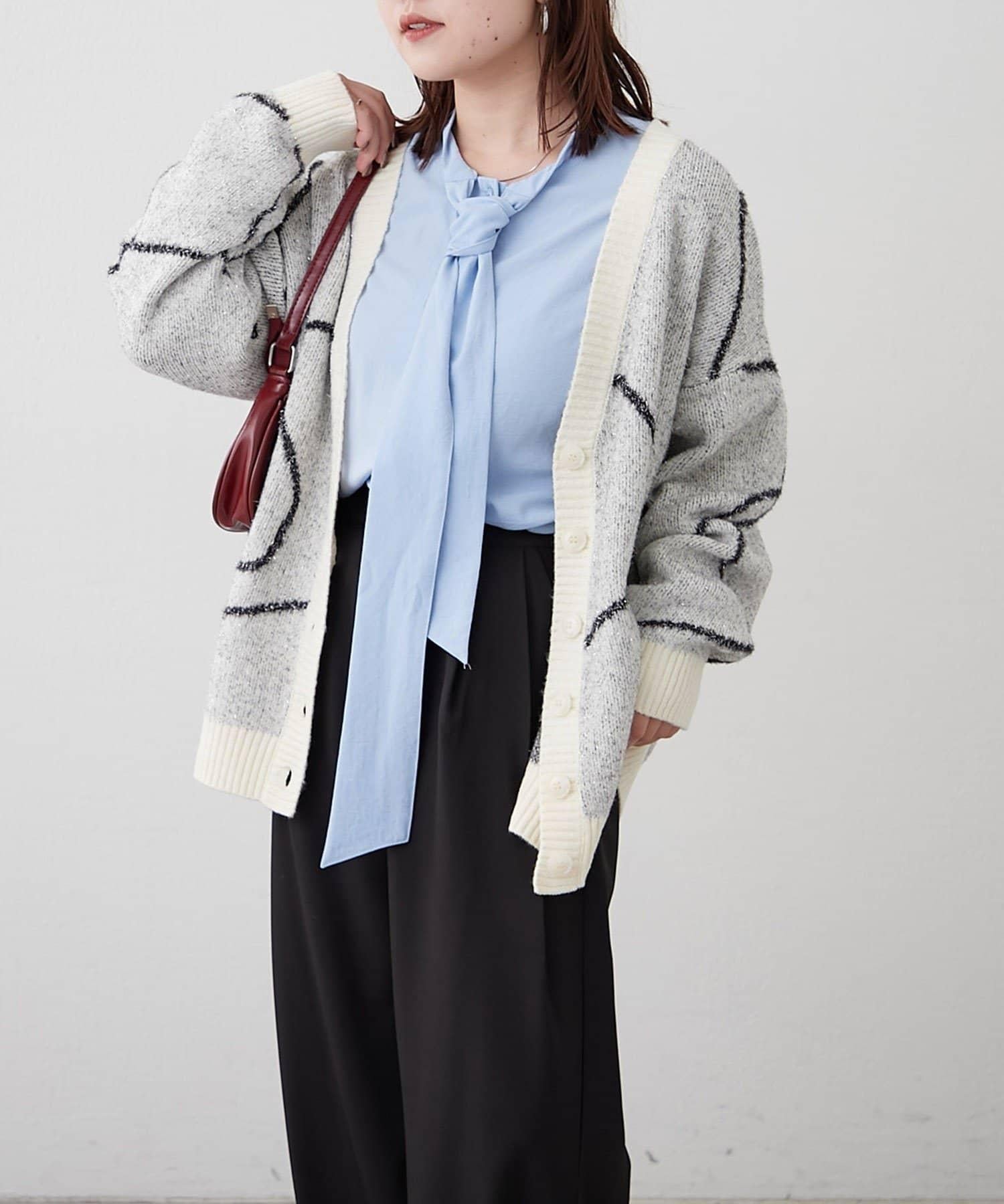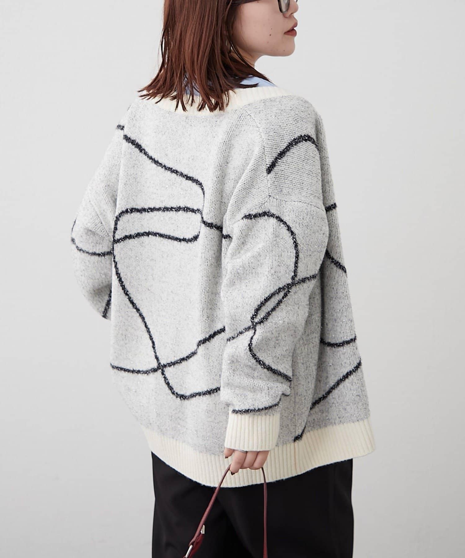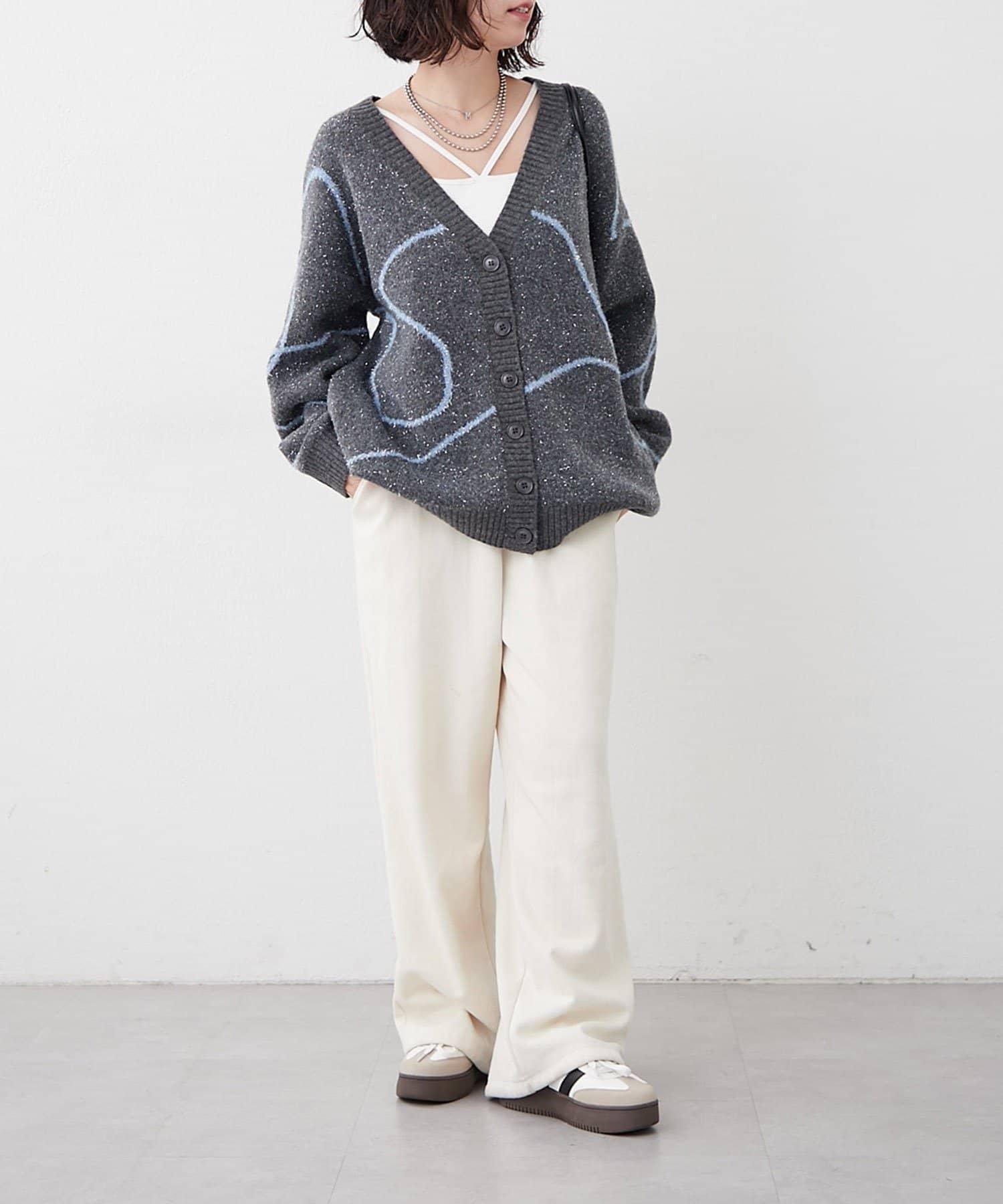 薄紗材質隨意閃耀♪線條圖案的時尚 V 領開衫。