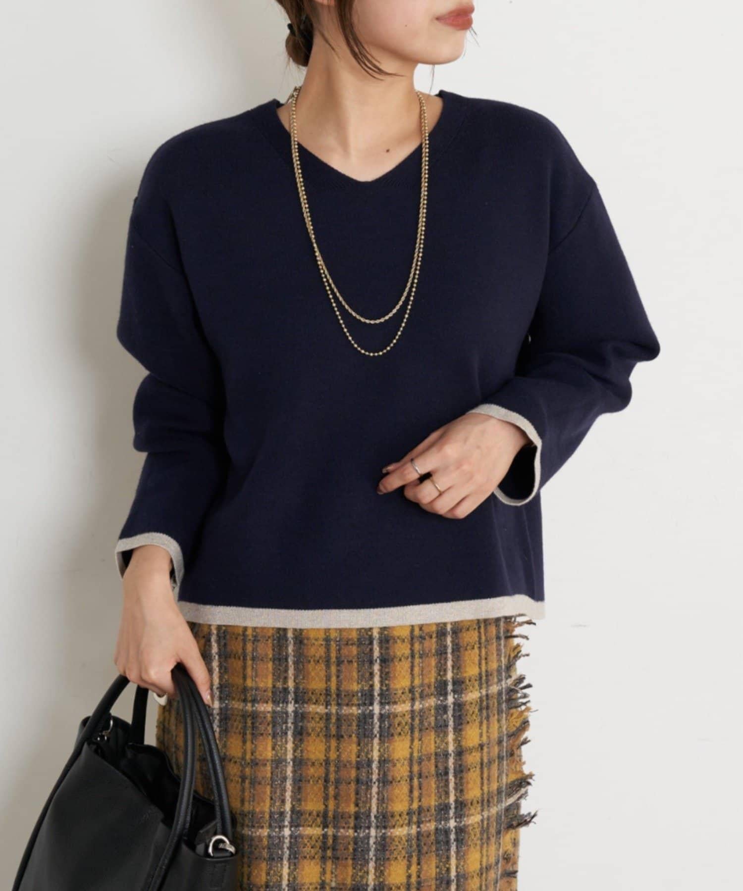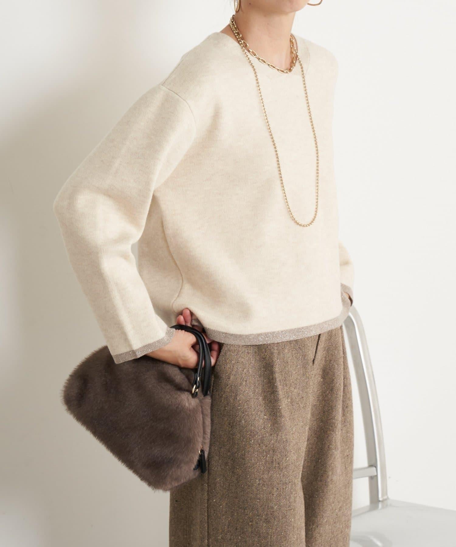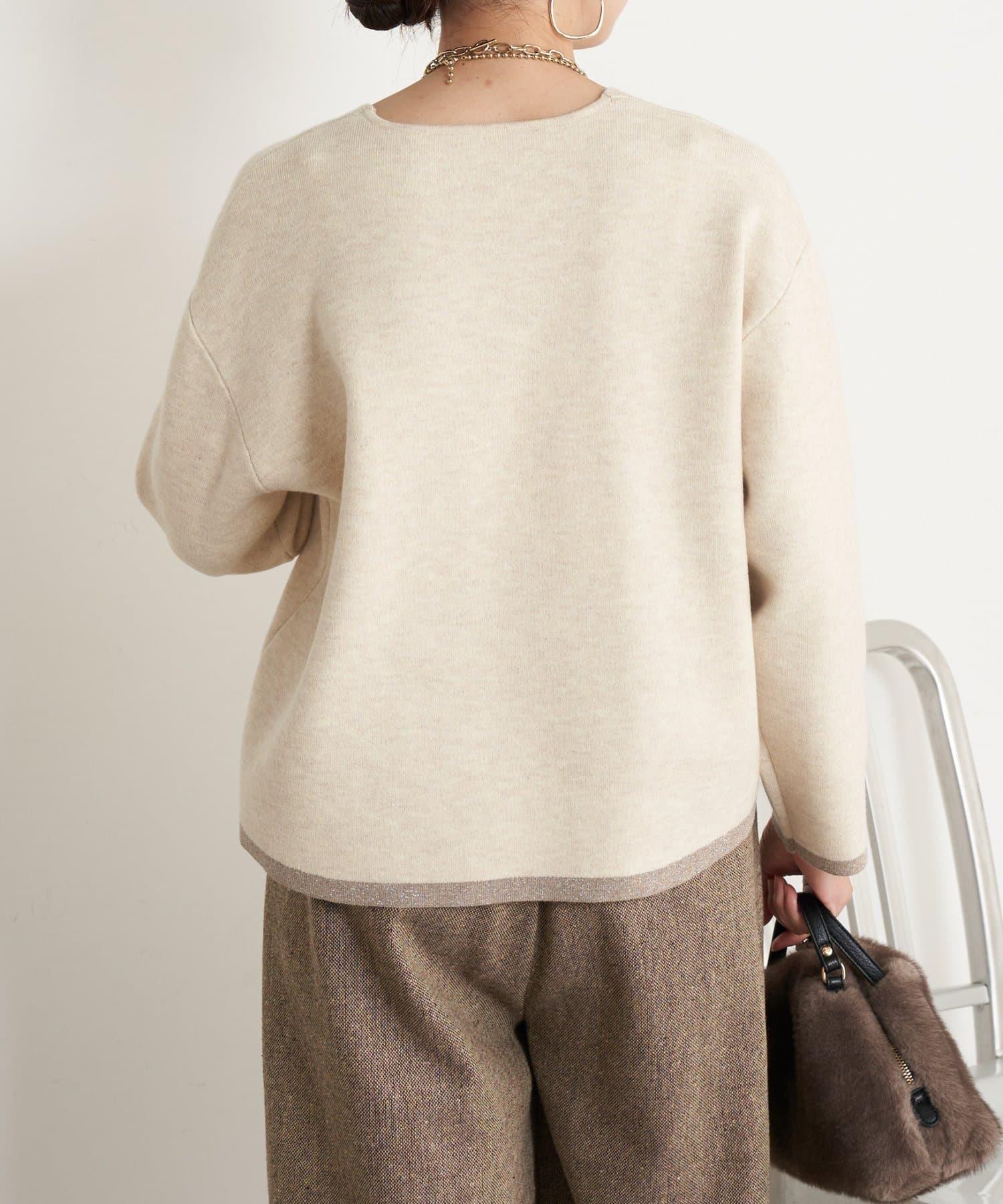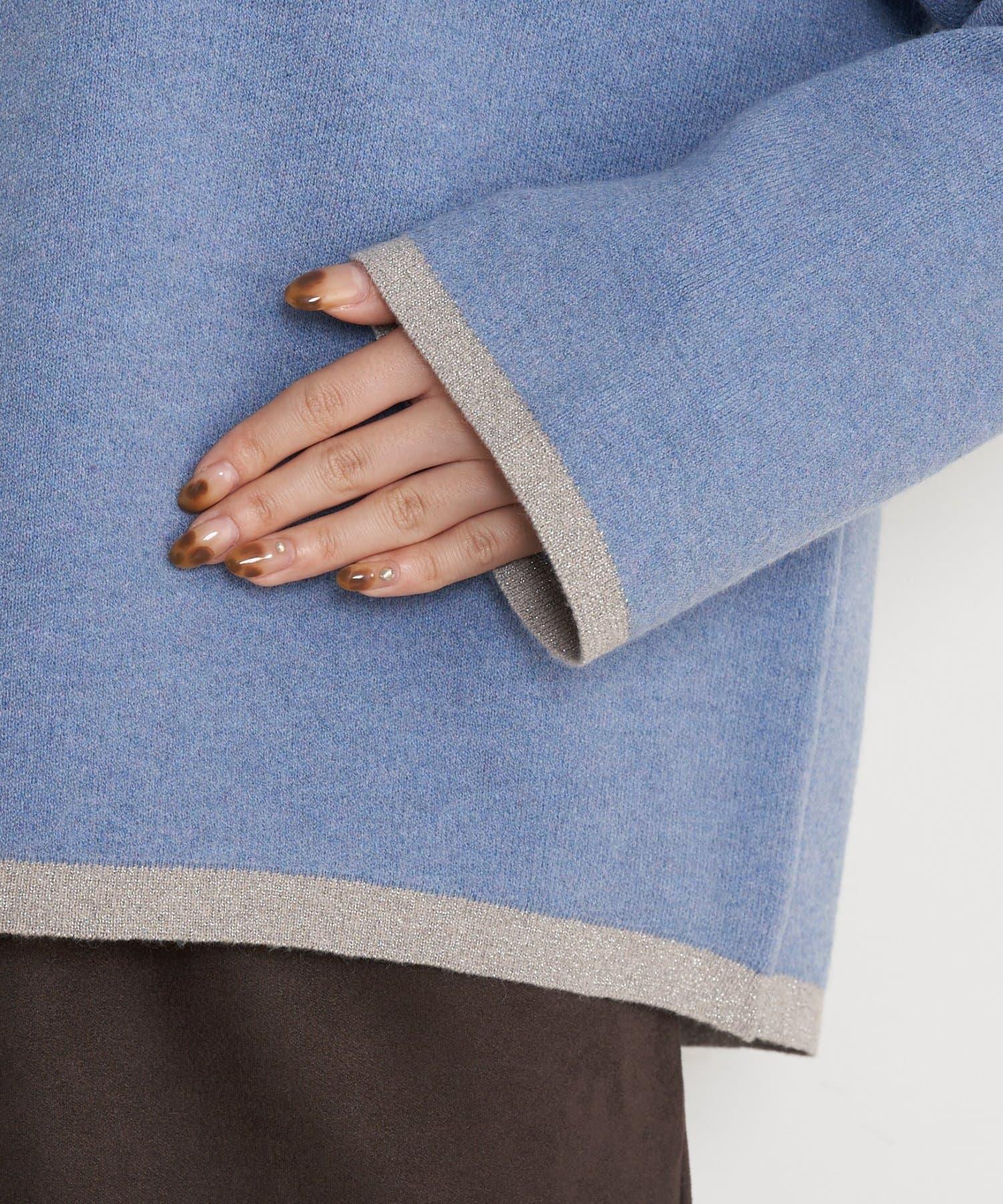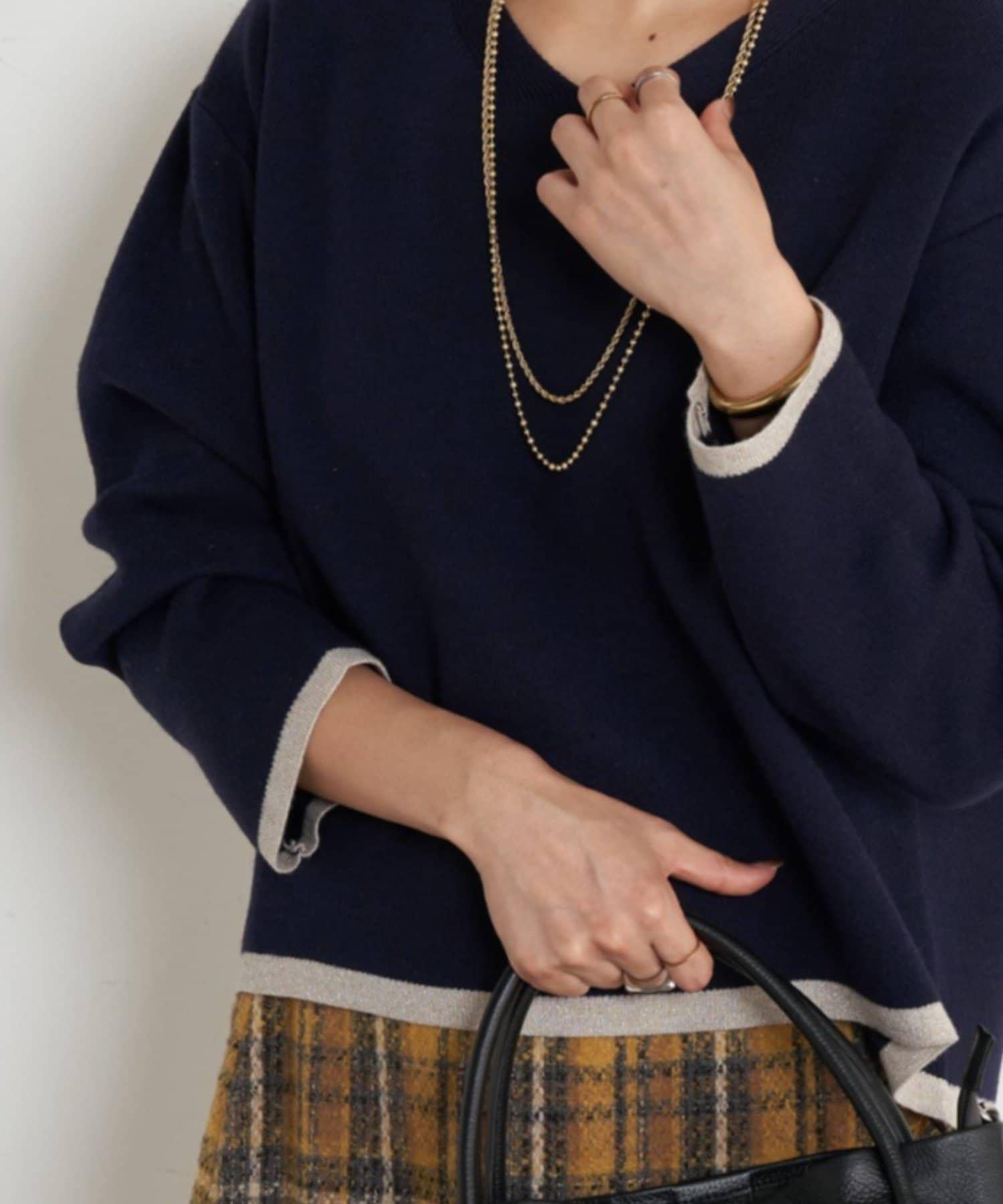 簡潔的針織衫,袖子和下襬飾有薄片線條。