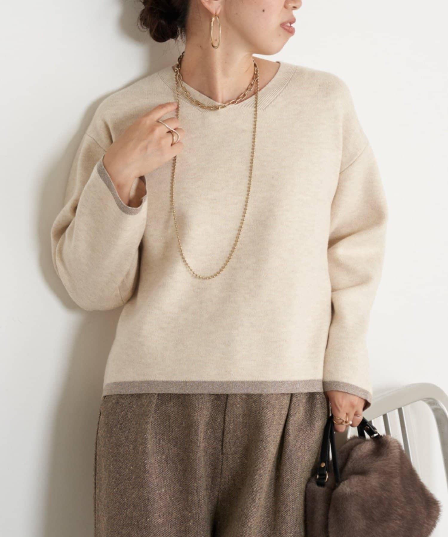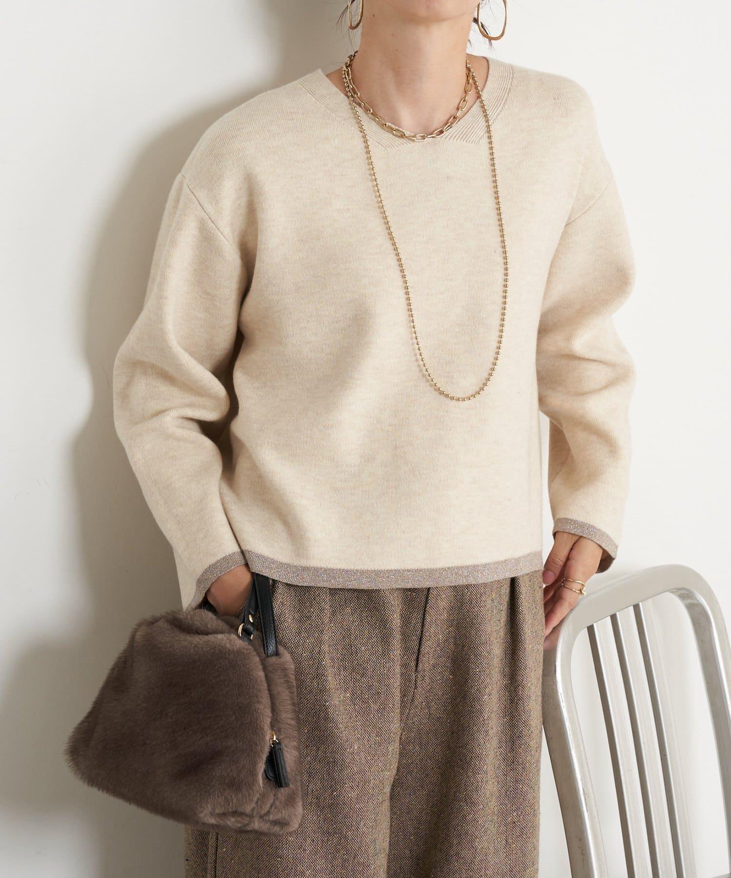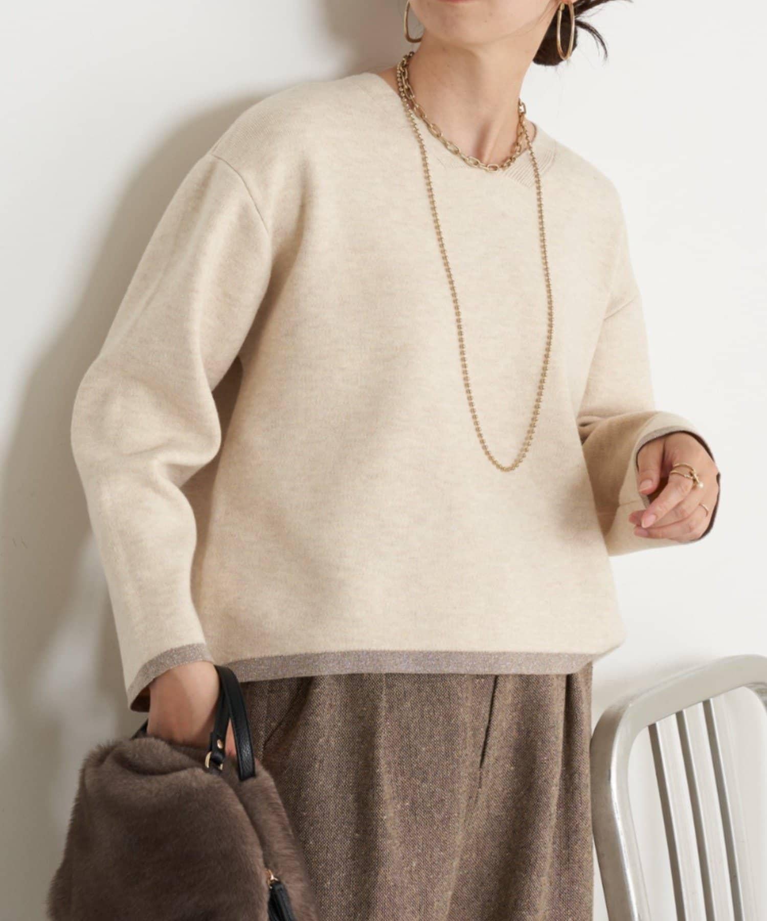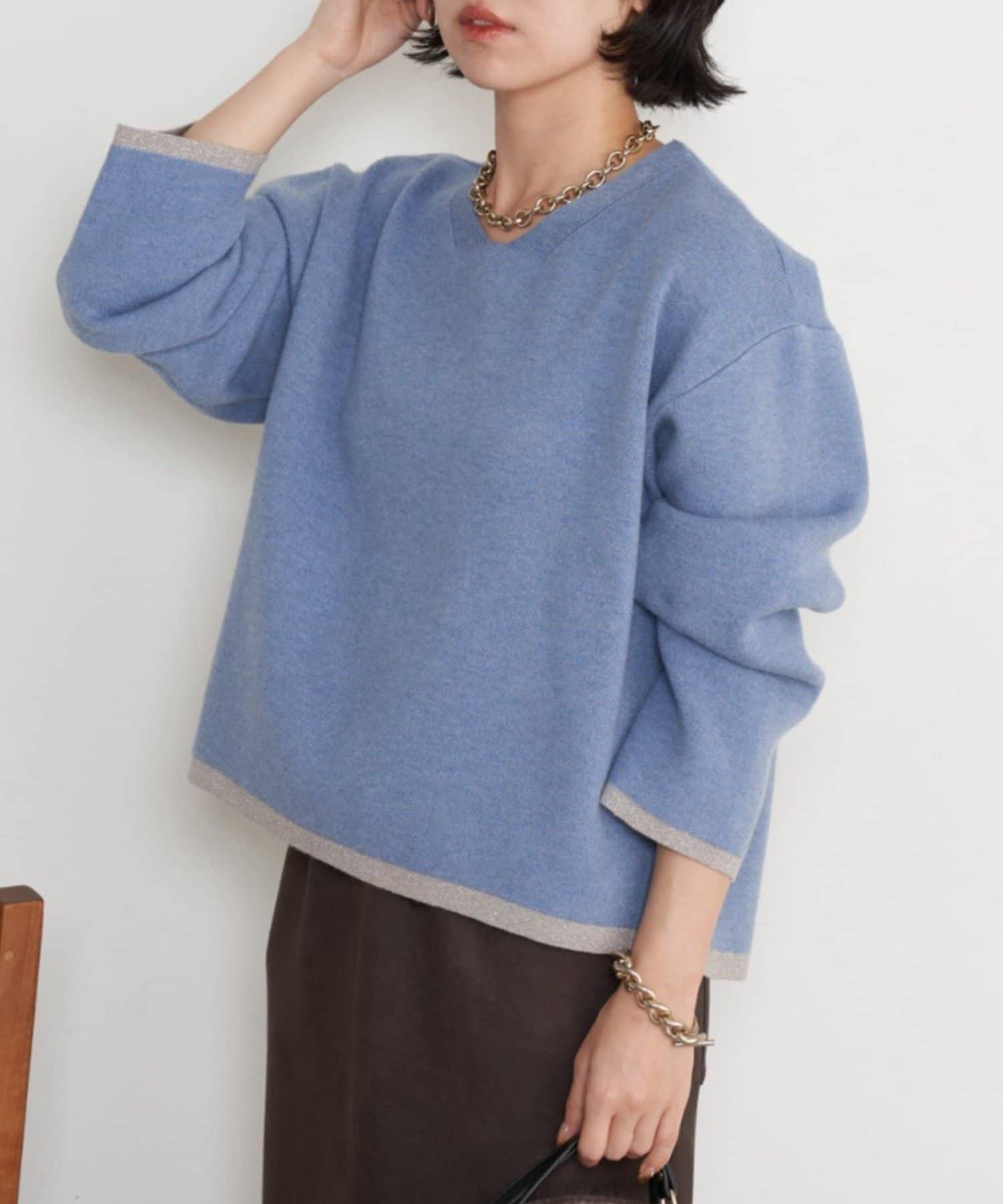 簡潔的針織衫,袖子和下襬飾有薄片線條。