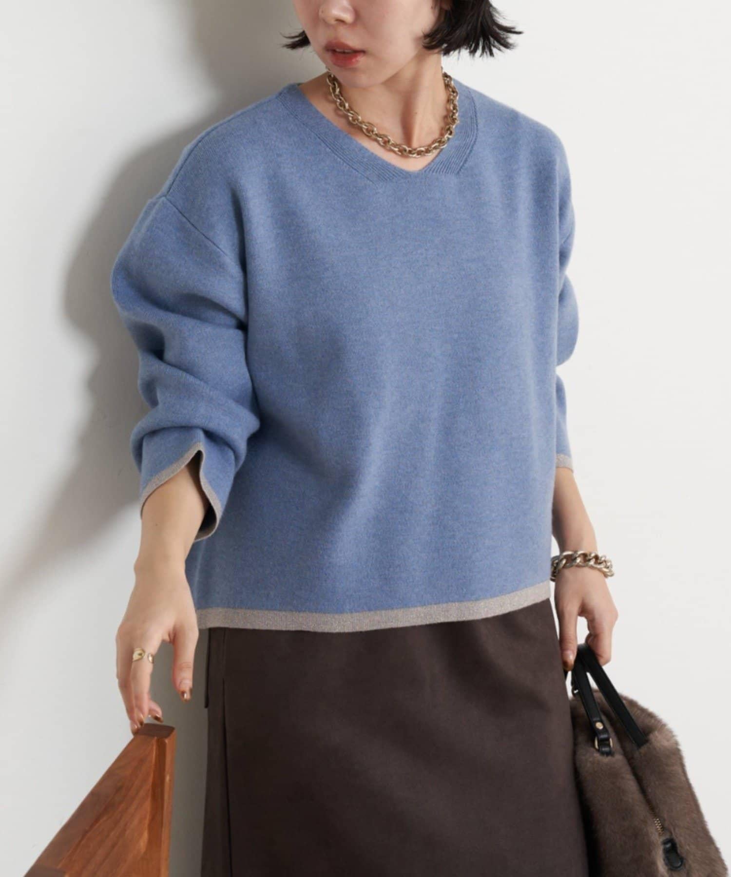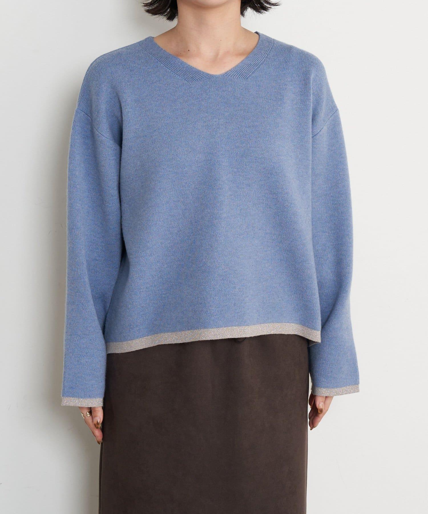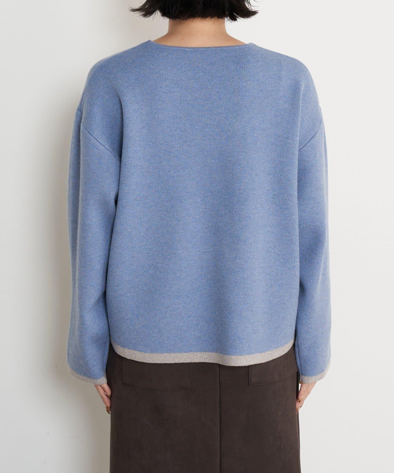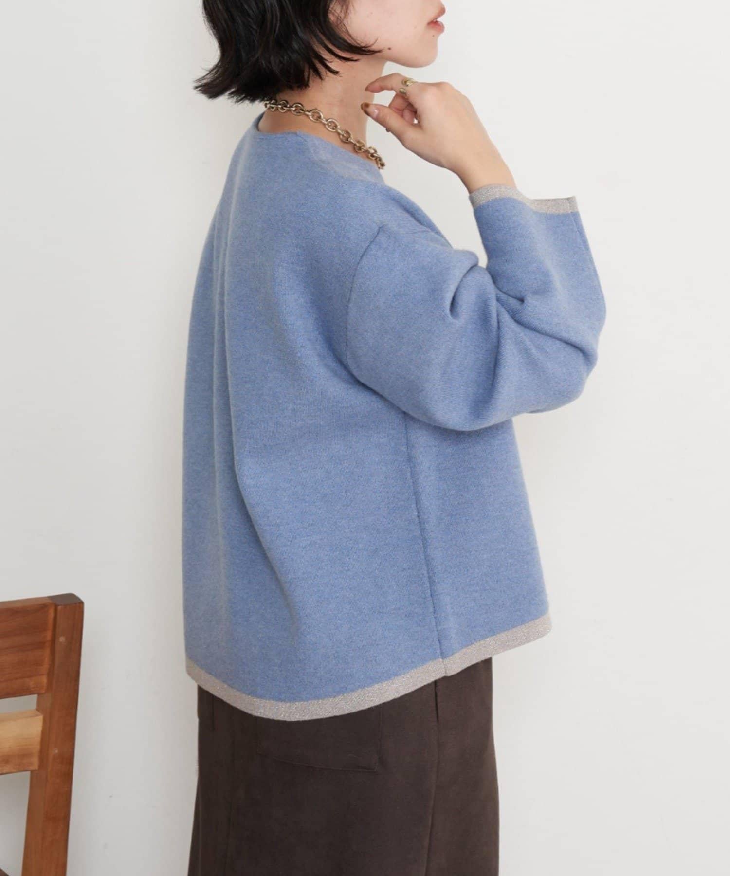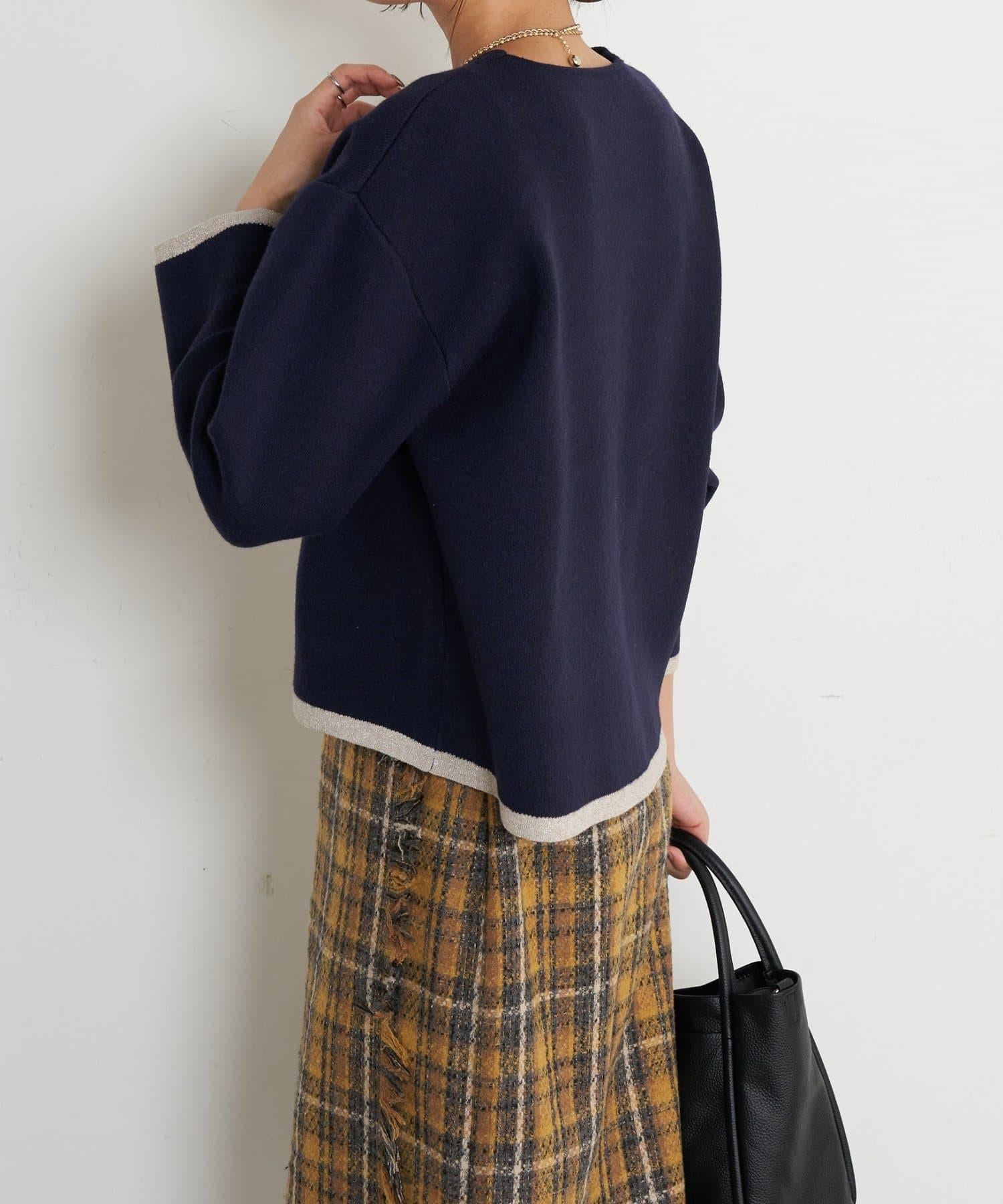 簡潔的針織衫,袖子和下襬飾有薄片線條。