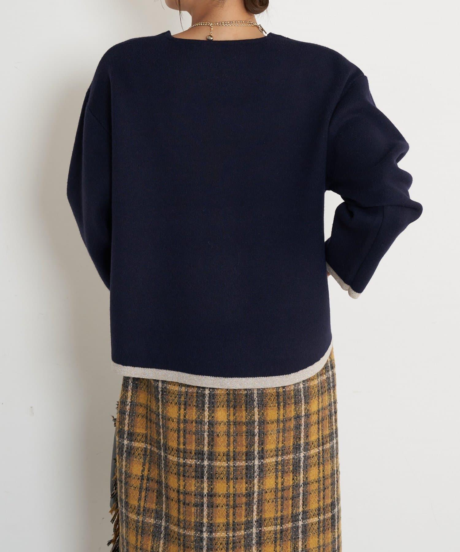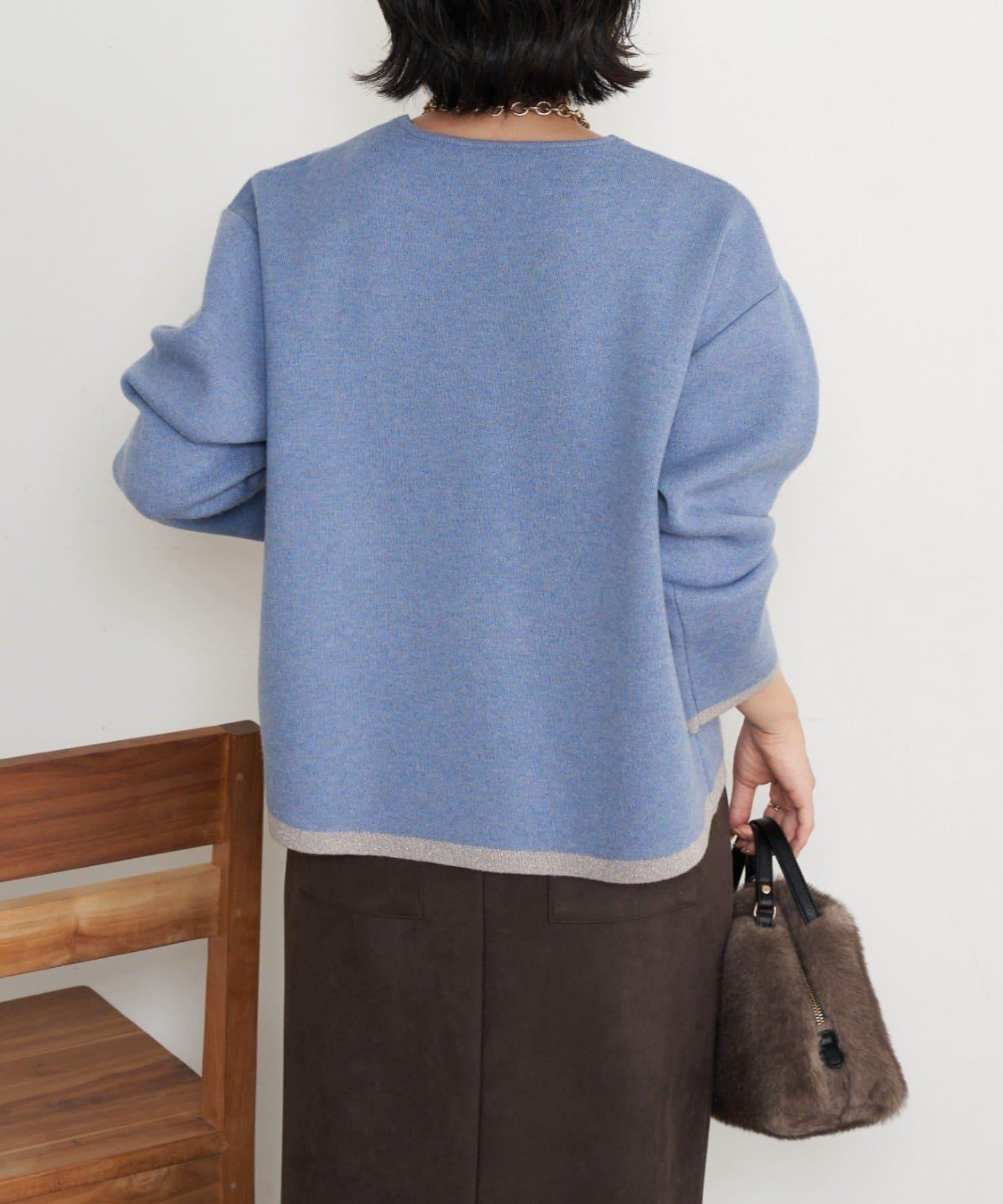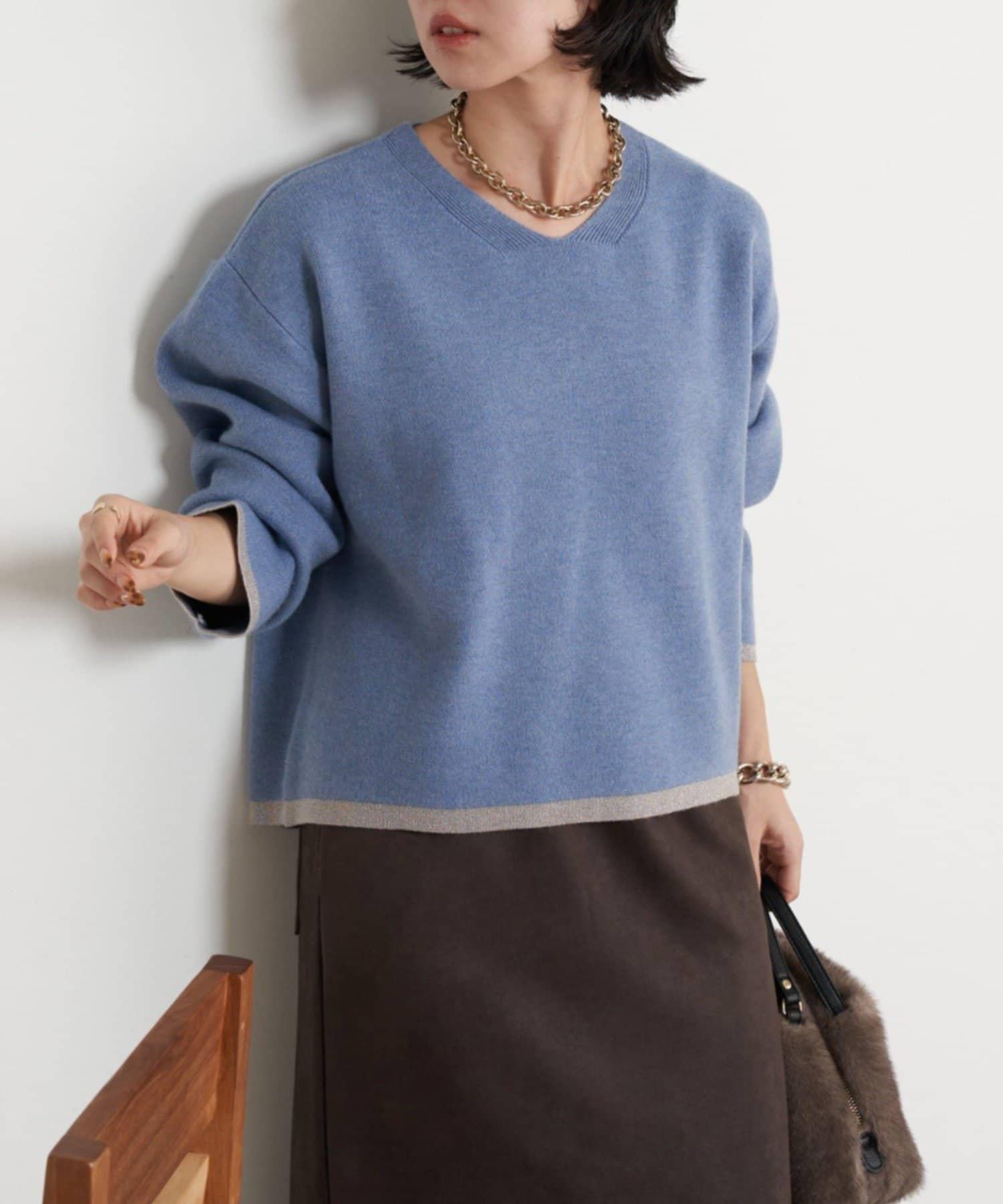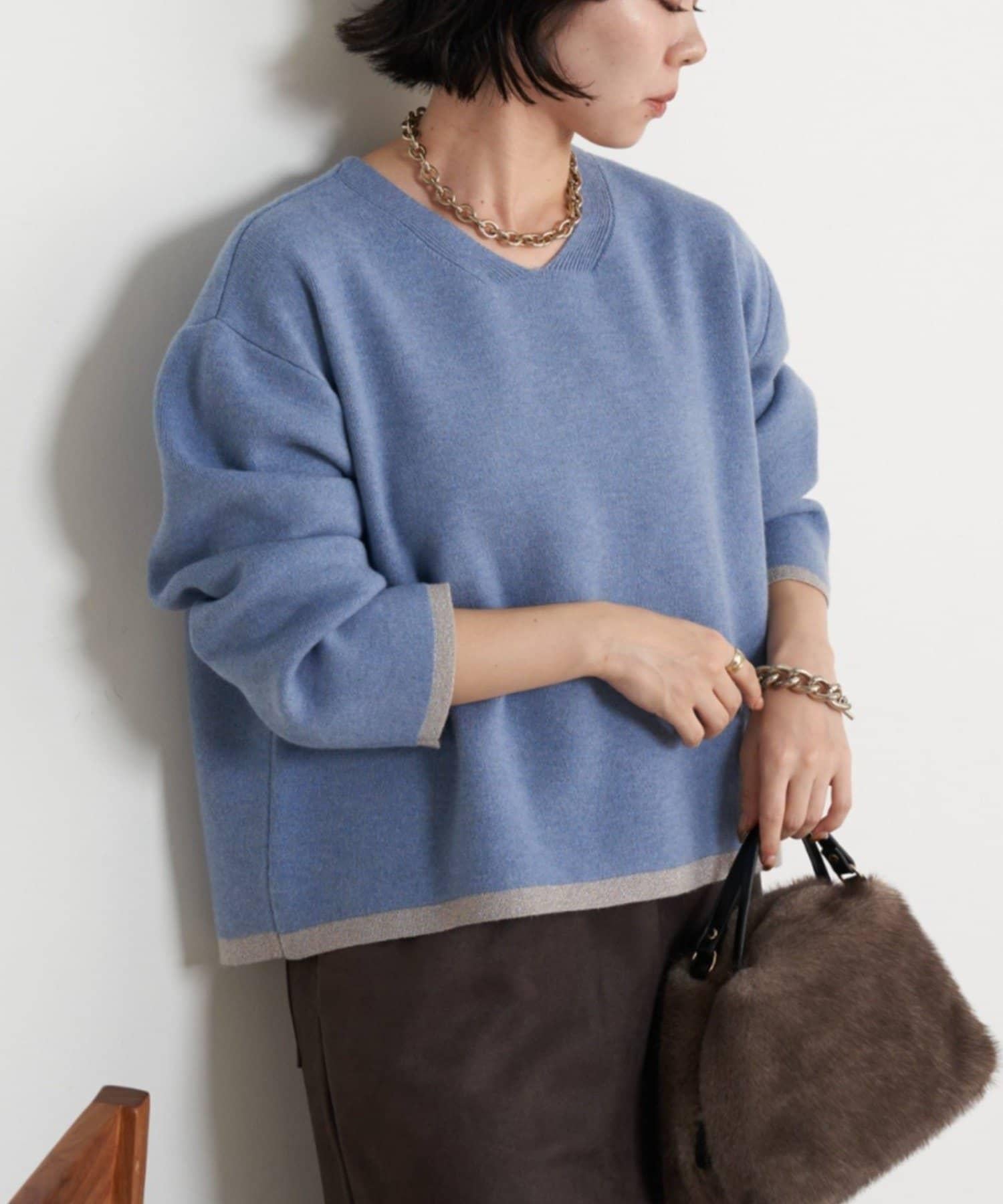 簡潔的針織衫,袖子和下襬飾有薄片線條。
