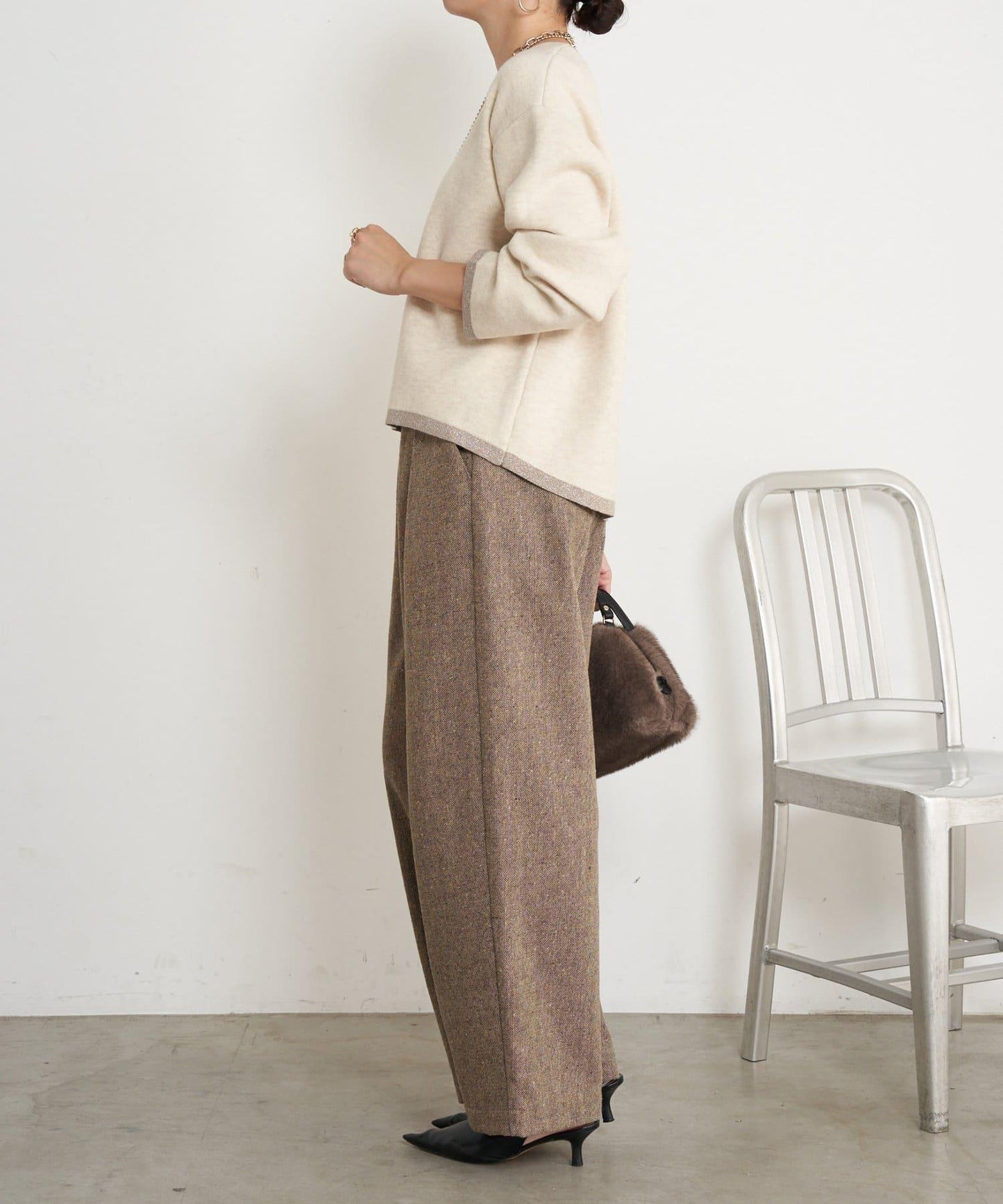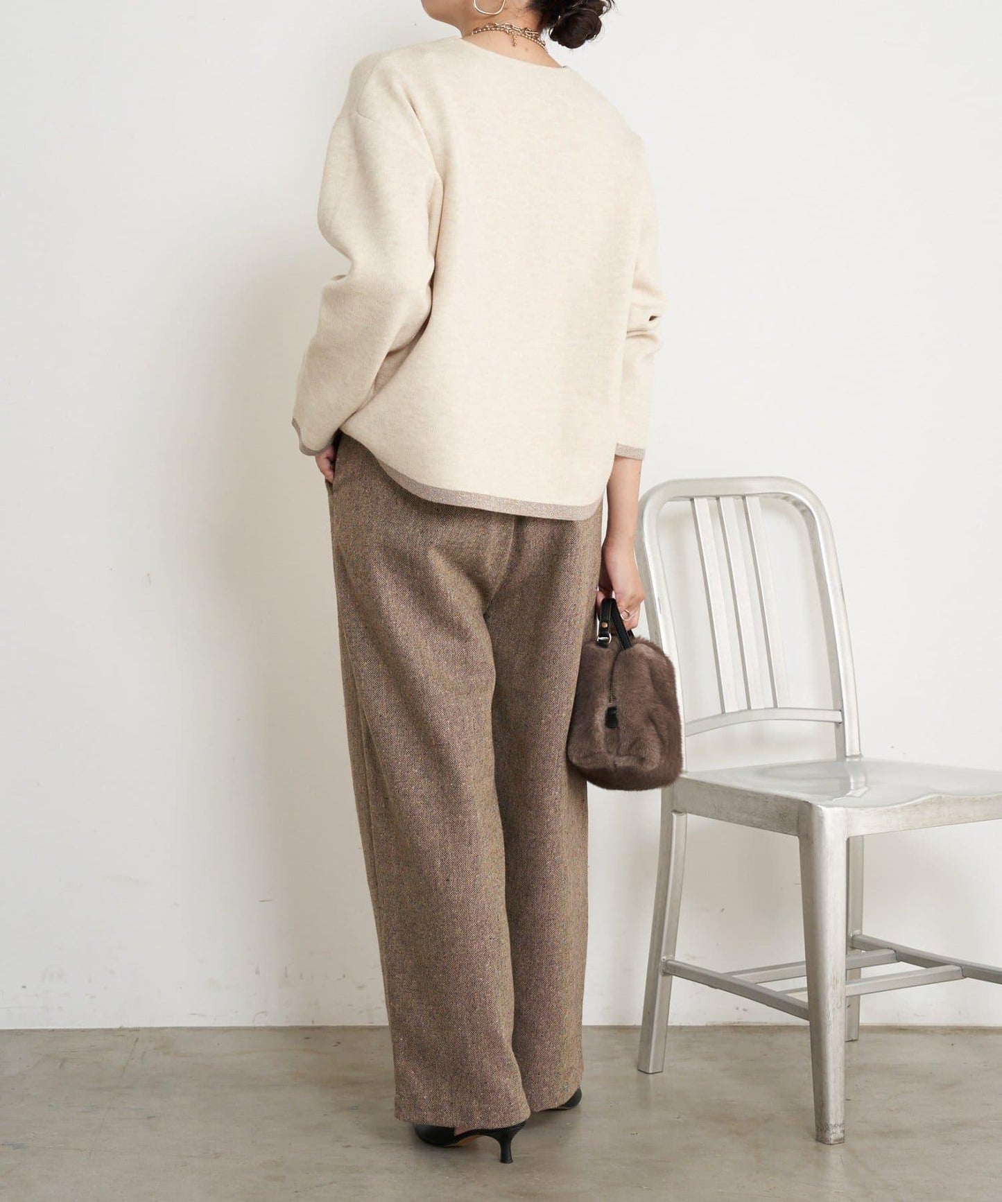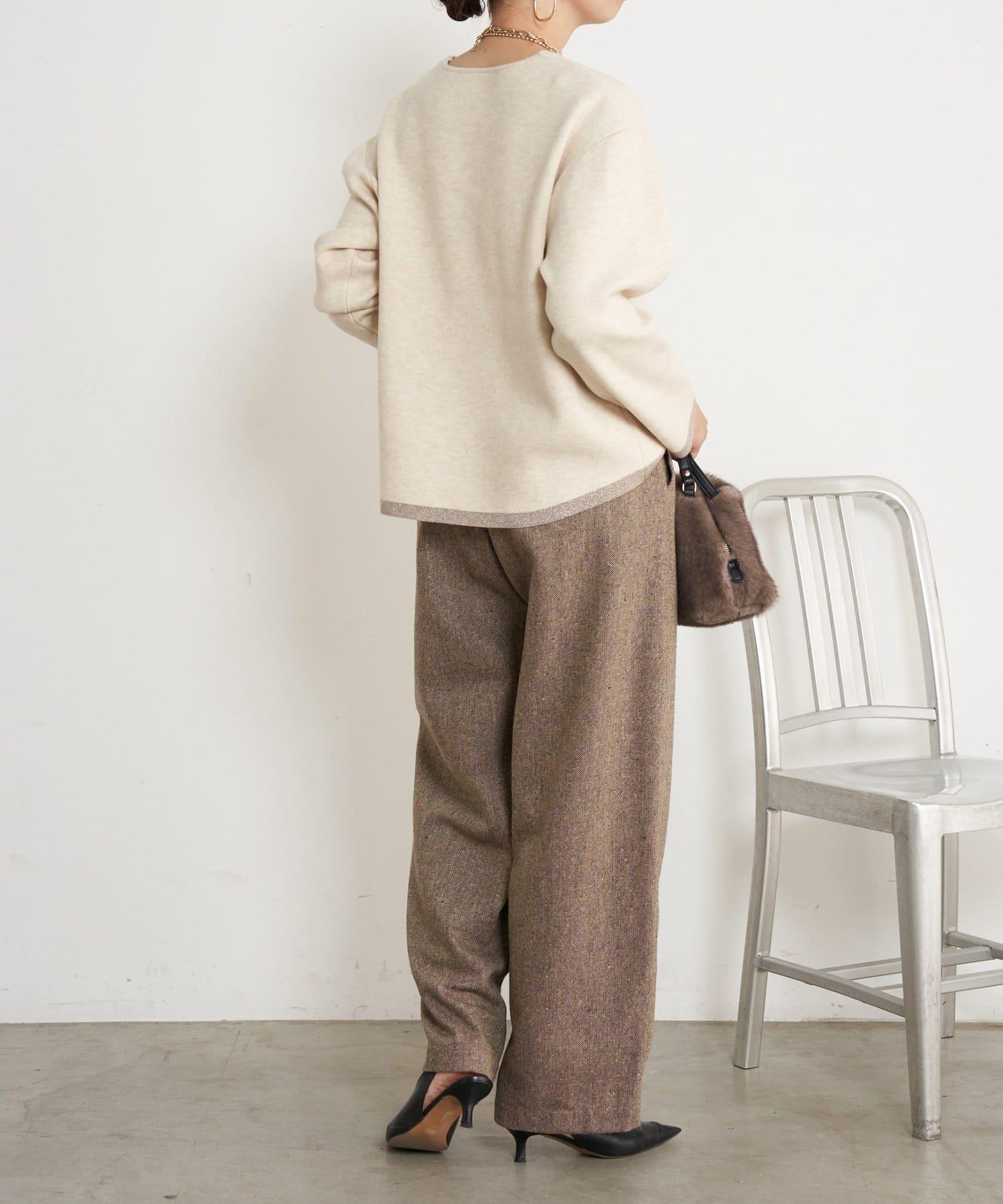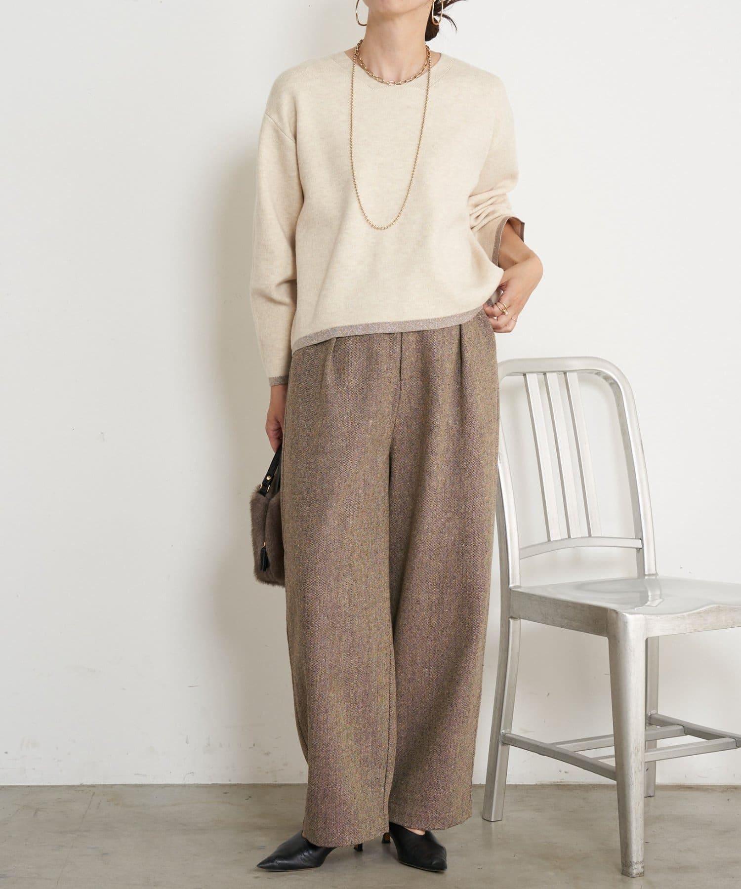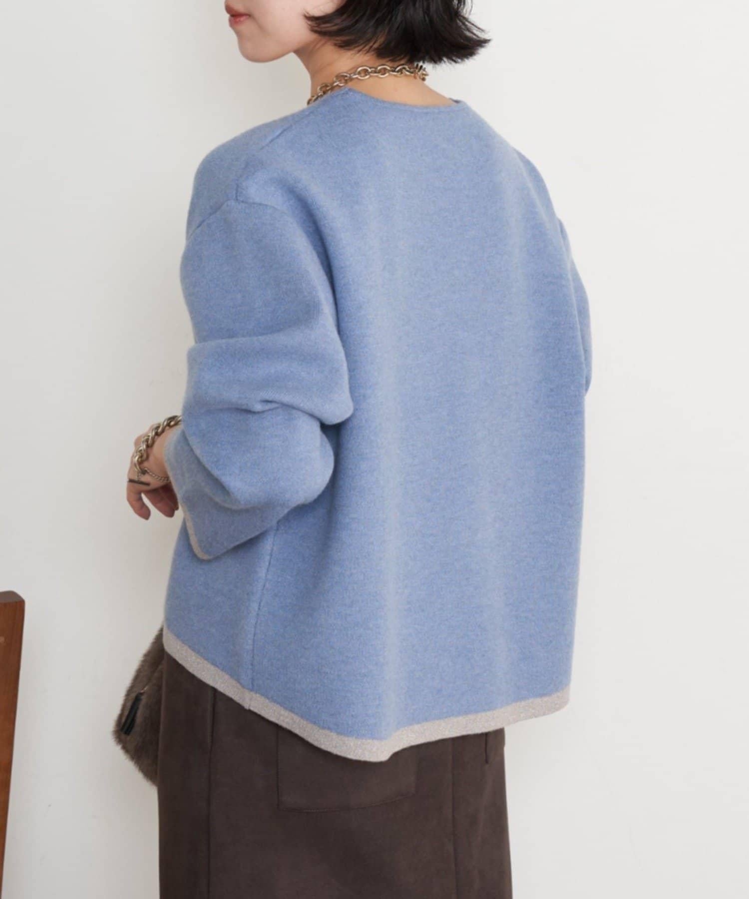 簡潔的針織衫,袖子和下襬飾有薄片線條。