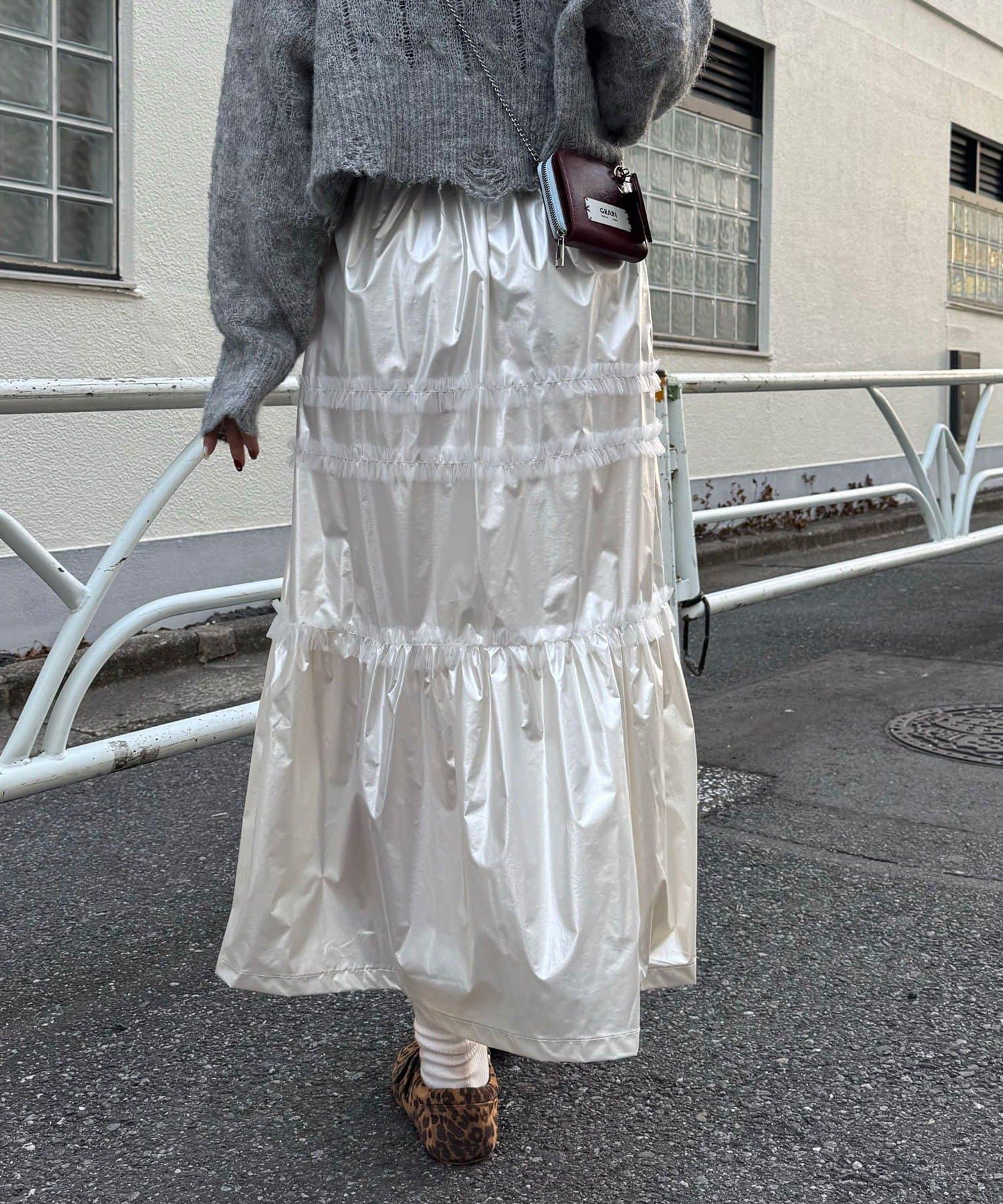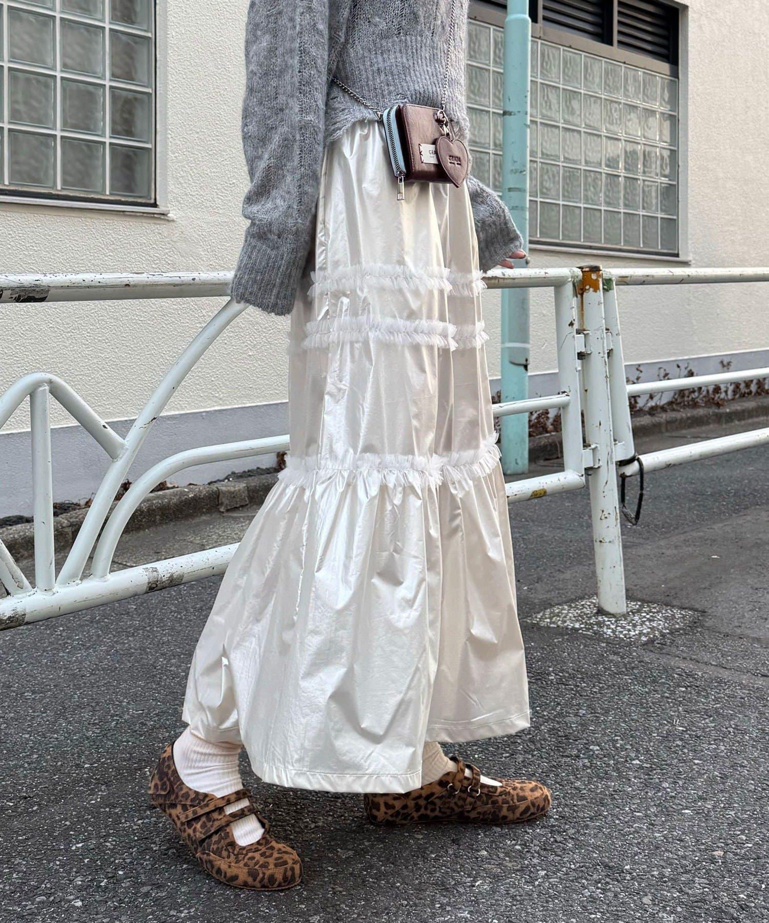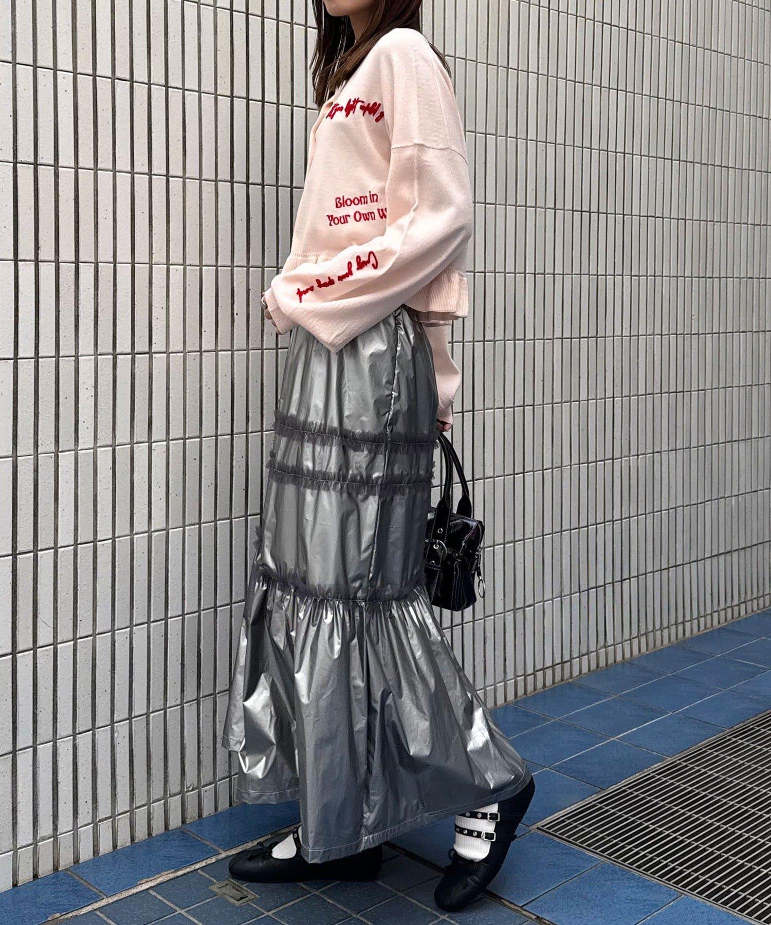 層疊設計的薄紗褶邊裙,閃亮質感十分搶眼。
