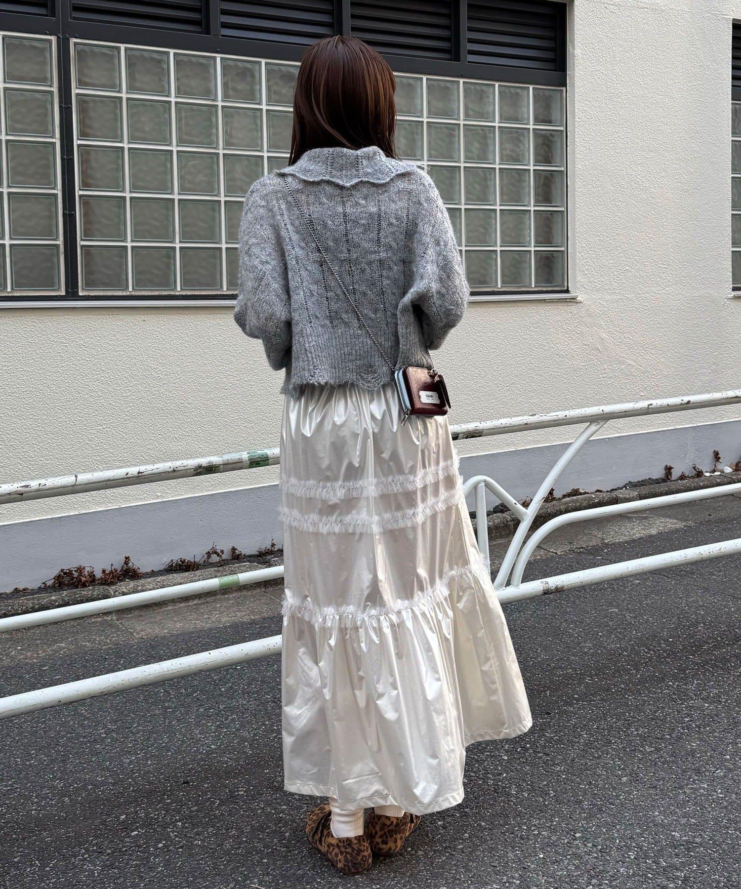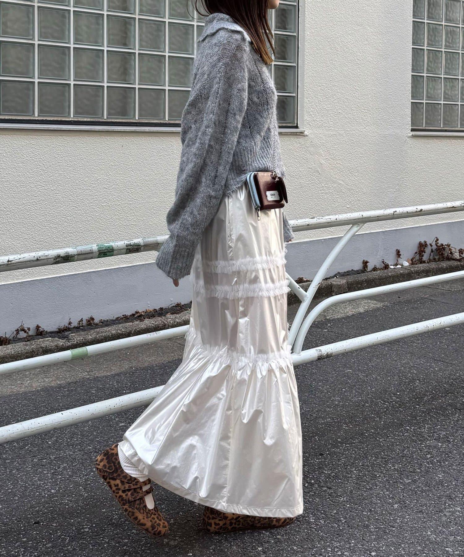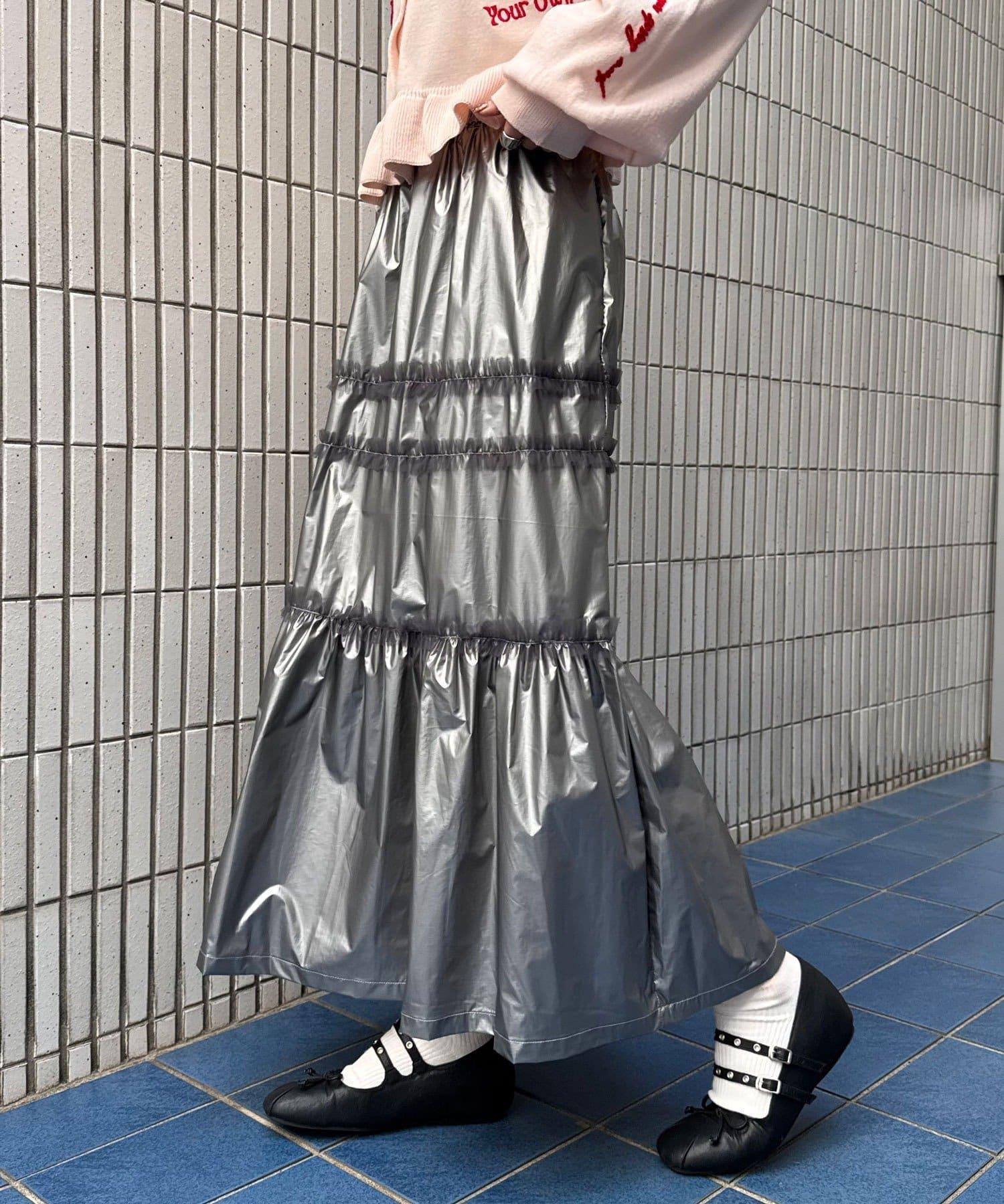 層疊設計的薄紗褶邊裙,閃亮質感十分搶眼。