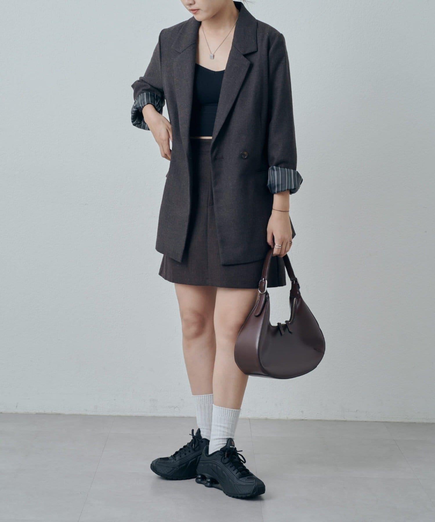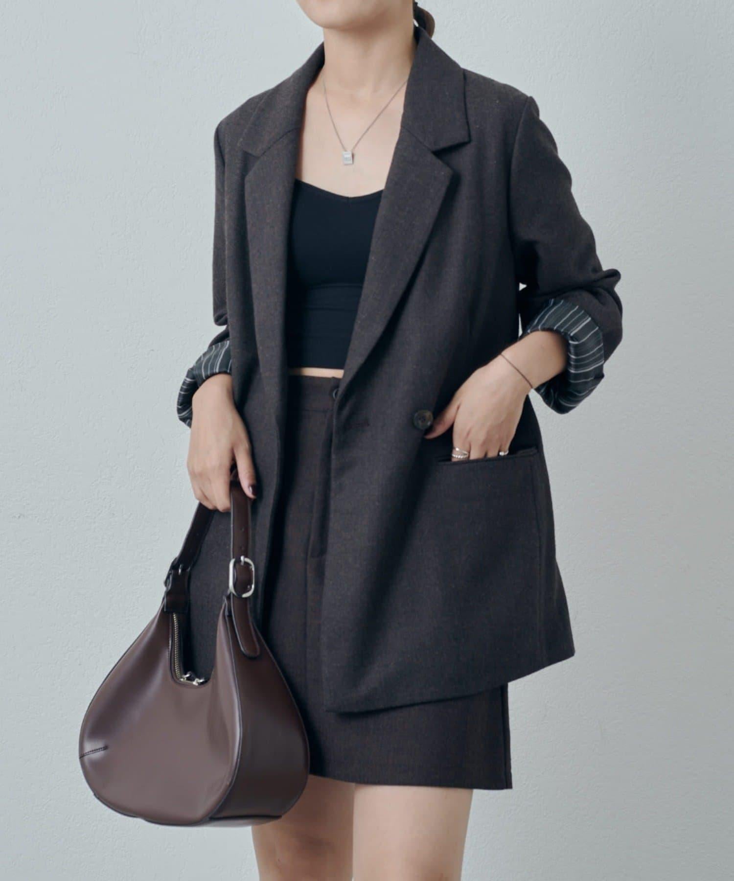 建議與同材質的裙子 [LUZ1052202A0004 人字形迷你裙] 搭配穿著。