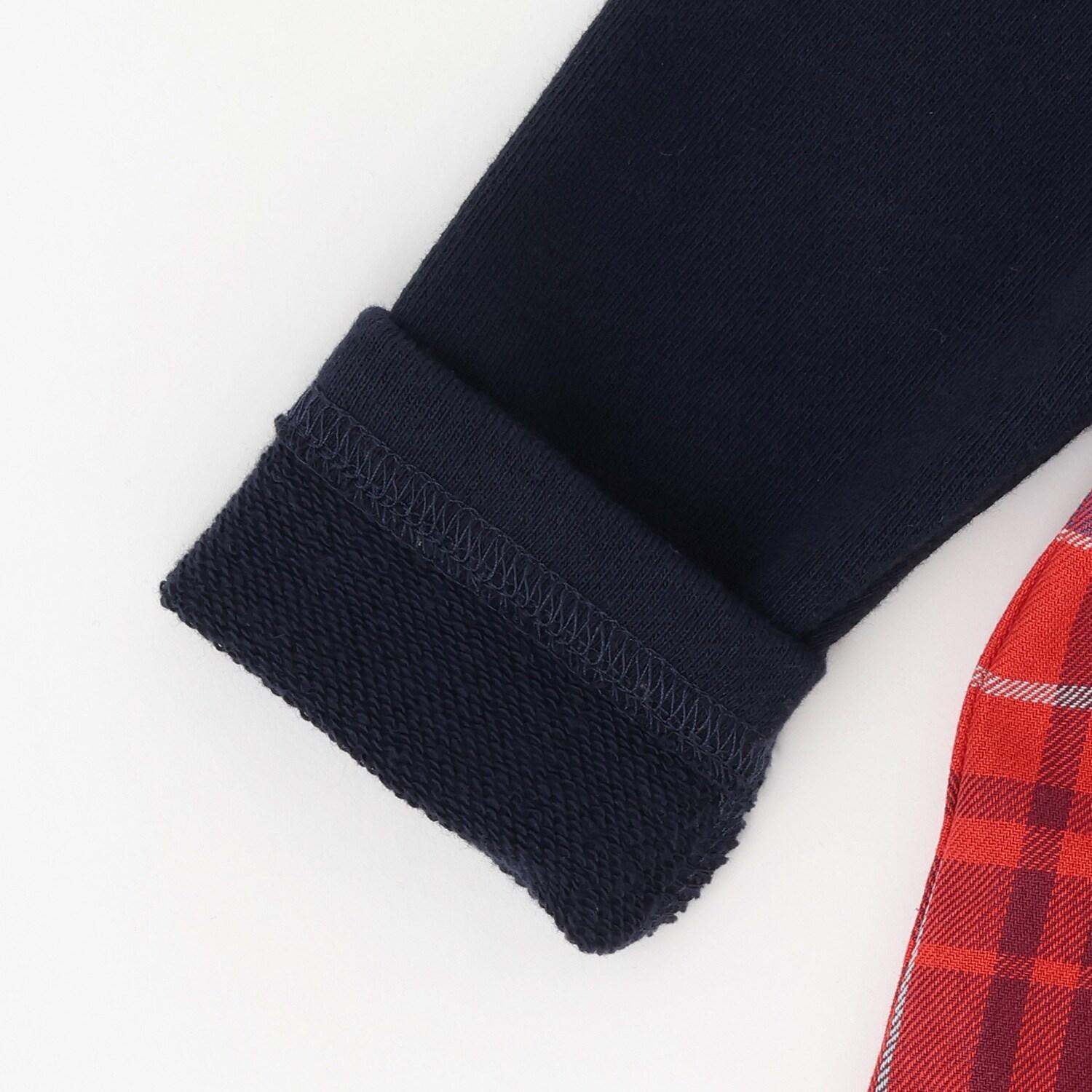人字紋格子拼接衛衣內襯層疊風格衛衣