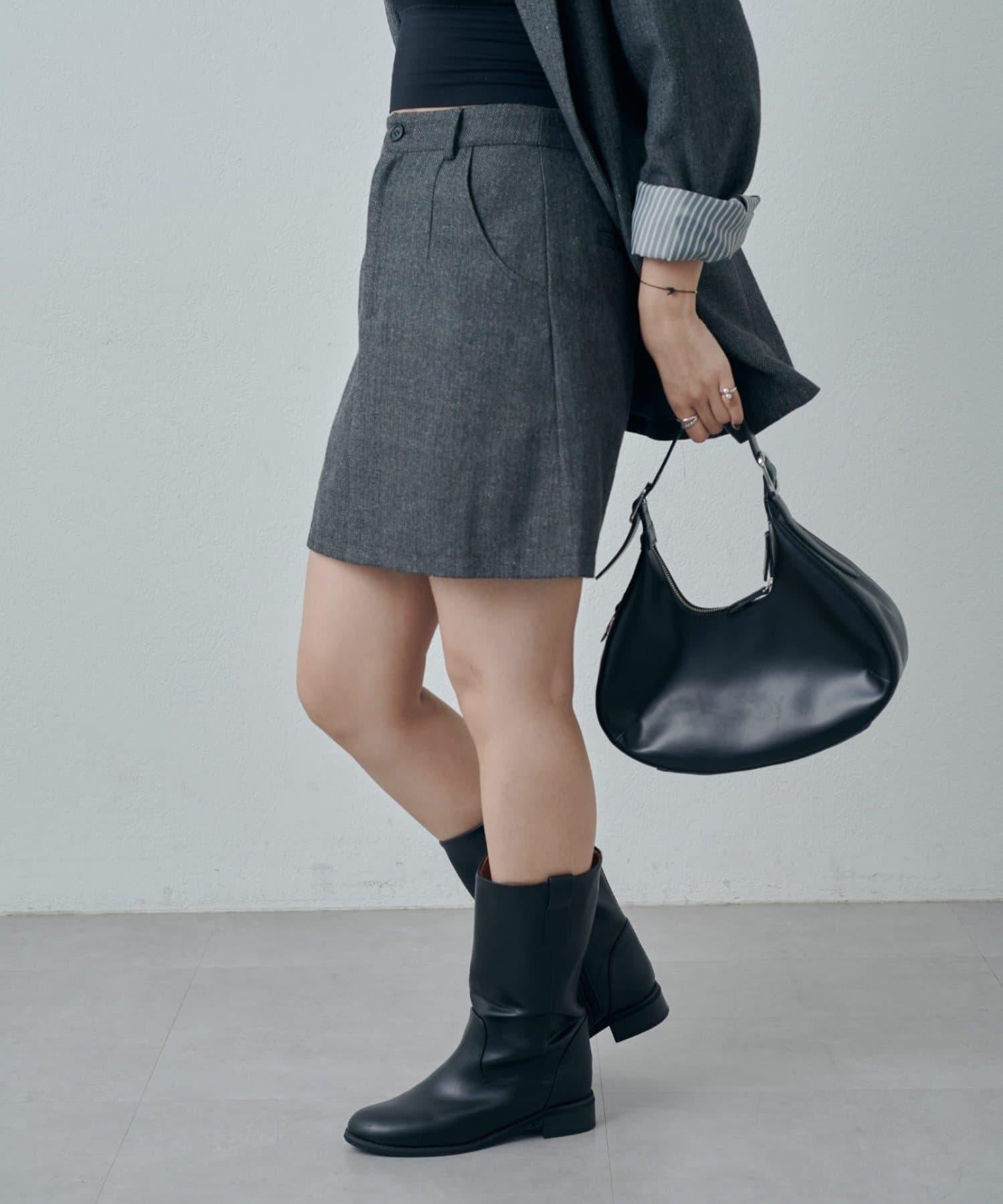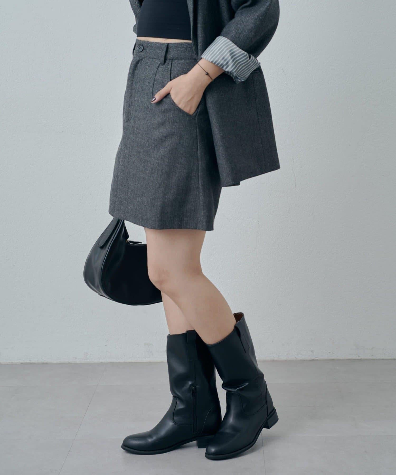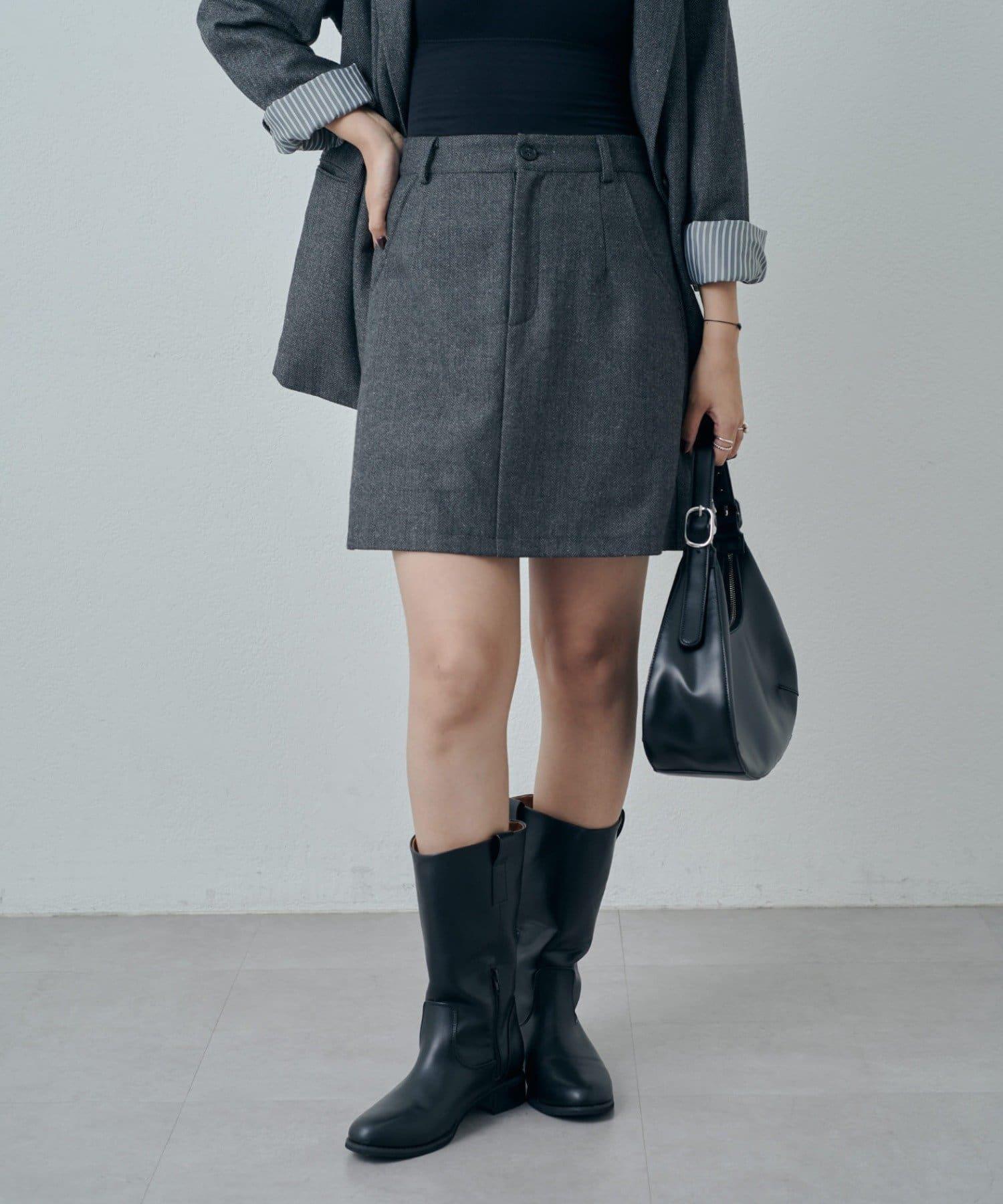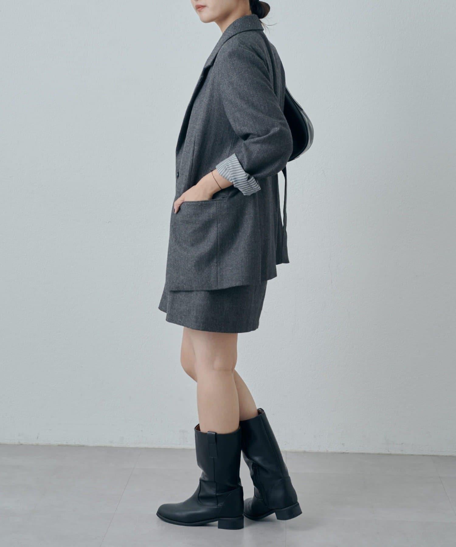 建議與同材質夾克 [LUZ1052207A0003 人字形揹帶夾克] 搭配穿著,盡享套裝風格。