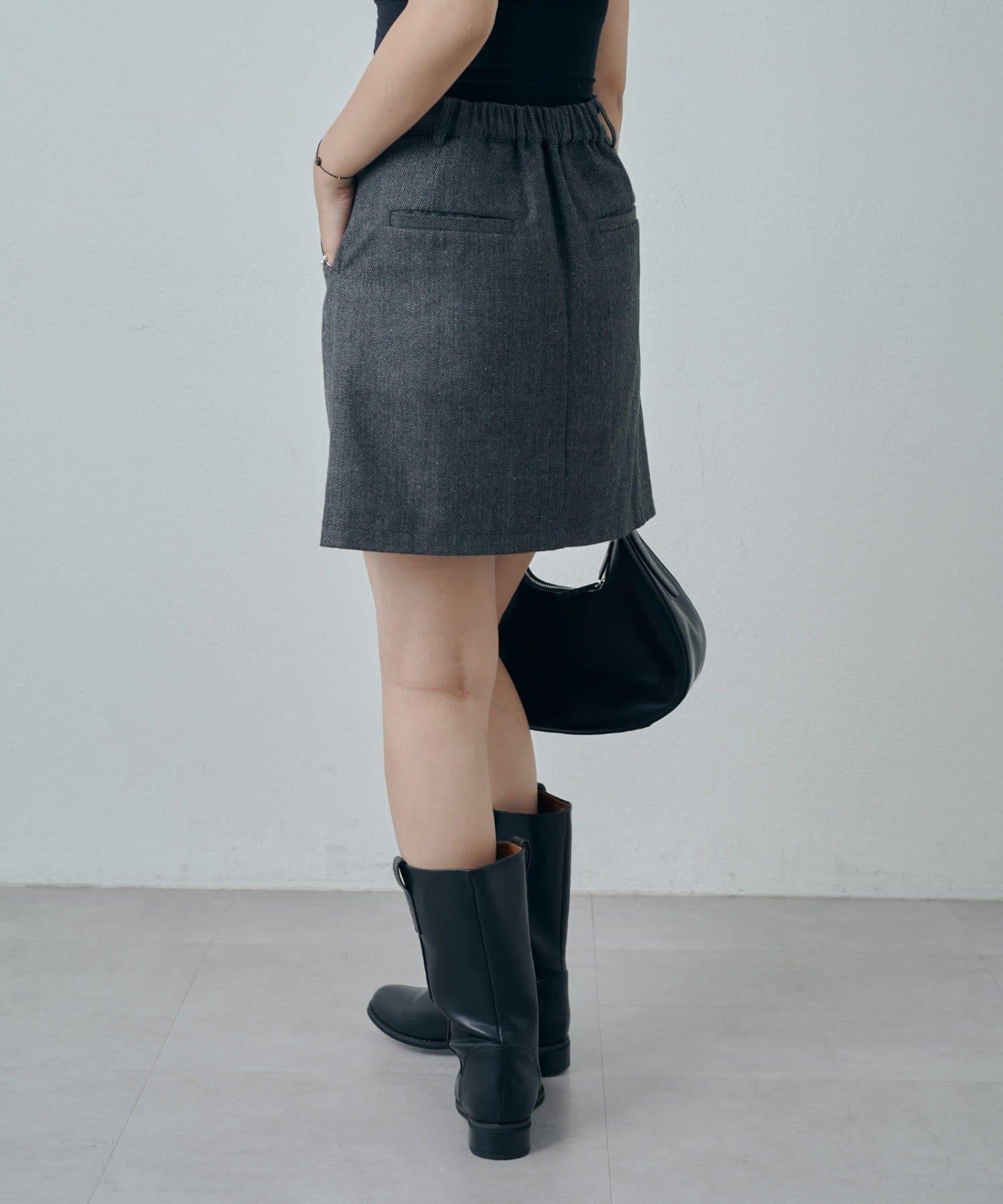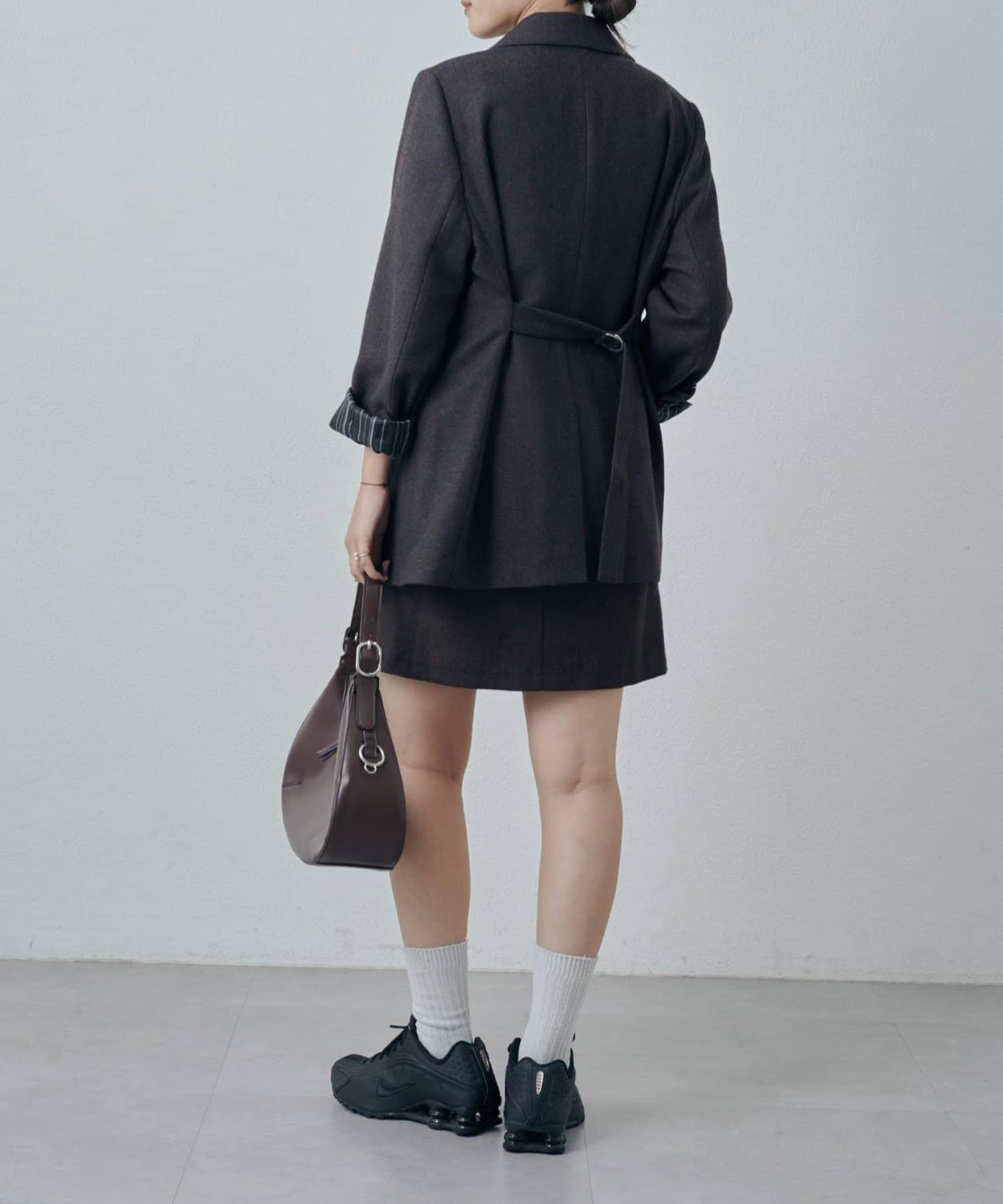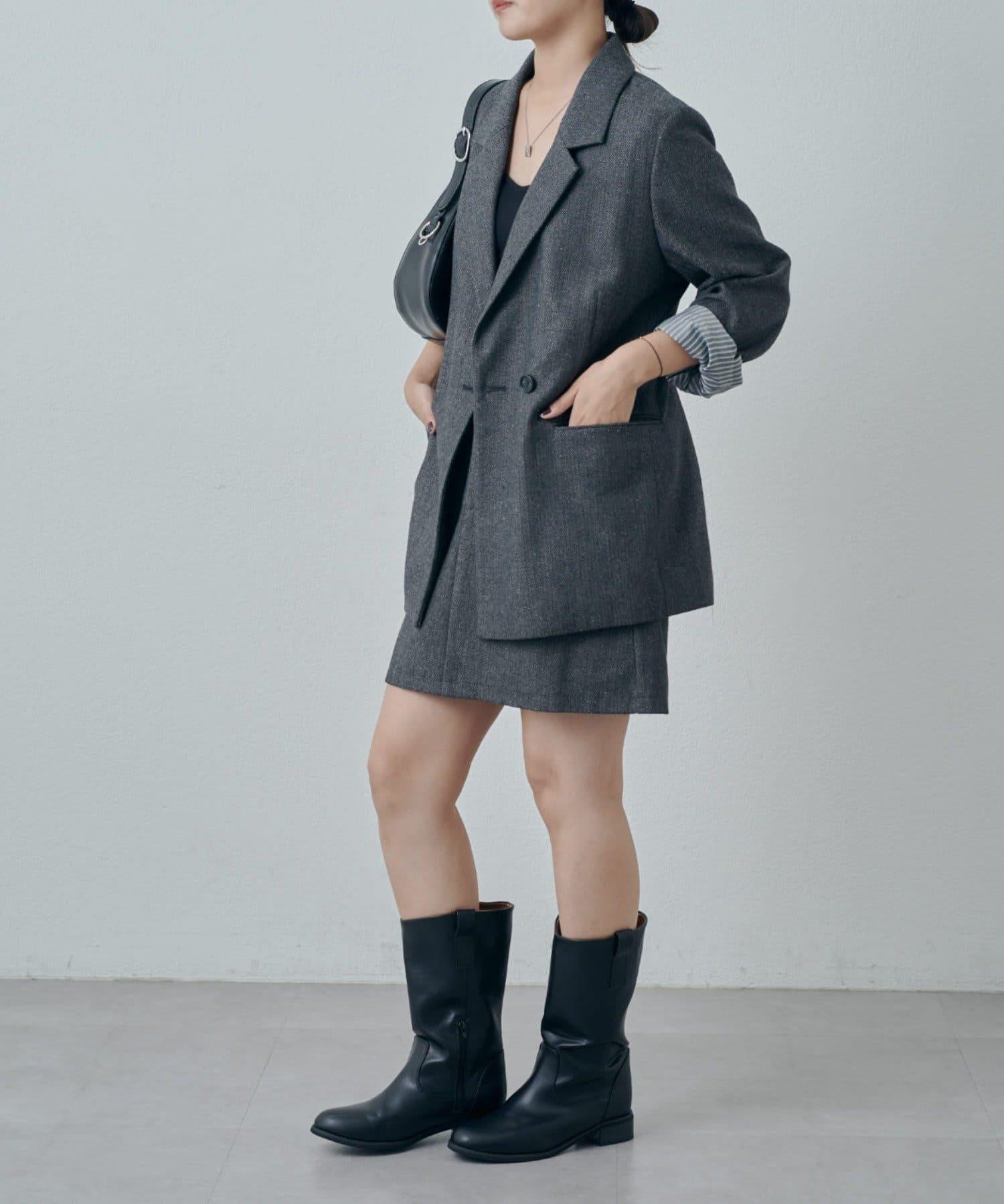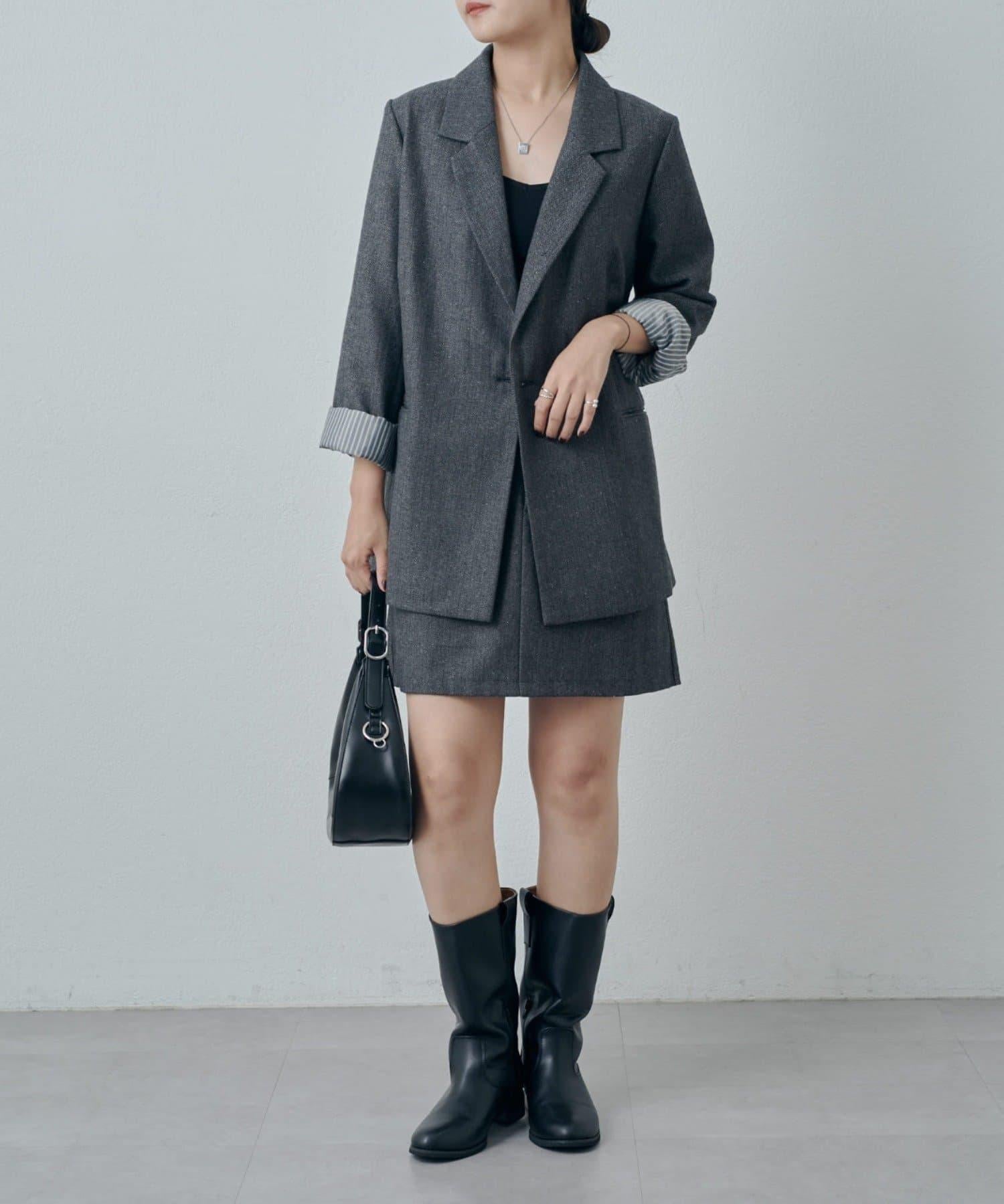 人字形面料提升了季節感,打造出成熟優雅的造型。