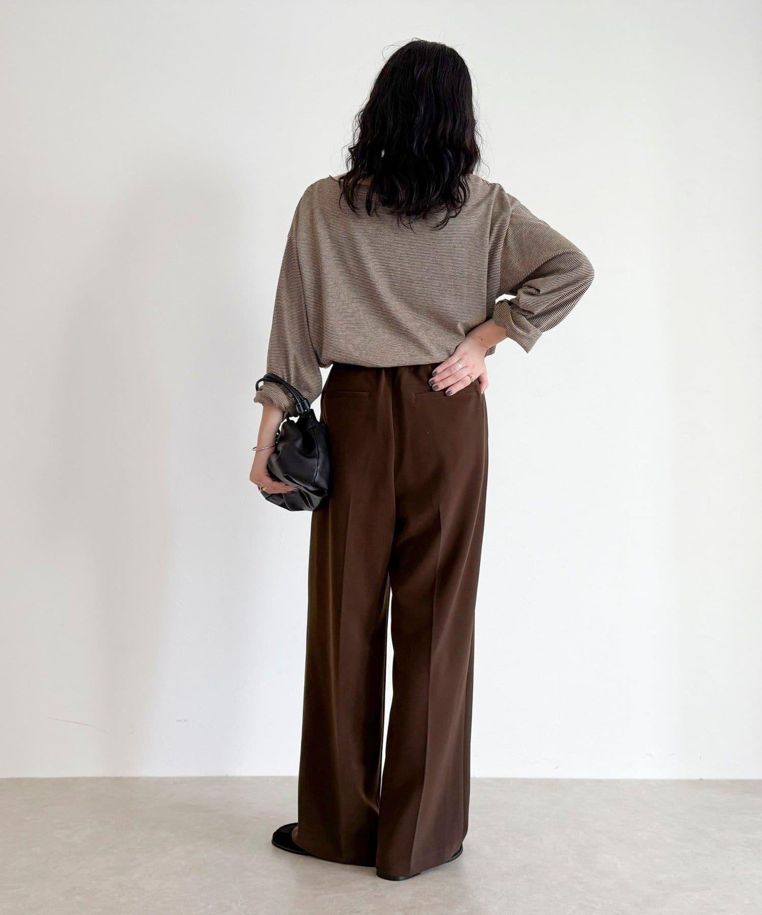 身高 156cm 的工作人員(穿 38 號):長度很好地遮住了腳踝,可搭配高跟鞋或平底鞋,平衡感很好。後腰處有鬆緊帶,不會有緊繃感,收腰設計讓腰部看起來很整潔。面料結實而柔軟,寒冷季節也可放心穿著。