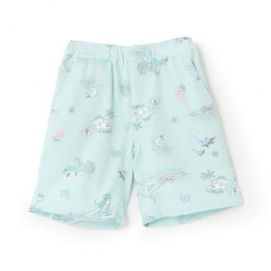 黃色是交通工具,淺綠色是恐龍阿羅哈,藍色是像素迷彩風格的魚圖案。