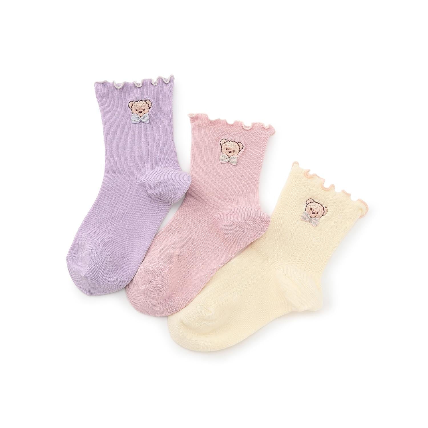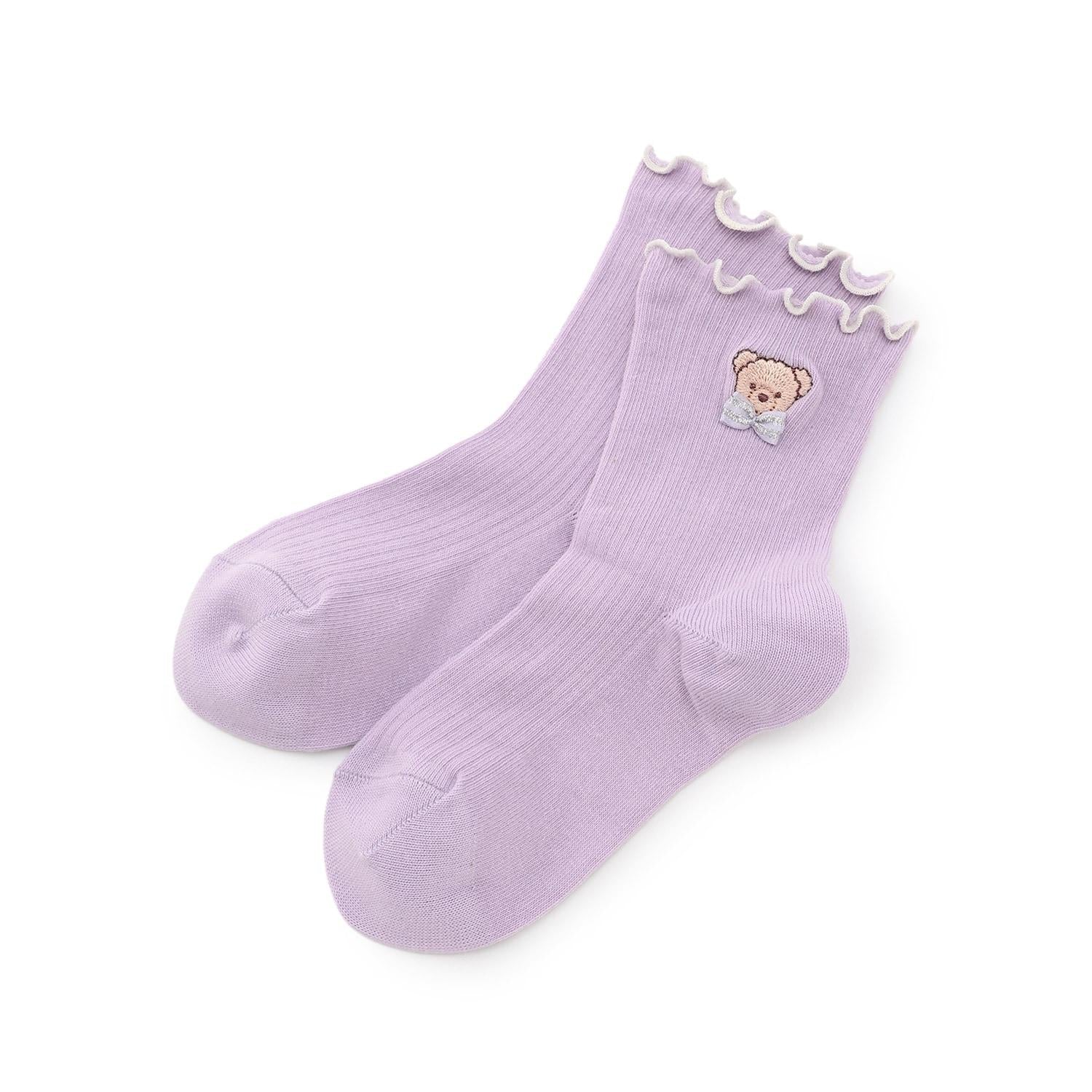 【人氣商品】【直營店無售】小熊刺繡羅紋襪