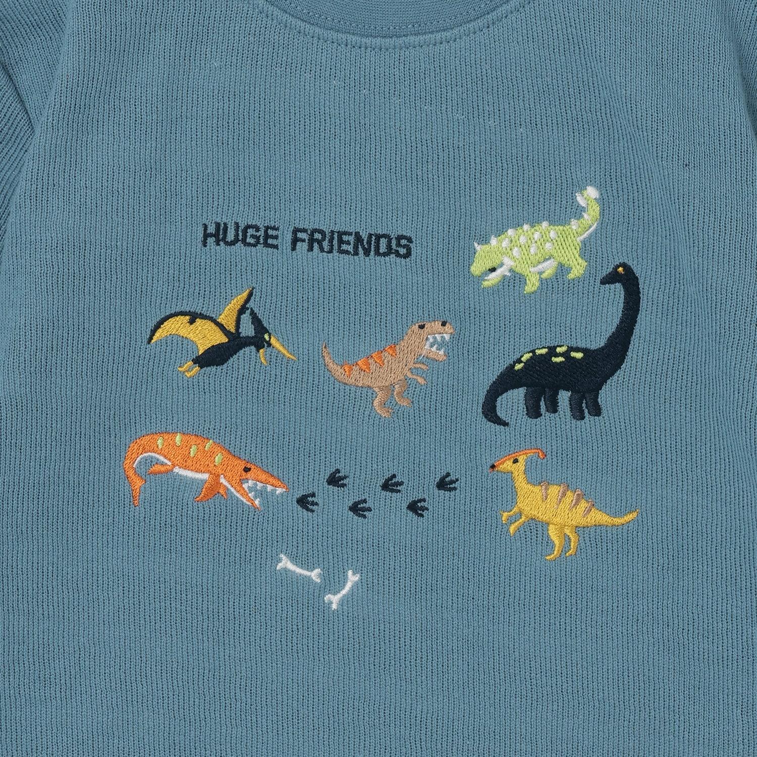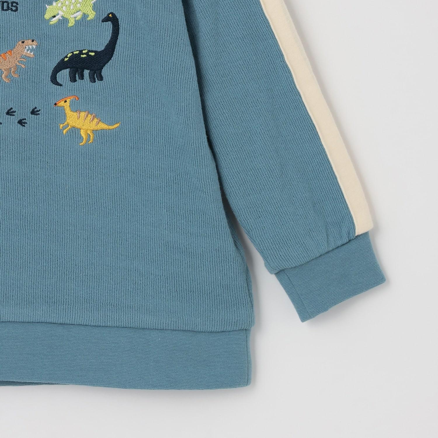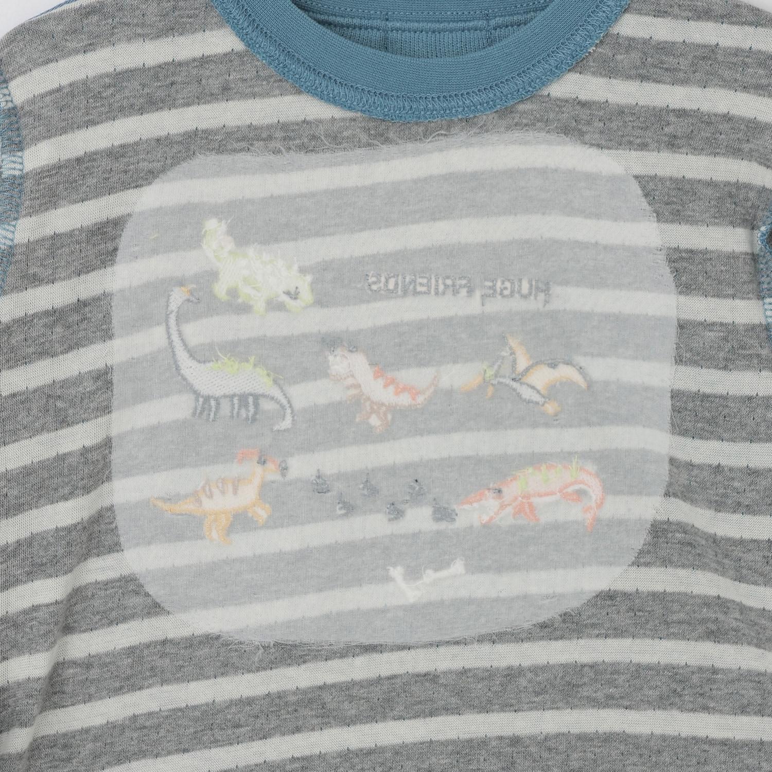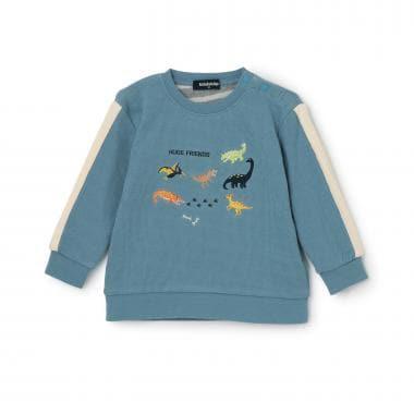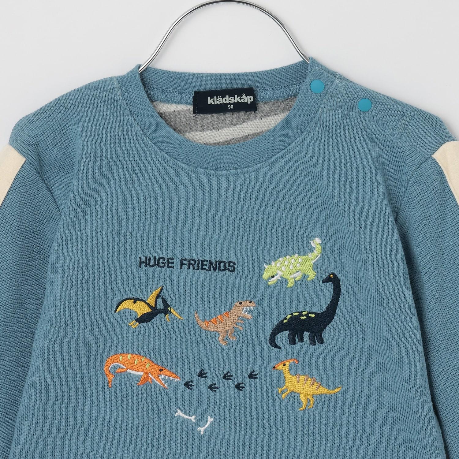 【人氣商品】【直營店無售】恐龍刺繡袖部條紋拼接長袖T恤