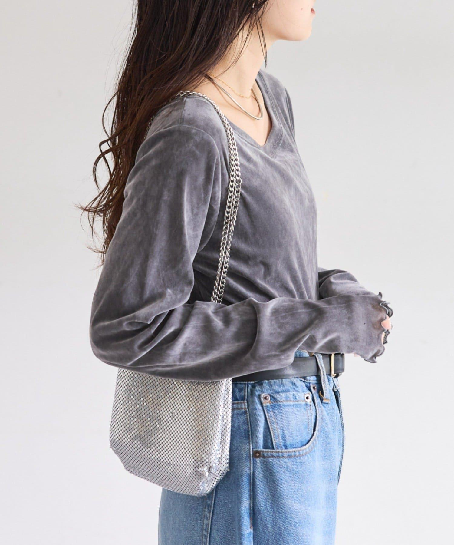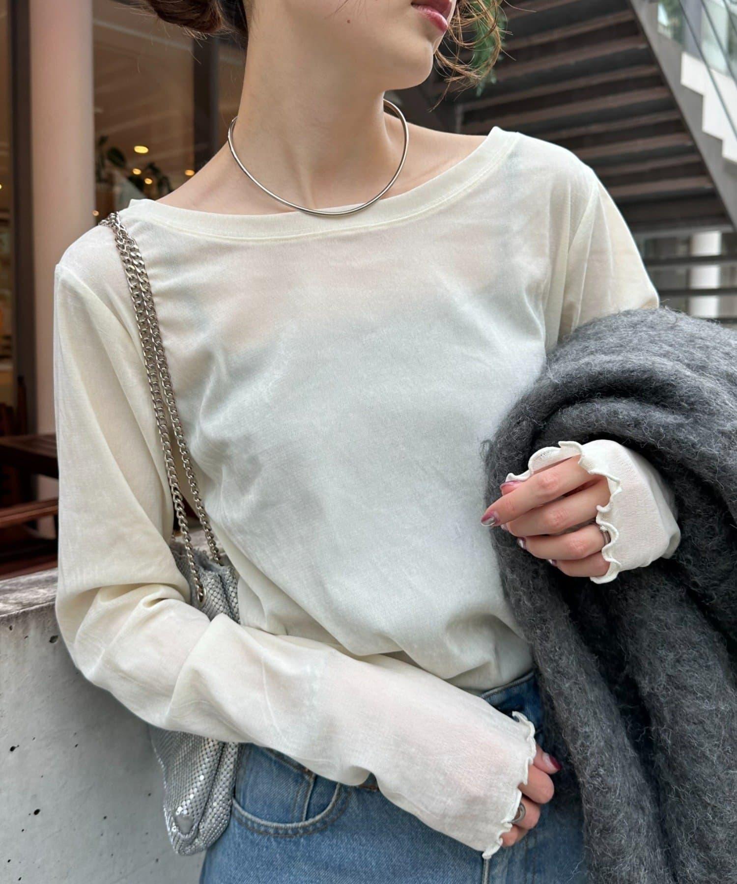 【人氣單品再次加販決定!!】透明絨面細肩露臍上衣