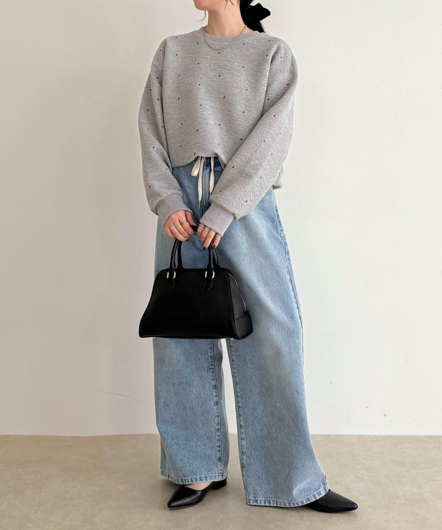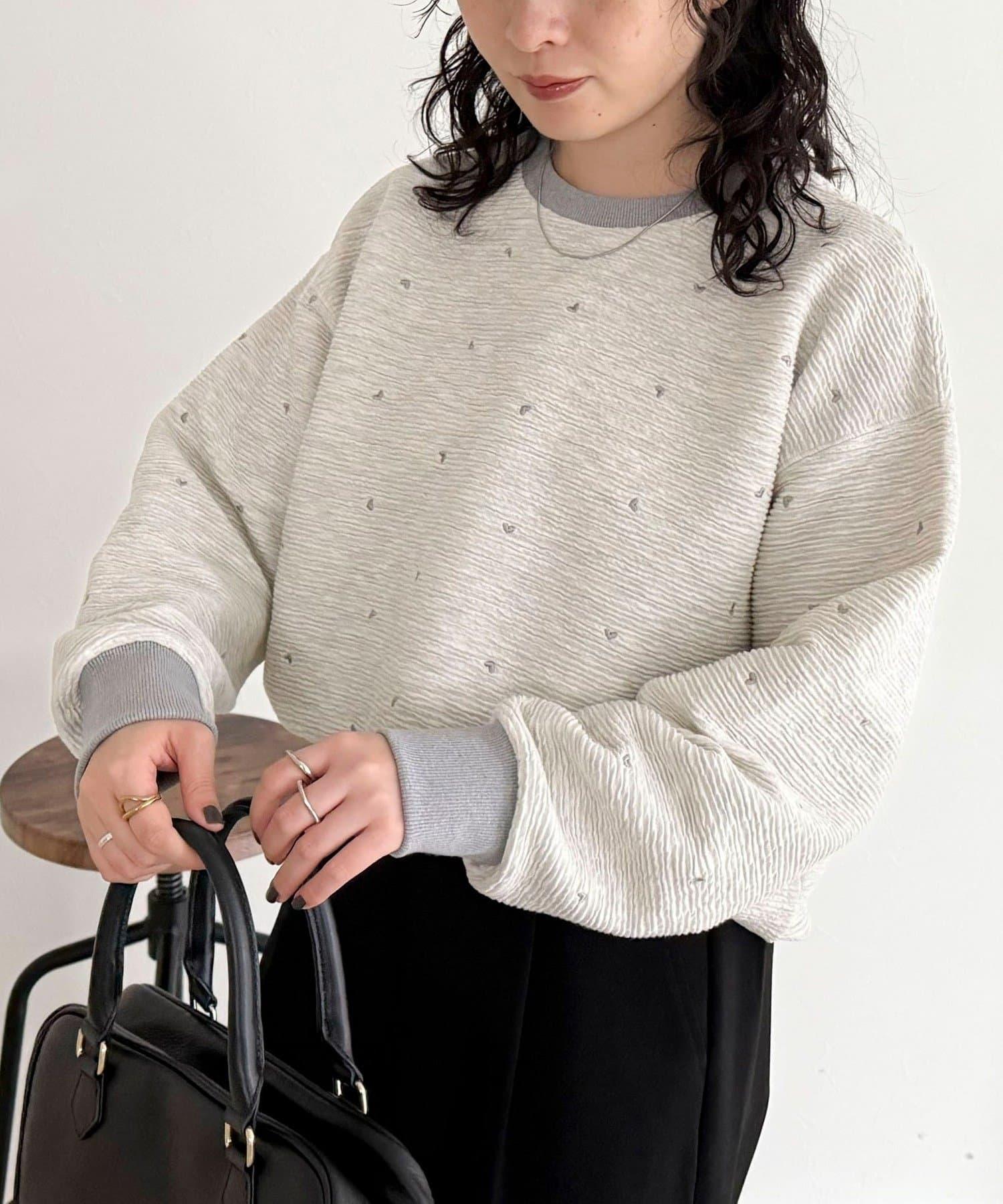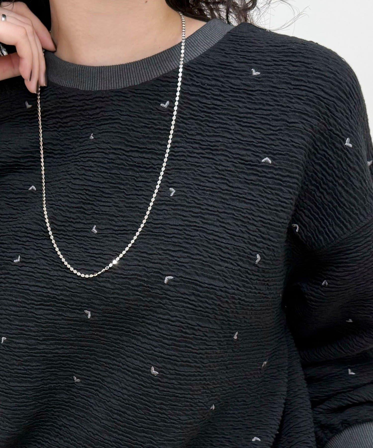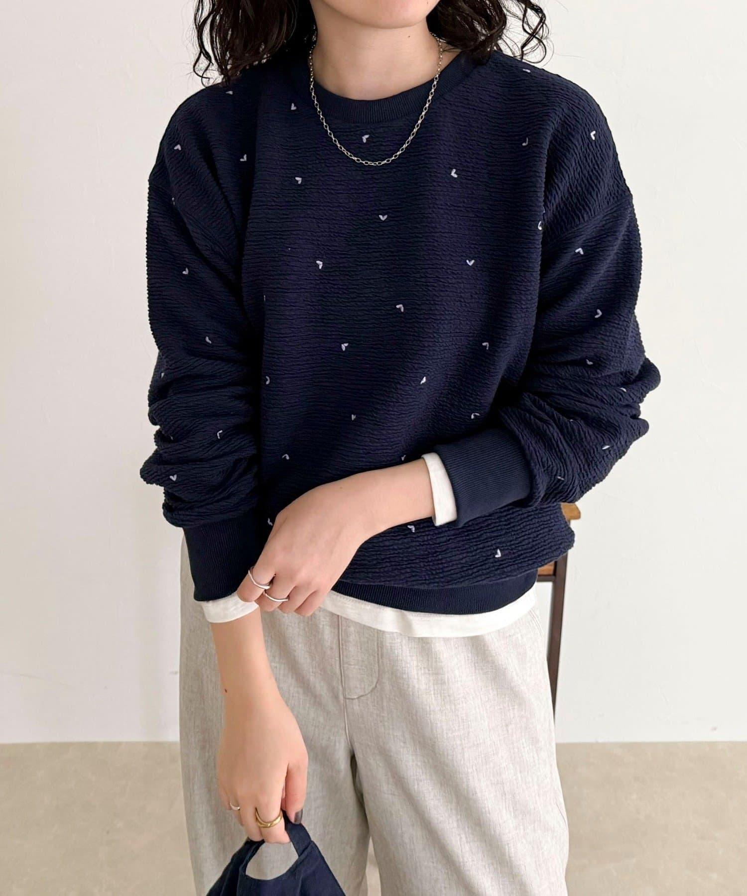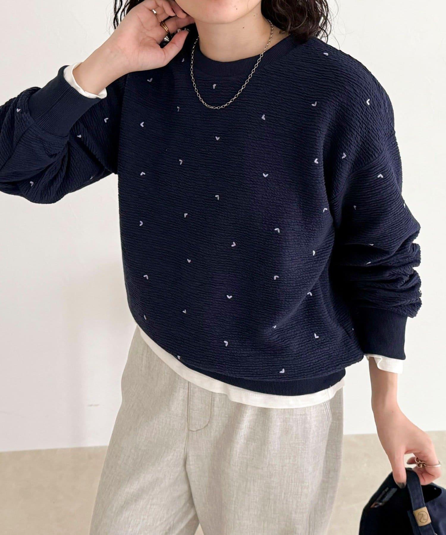 小巧的心形刺繡看起來像小圓點,給人一種成人的可愛印象。