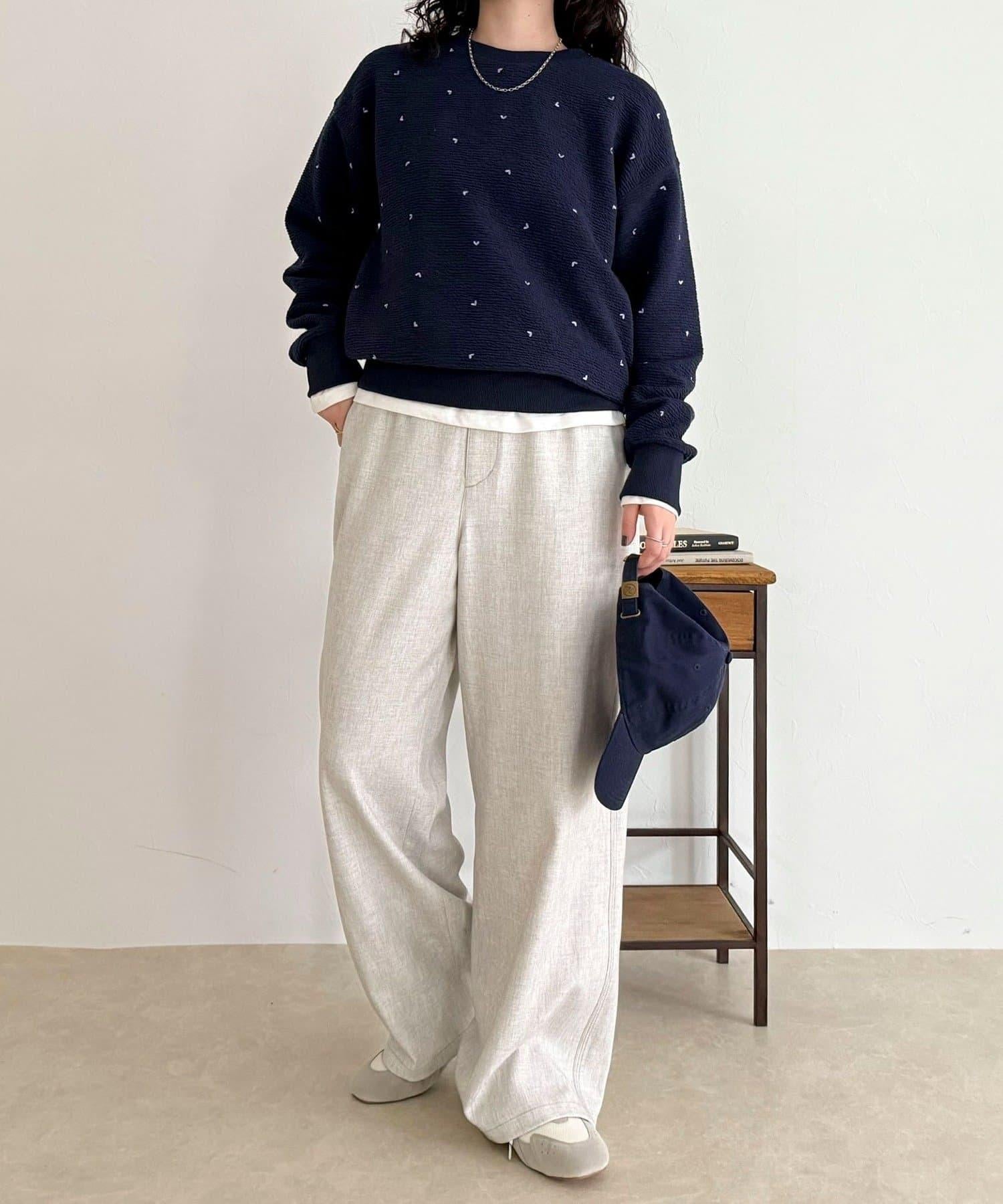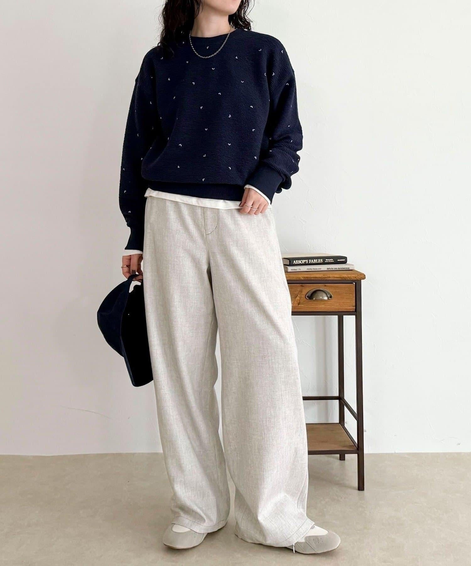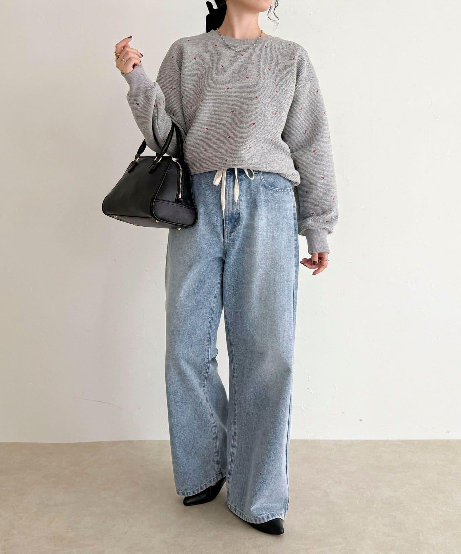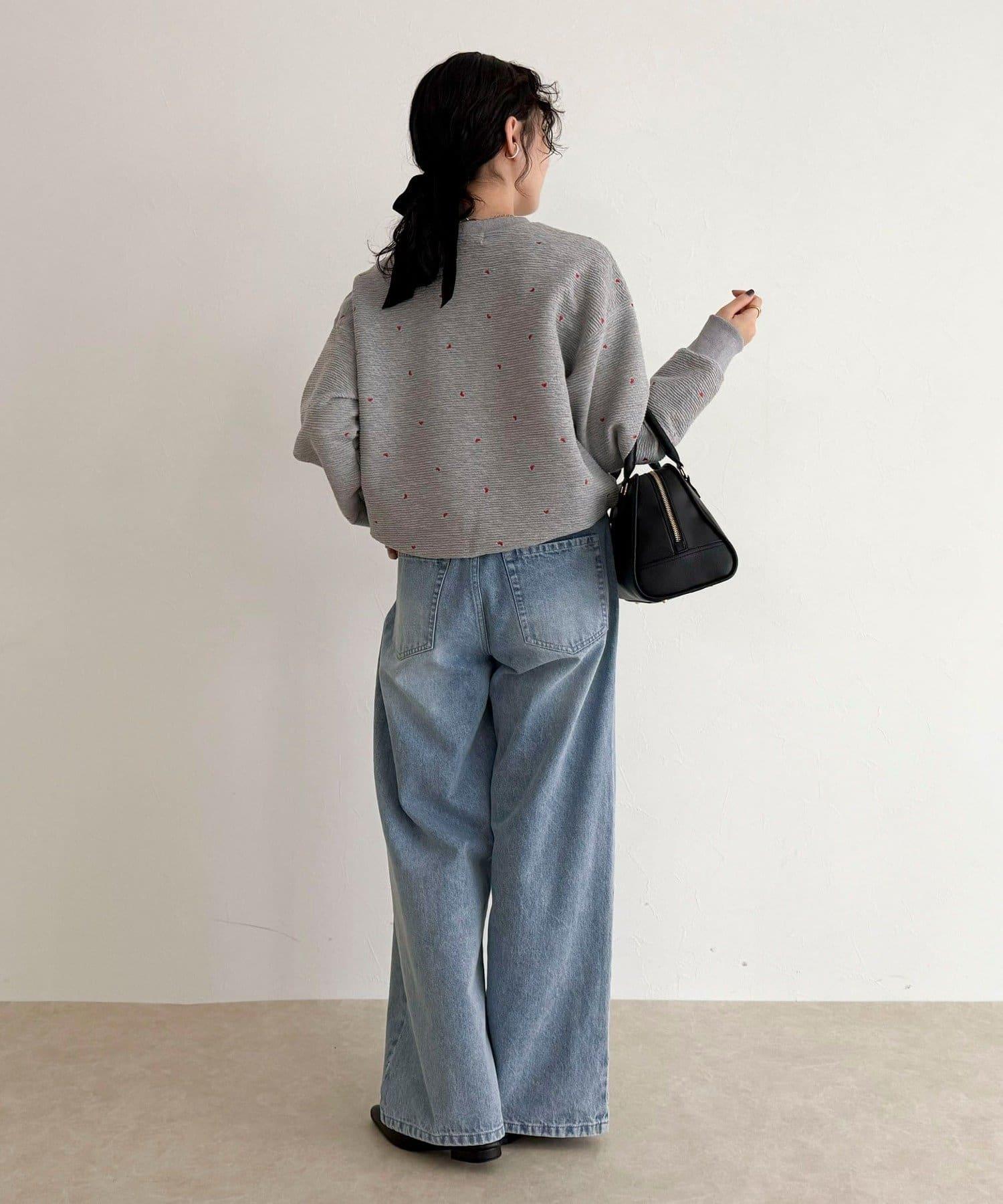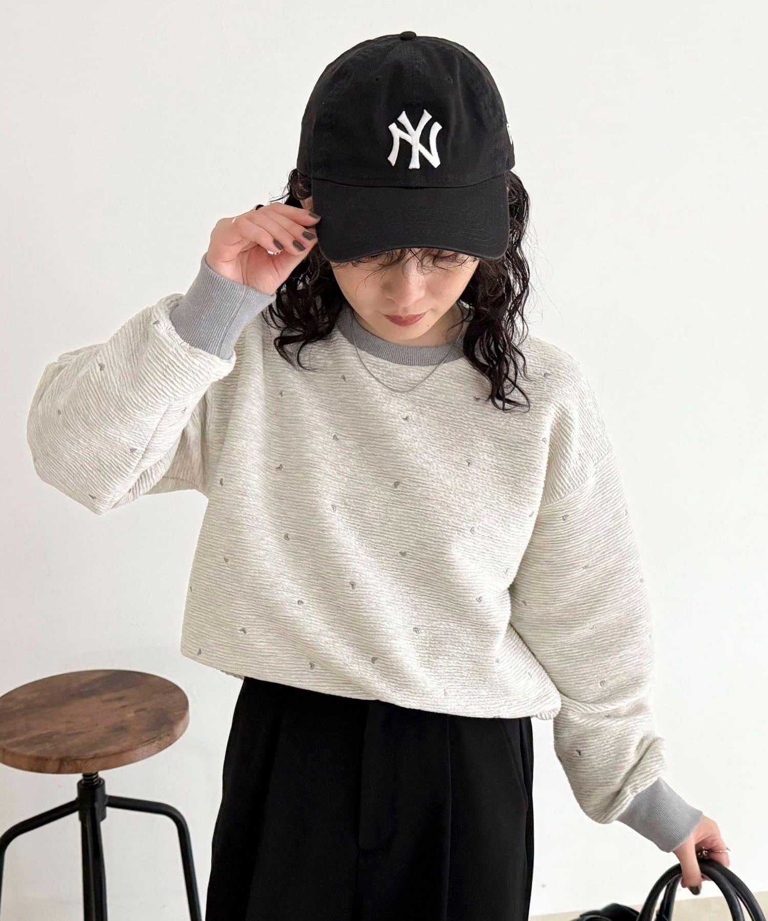 小巧的心形刺繡看起來像小圓點,給人一種成人的可愛印象。