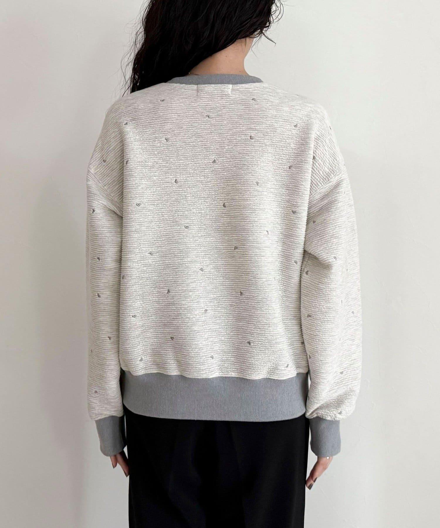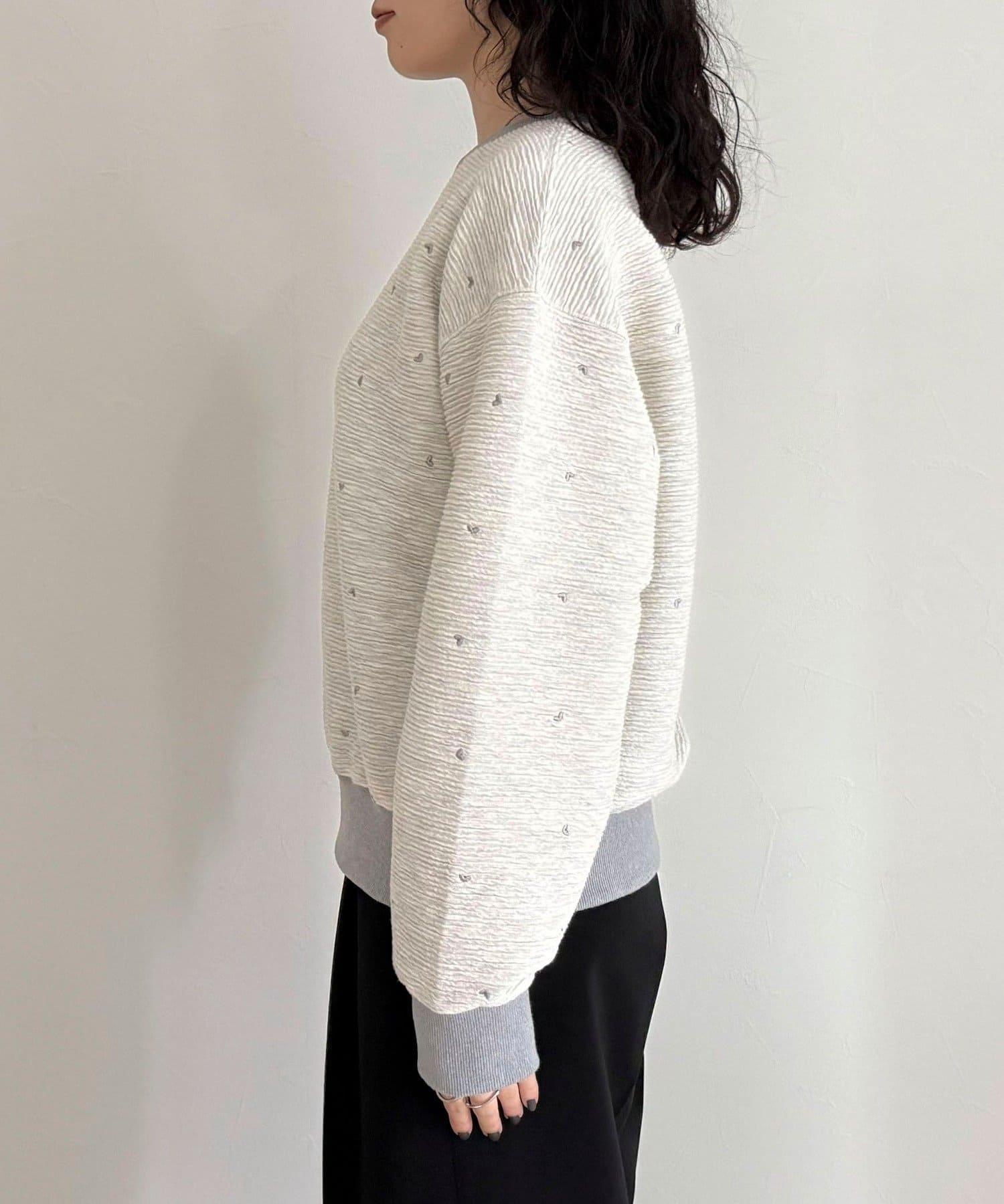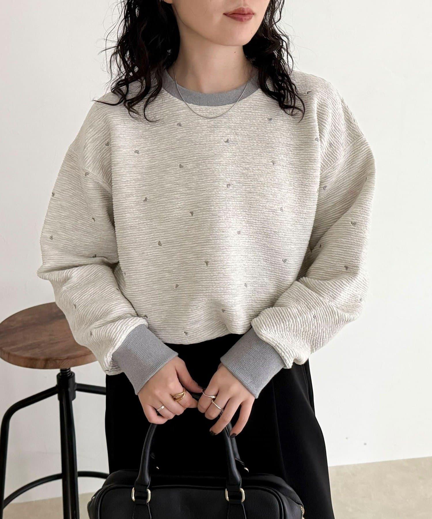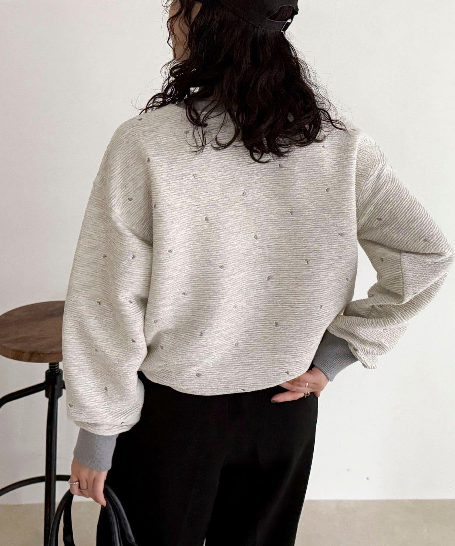 這是一款可愛的套頭衫,上面散佈著小巧的心形刺繡。
