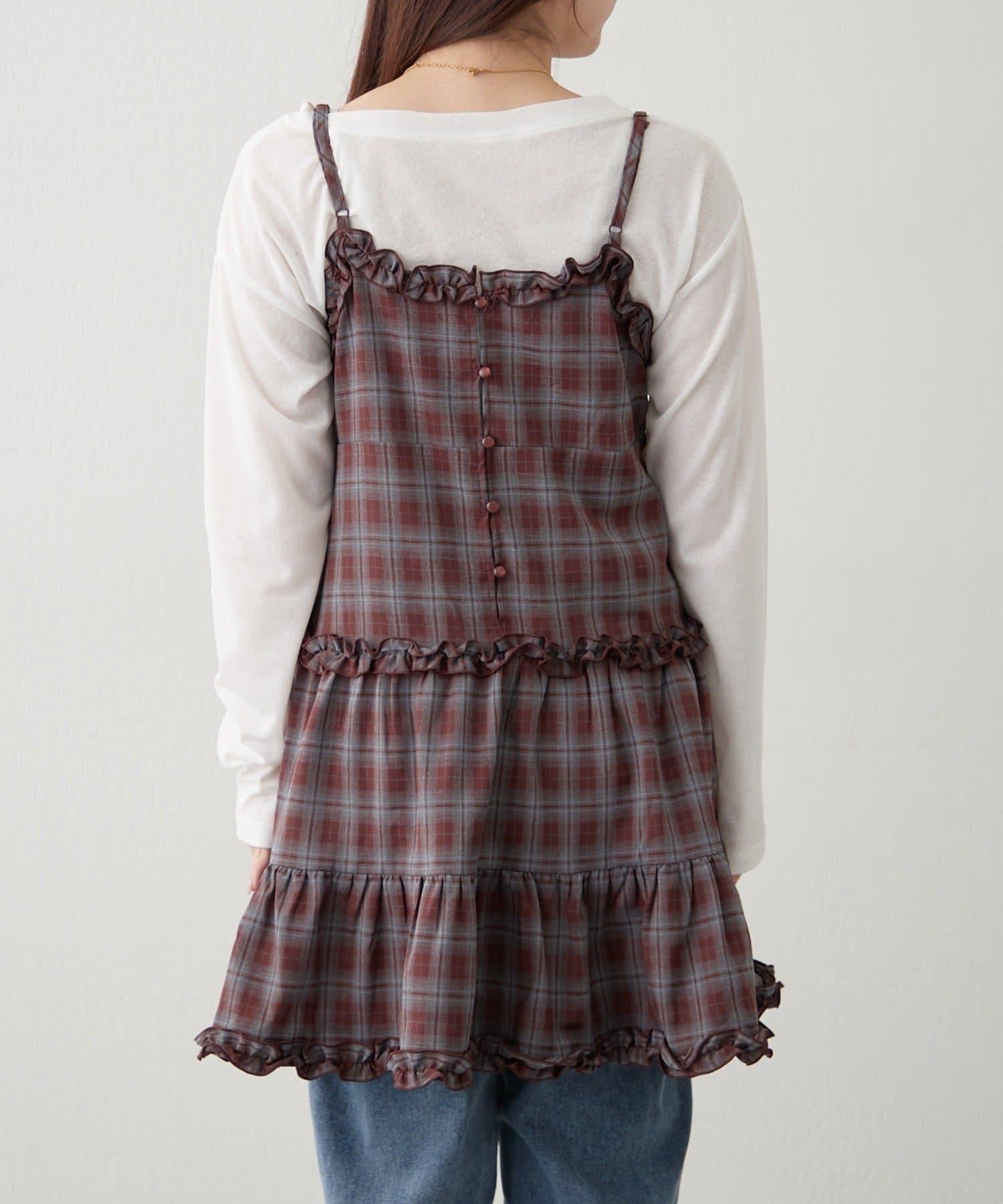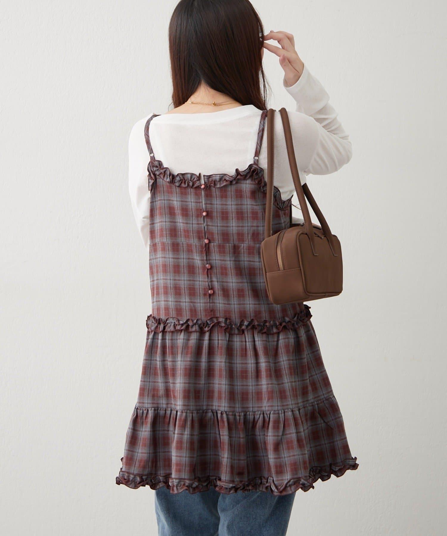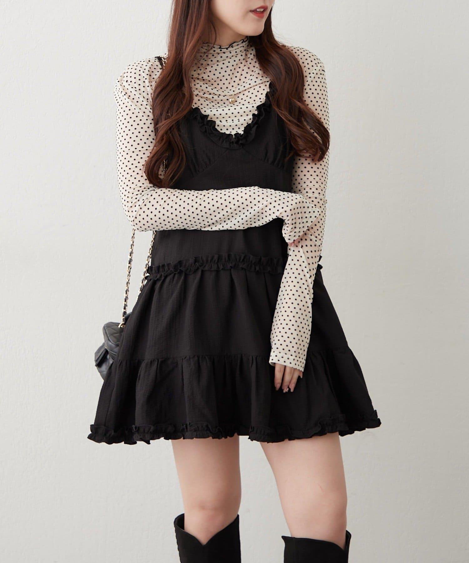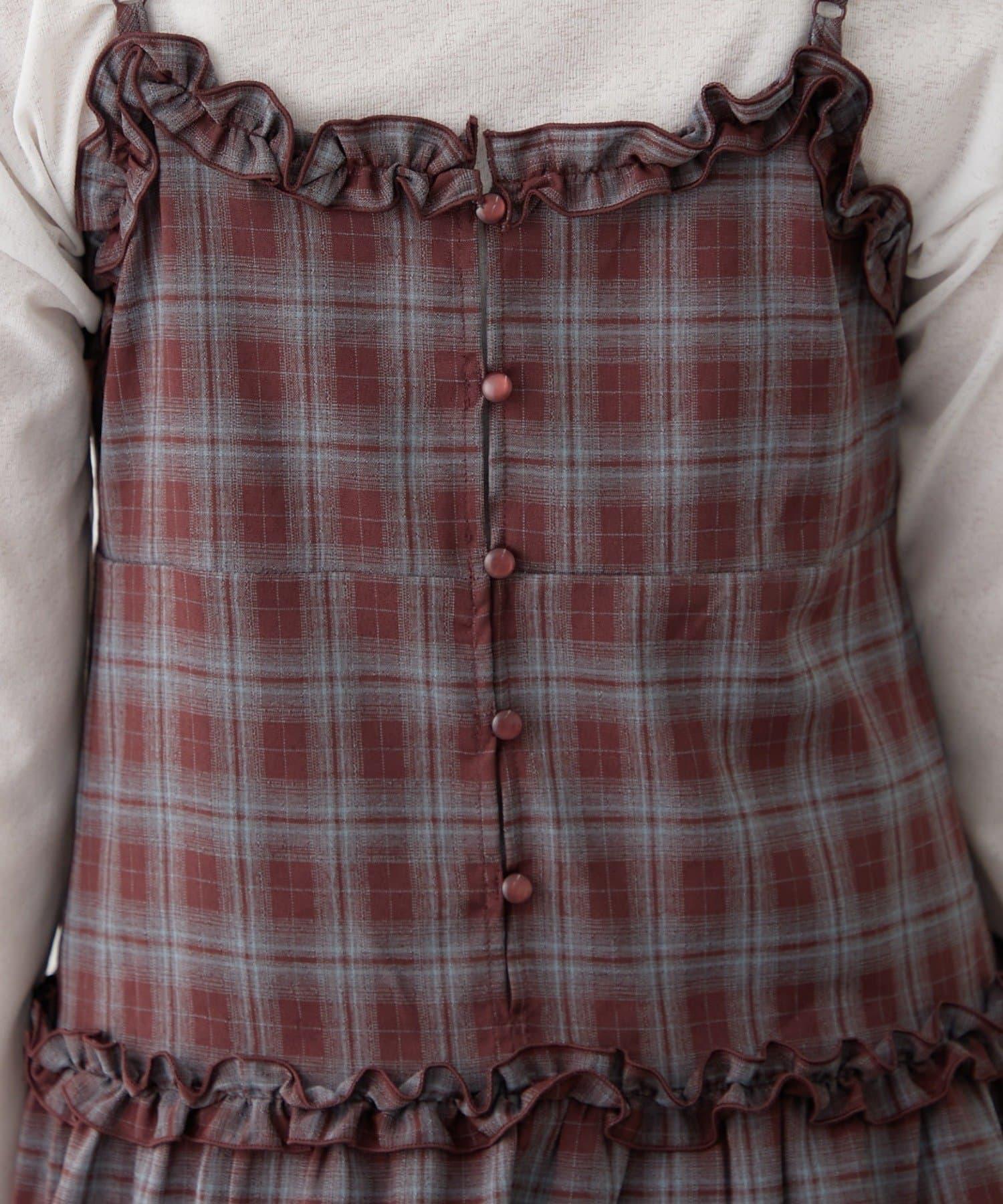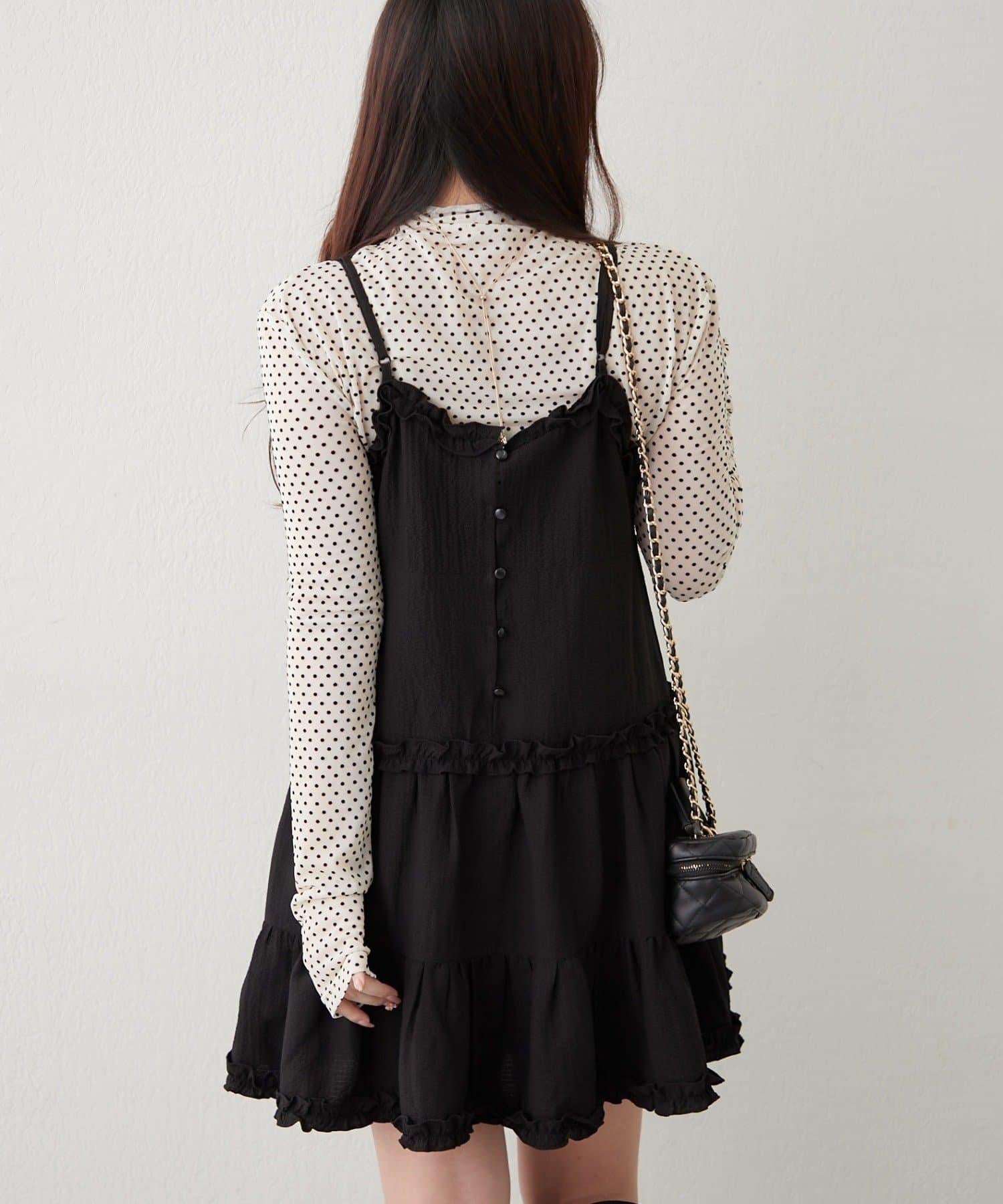 帶有荷葉邊和閃亮紐扣的吊帶長衫。