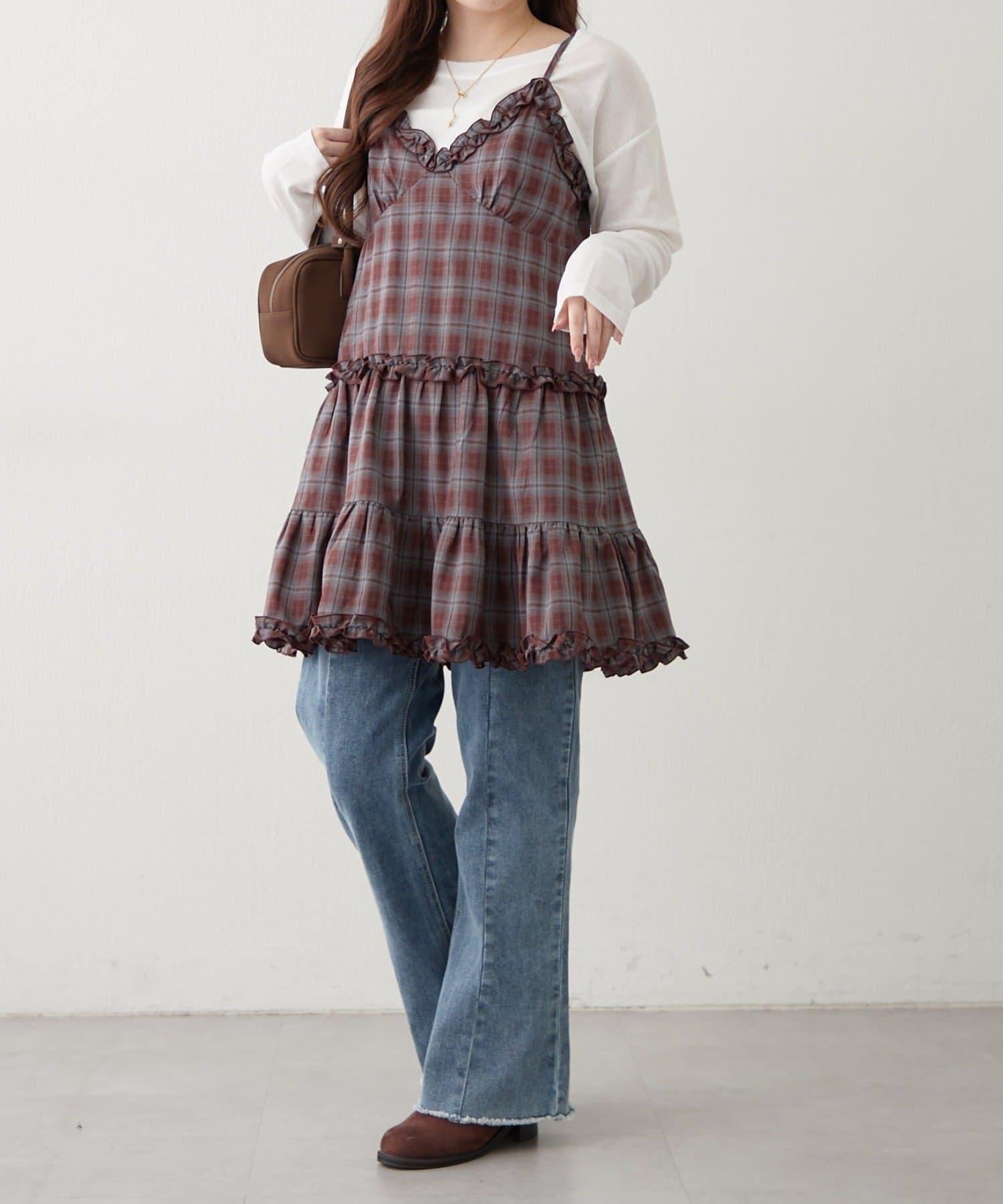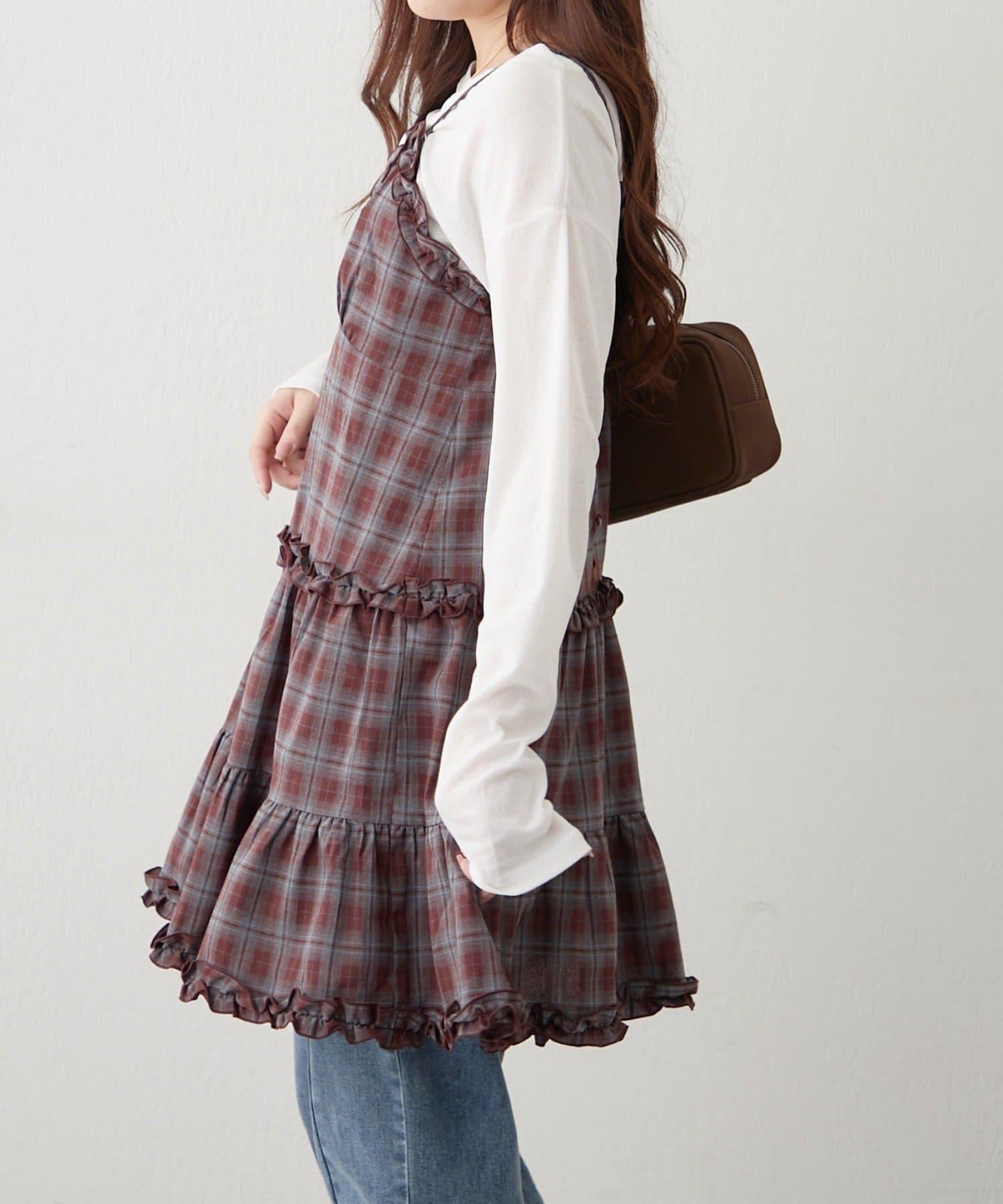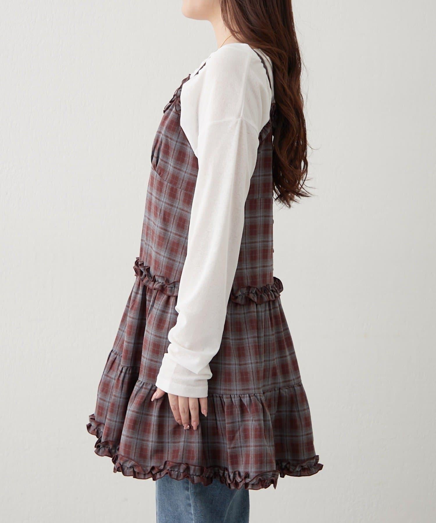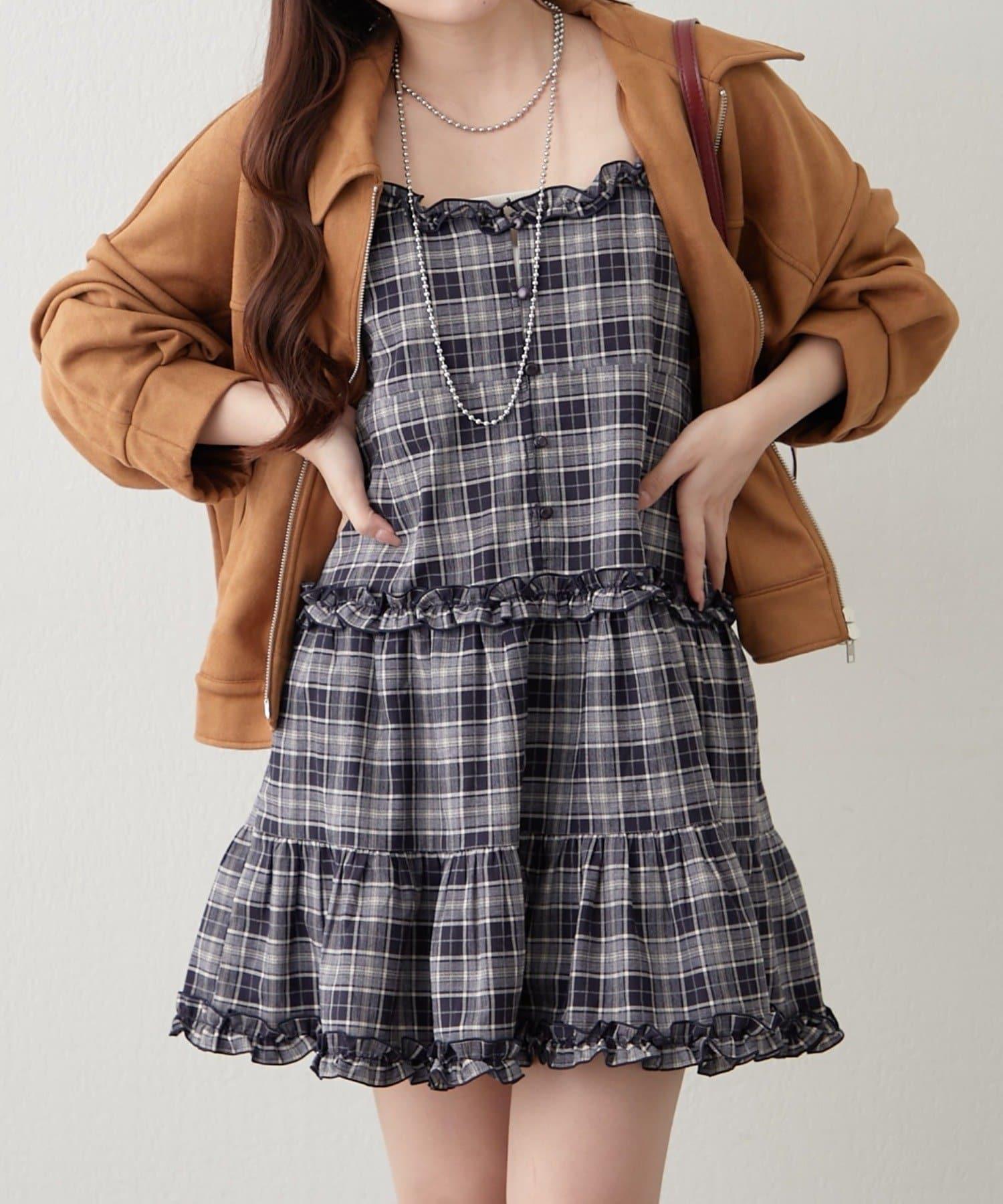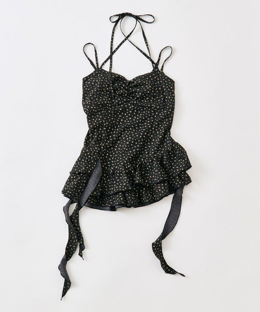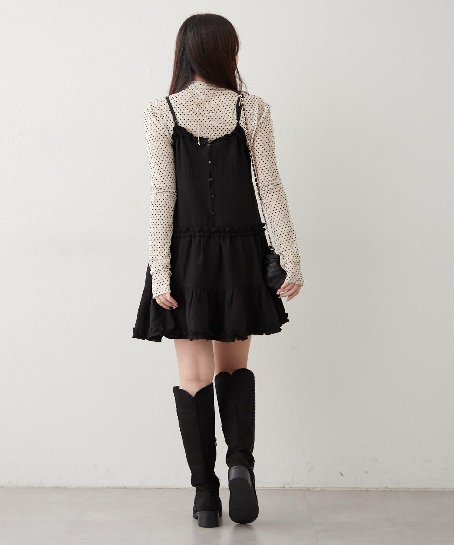 帶有荷葉邊和閃亮紐扣的吊帶長衫。