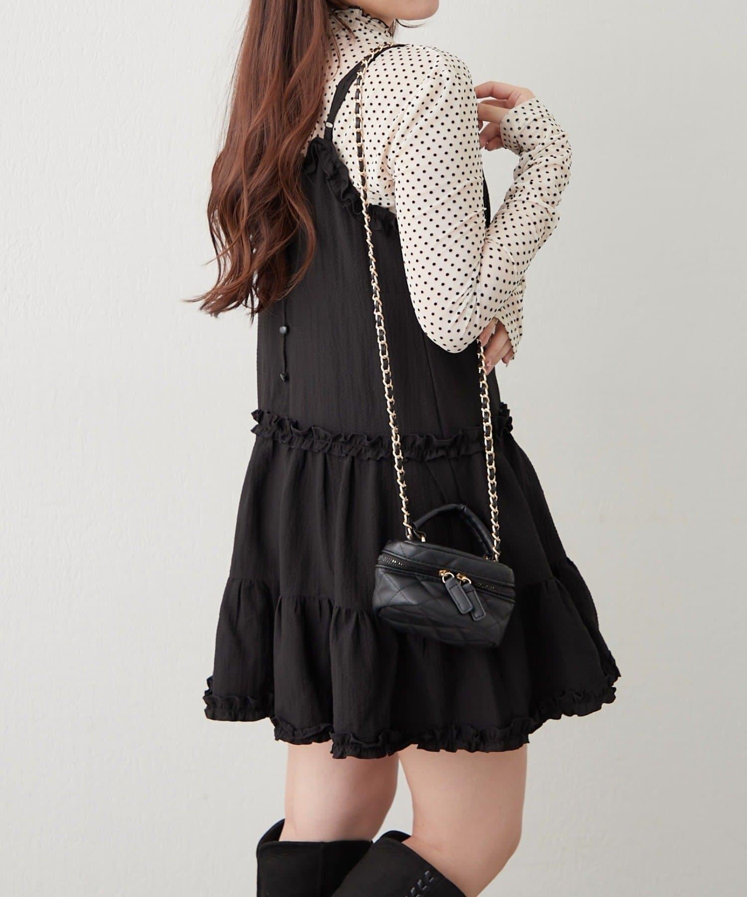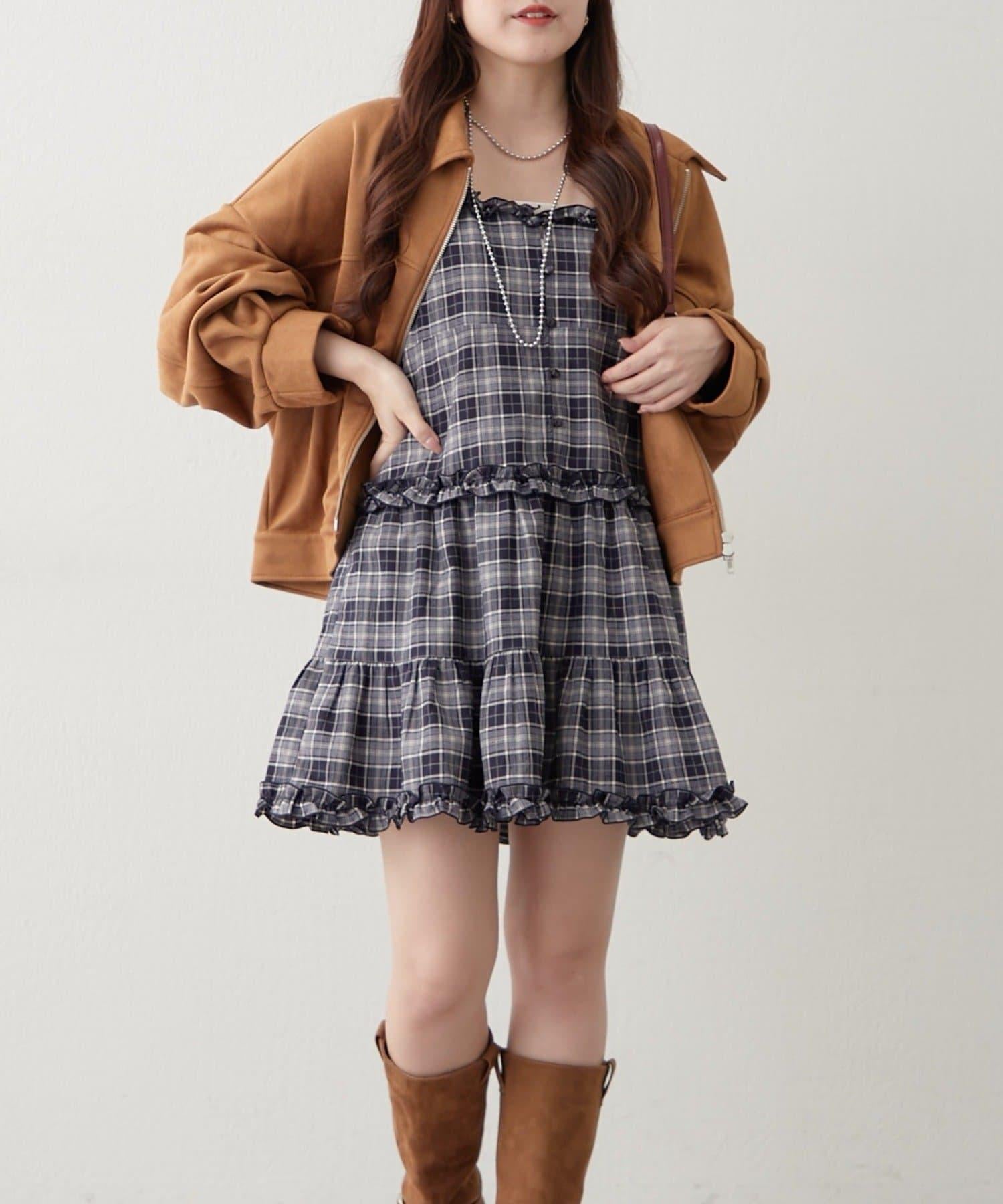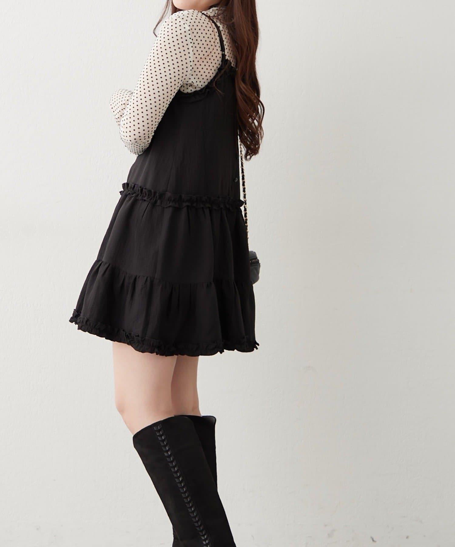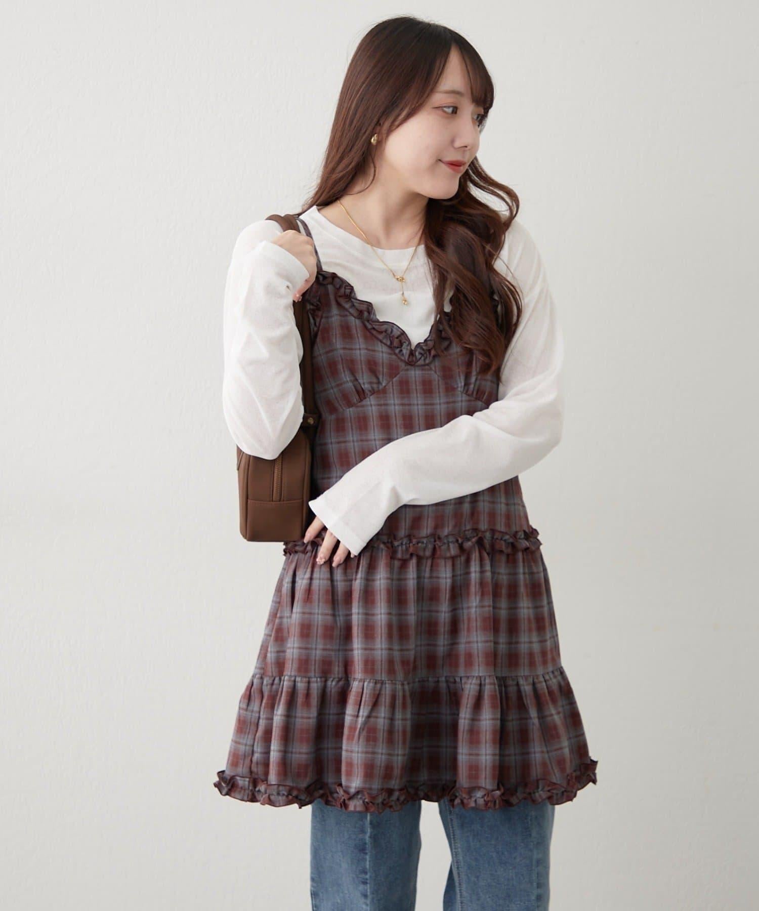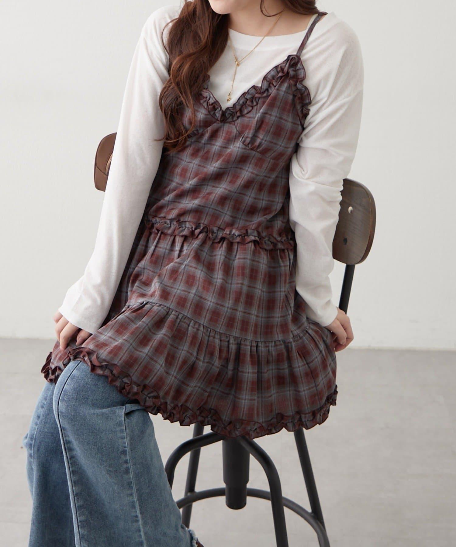 帶有荷葉邊和閃亮紐扣的吊帶長衫。