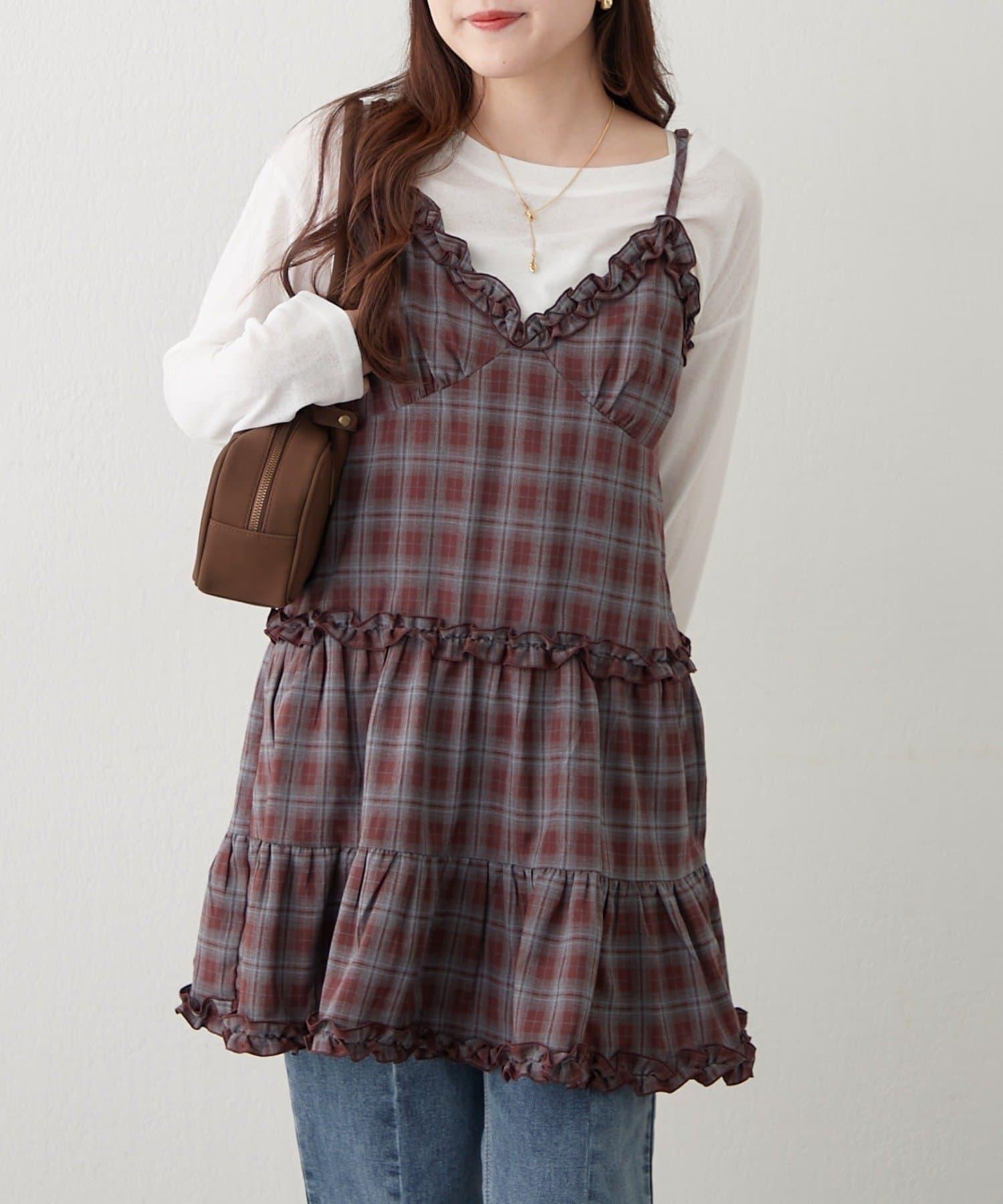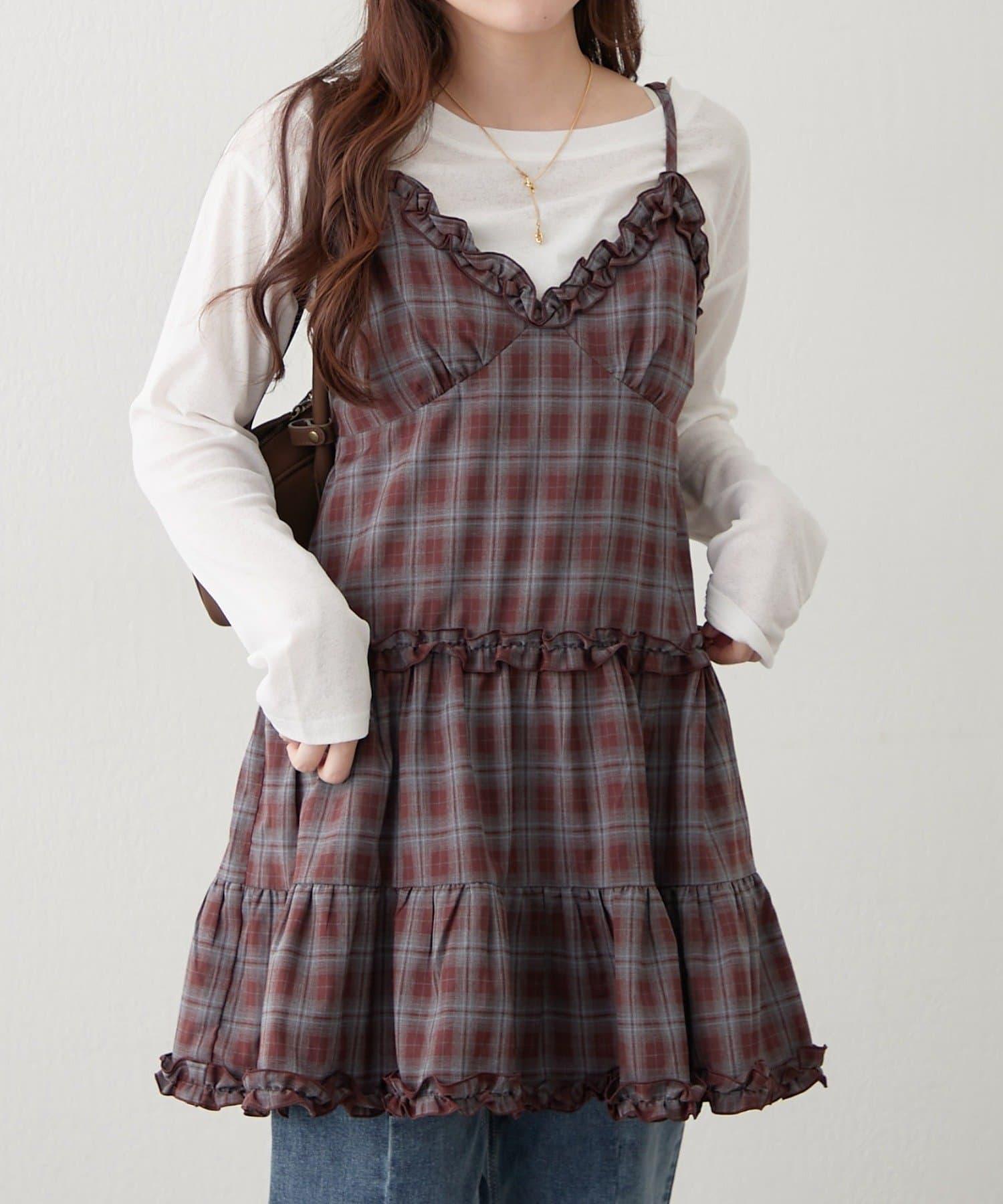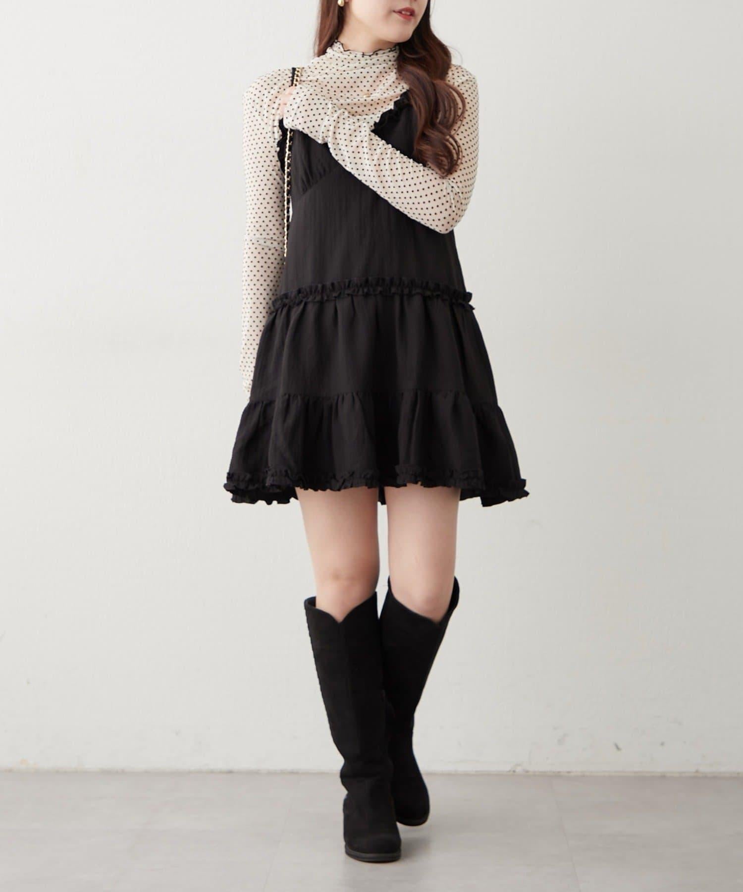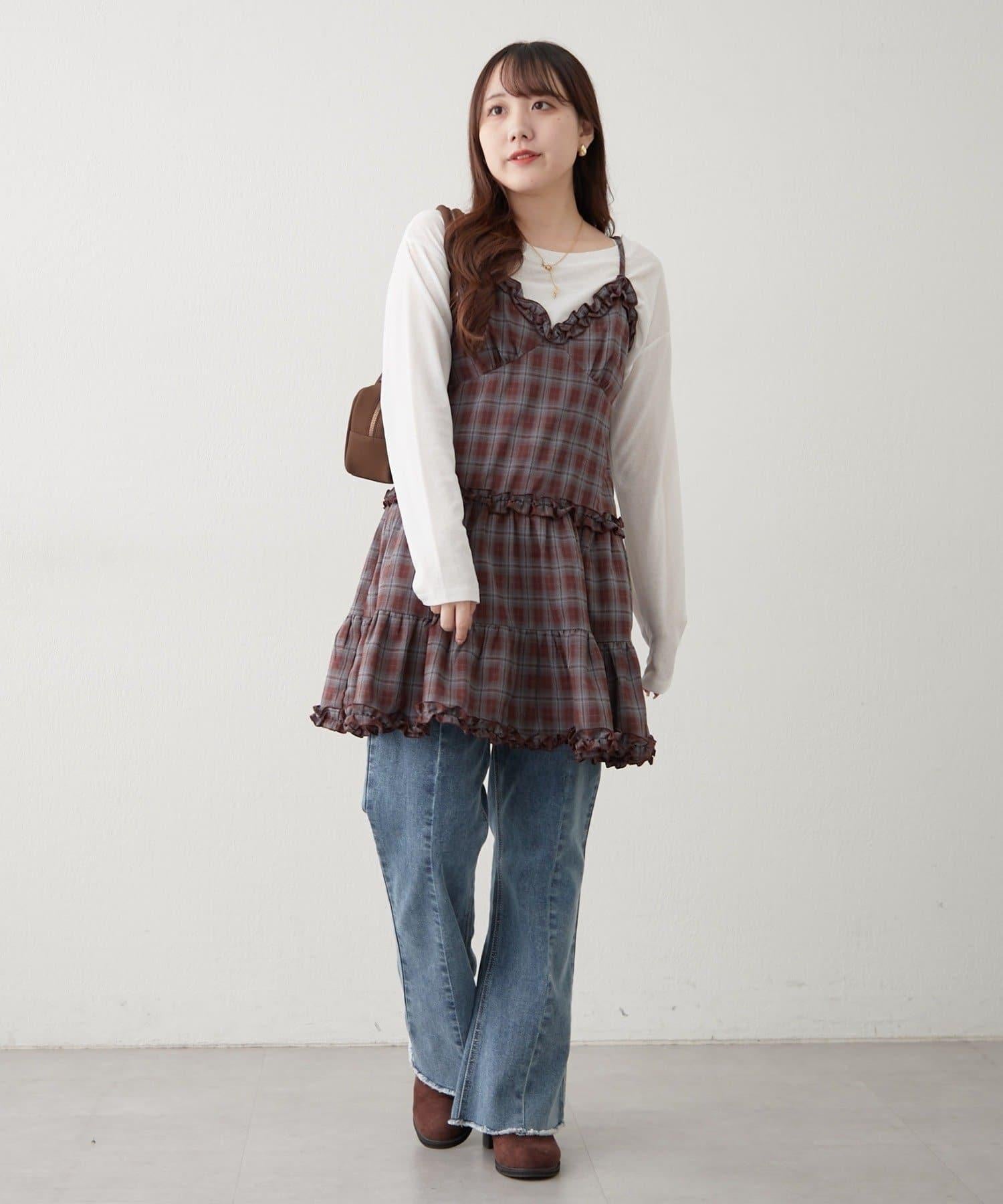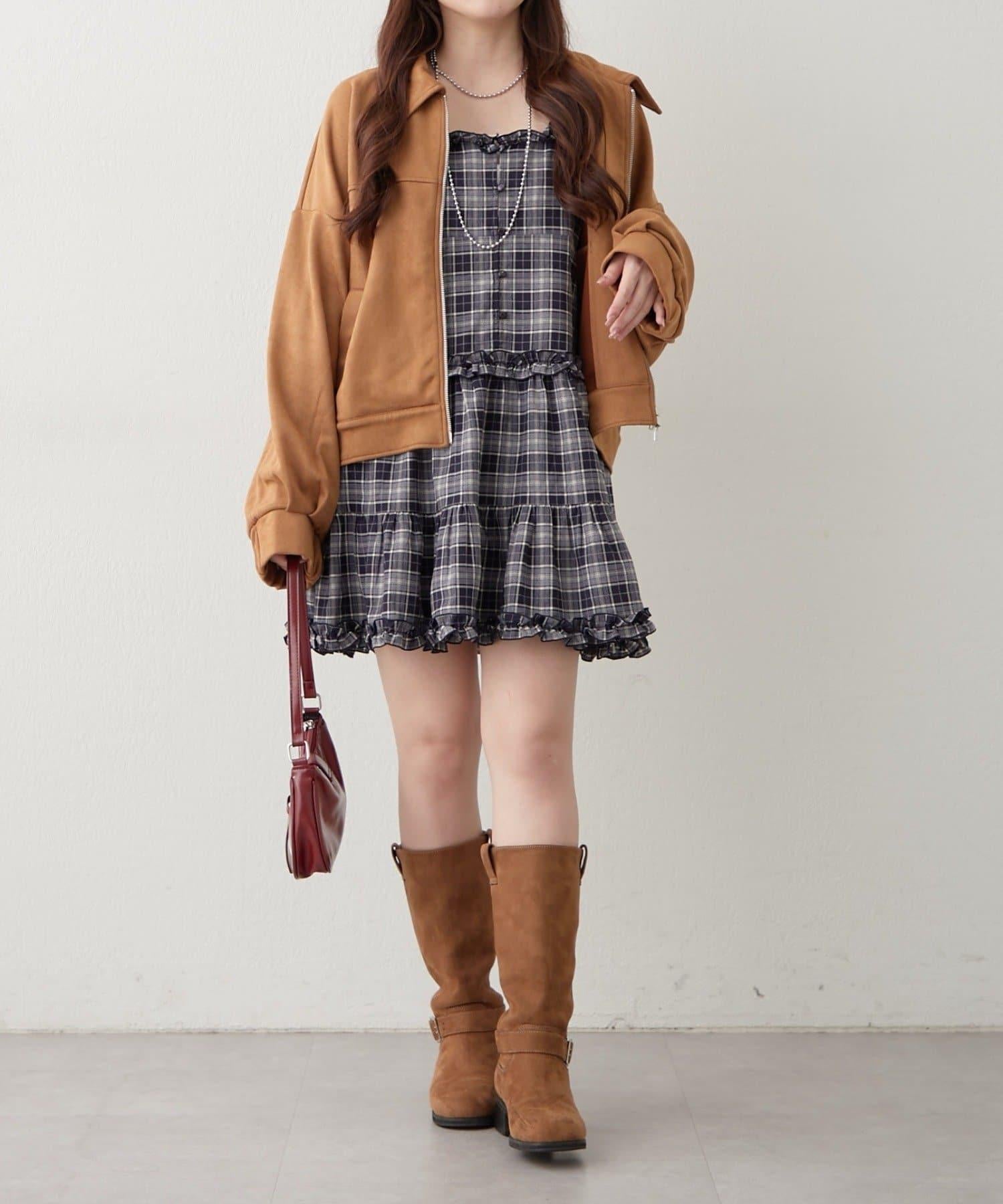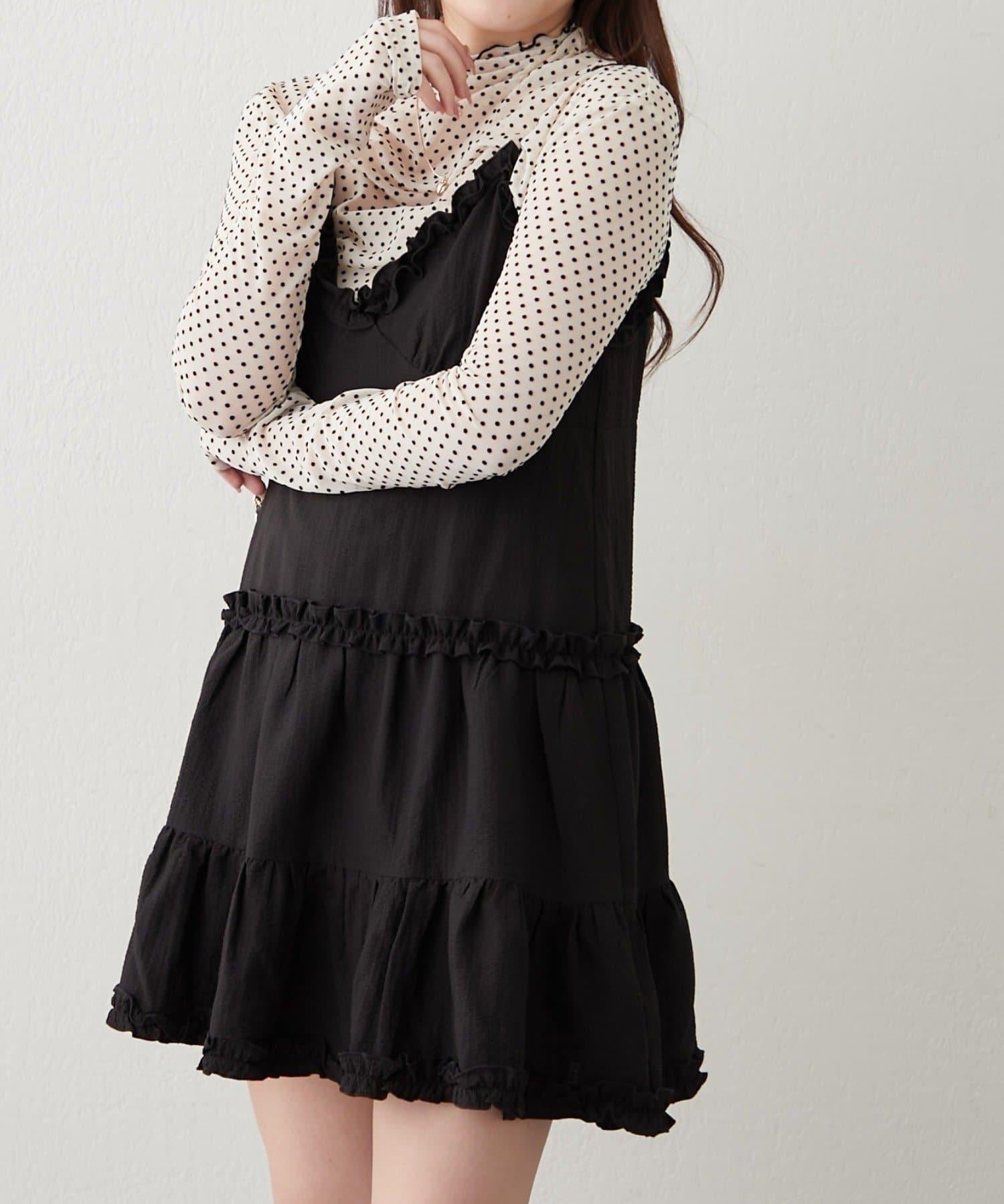 帶有荷葉邊和閃亮紐扣的吊帶長衫。