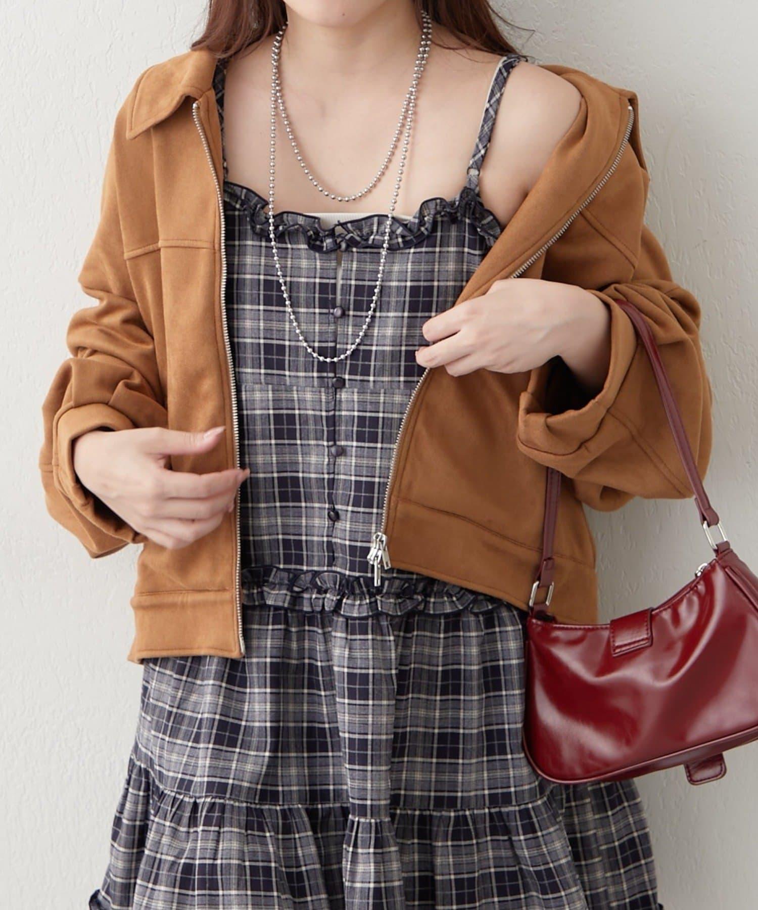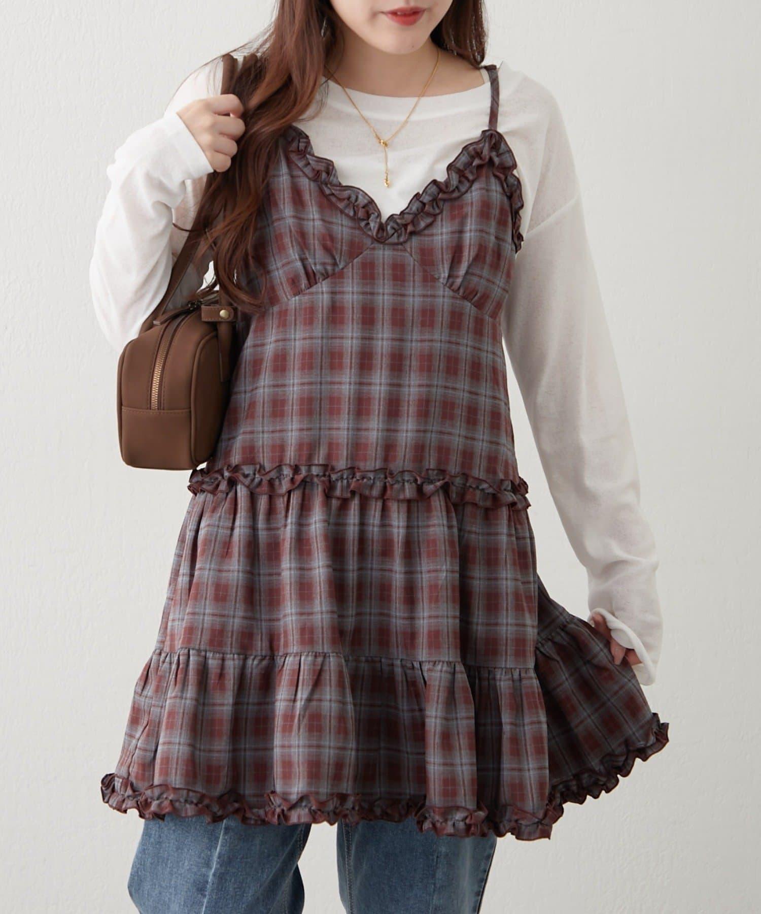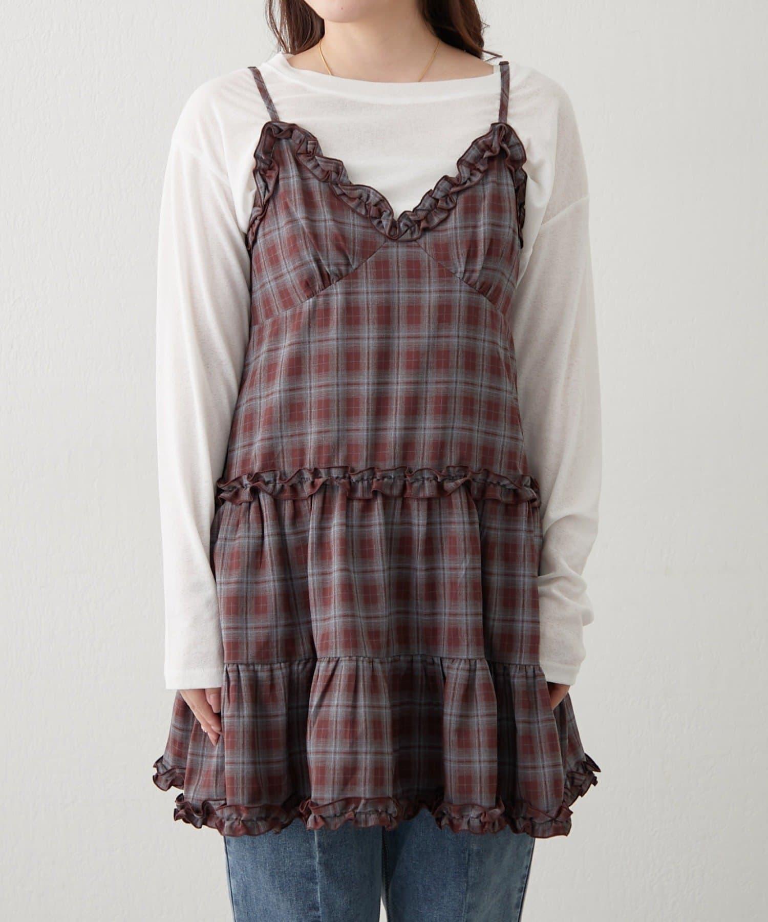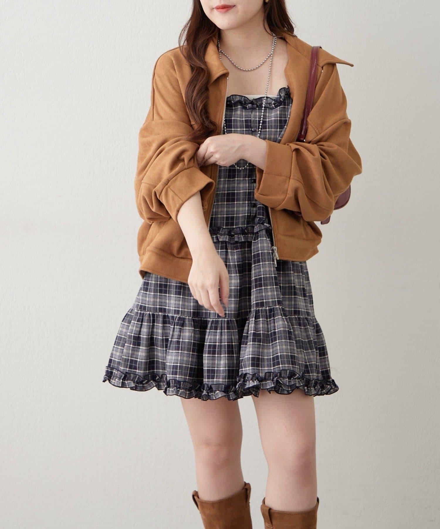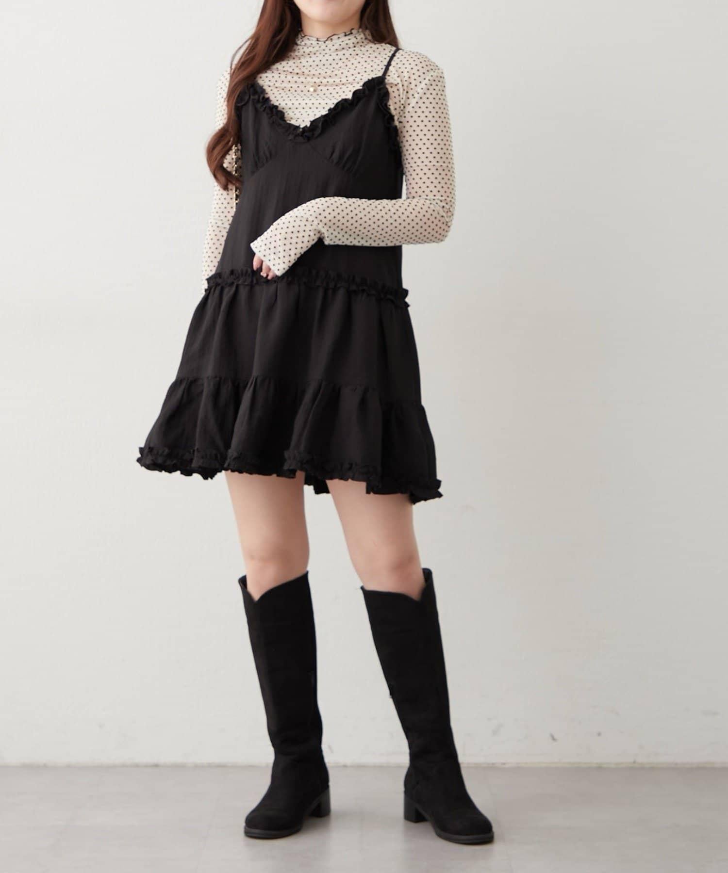 帶有荷葉邊和閃亮紐扣的吊帶長衫。