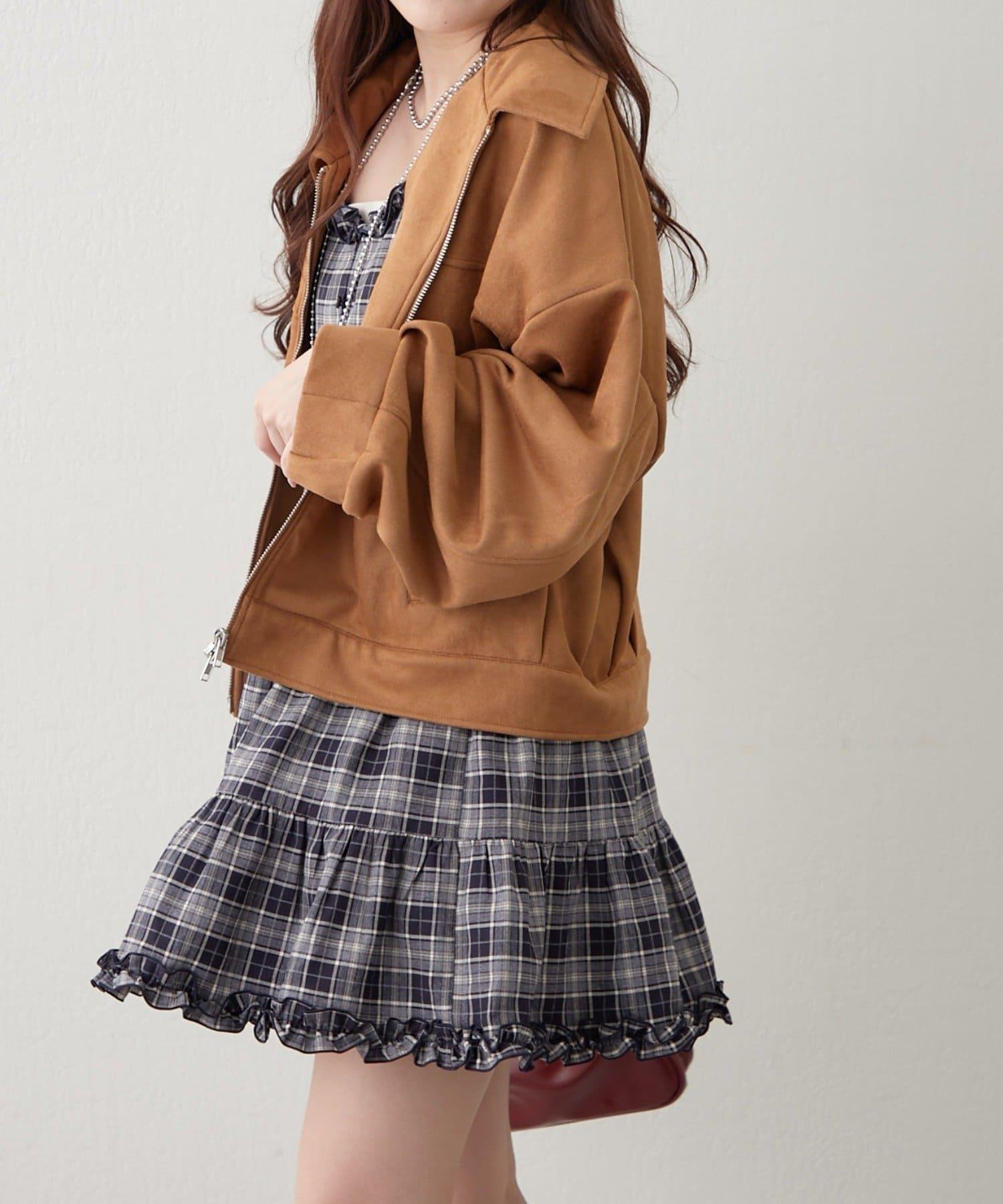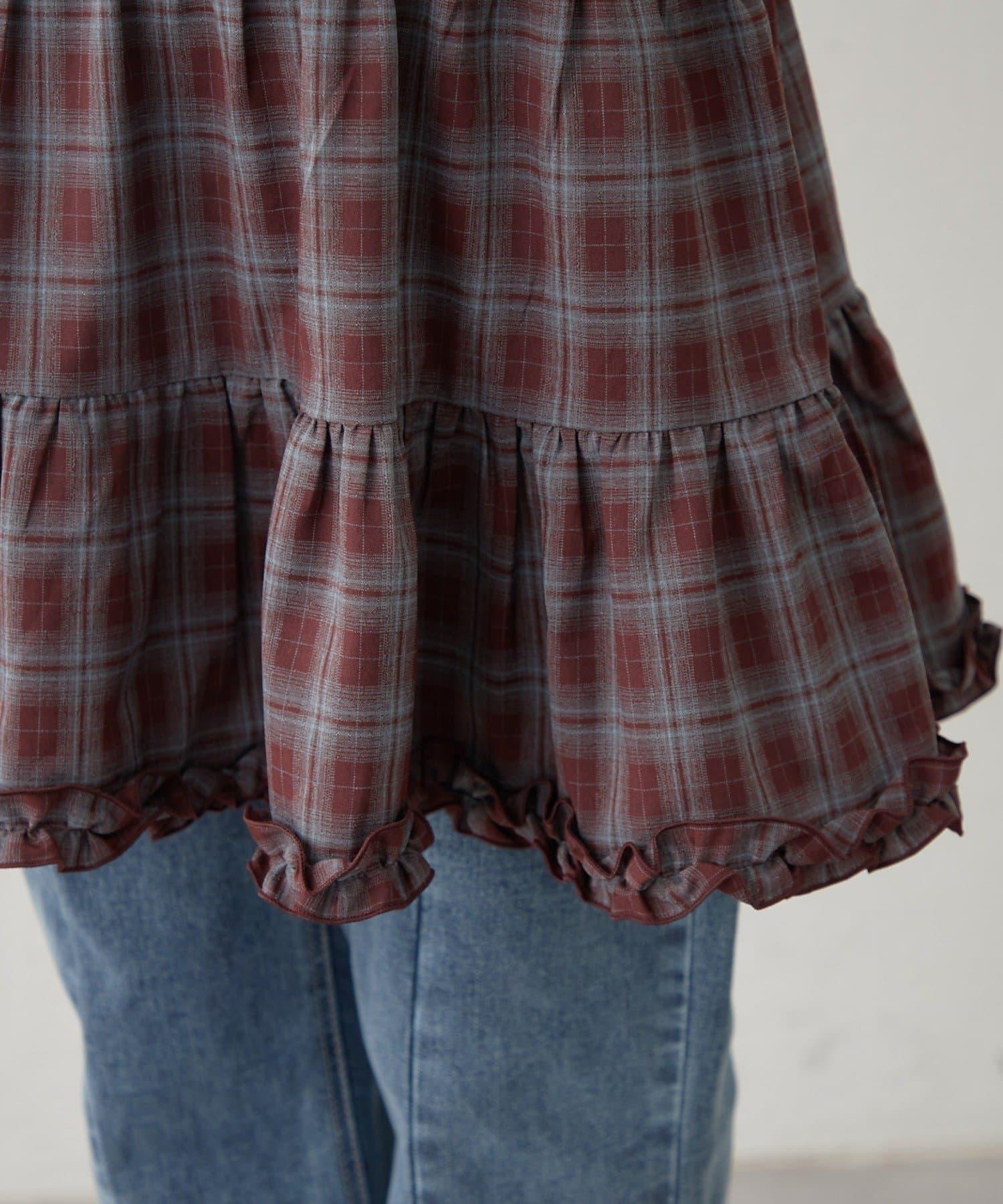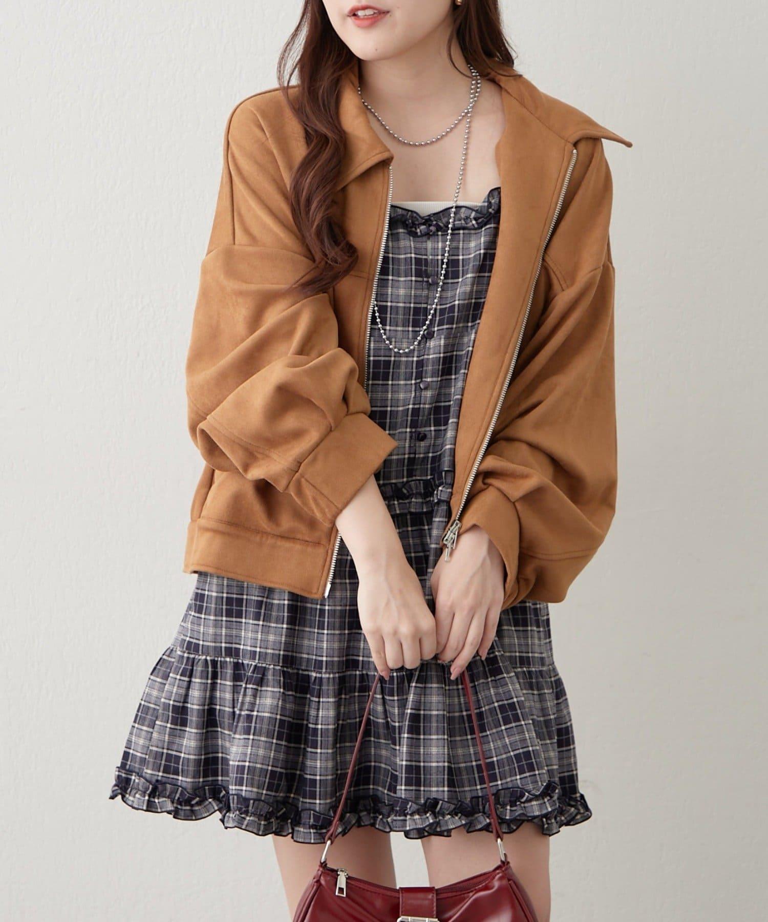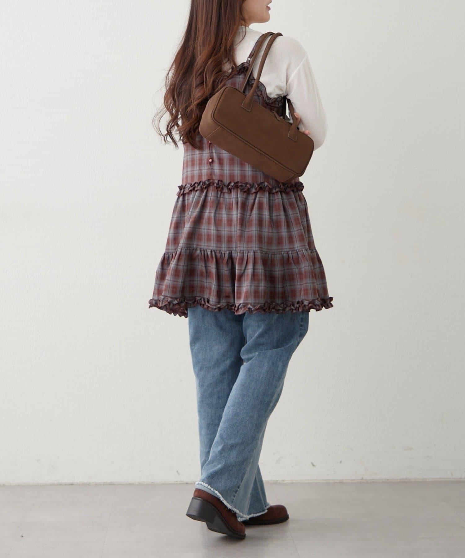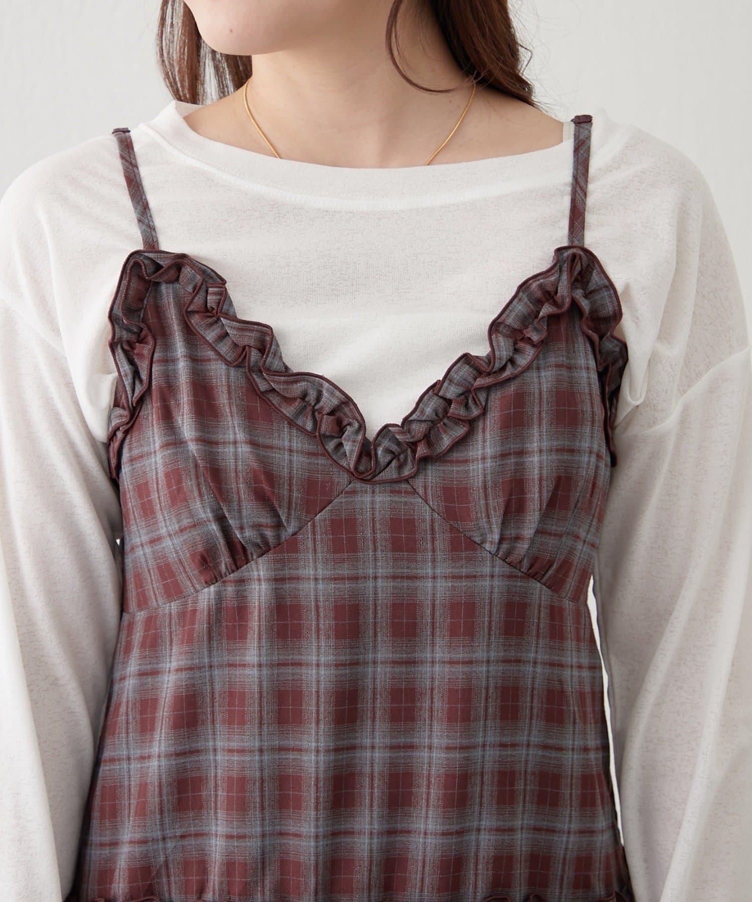 帶有荷葉邊和閃亮紐扣的吊帶長衫。