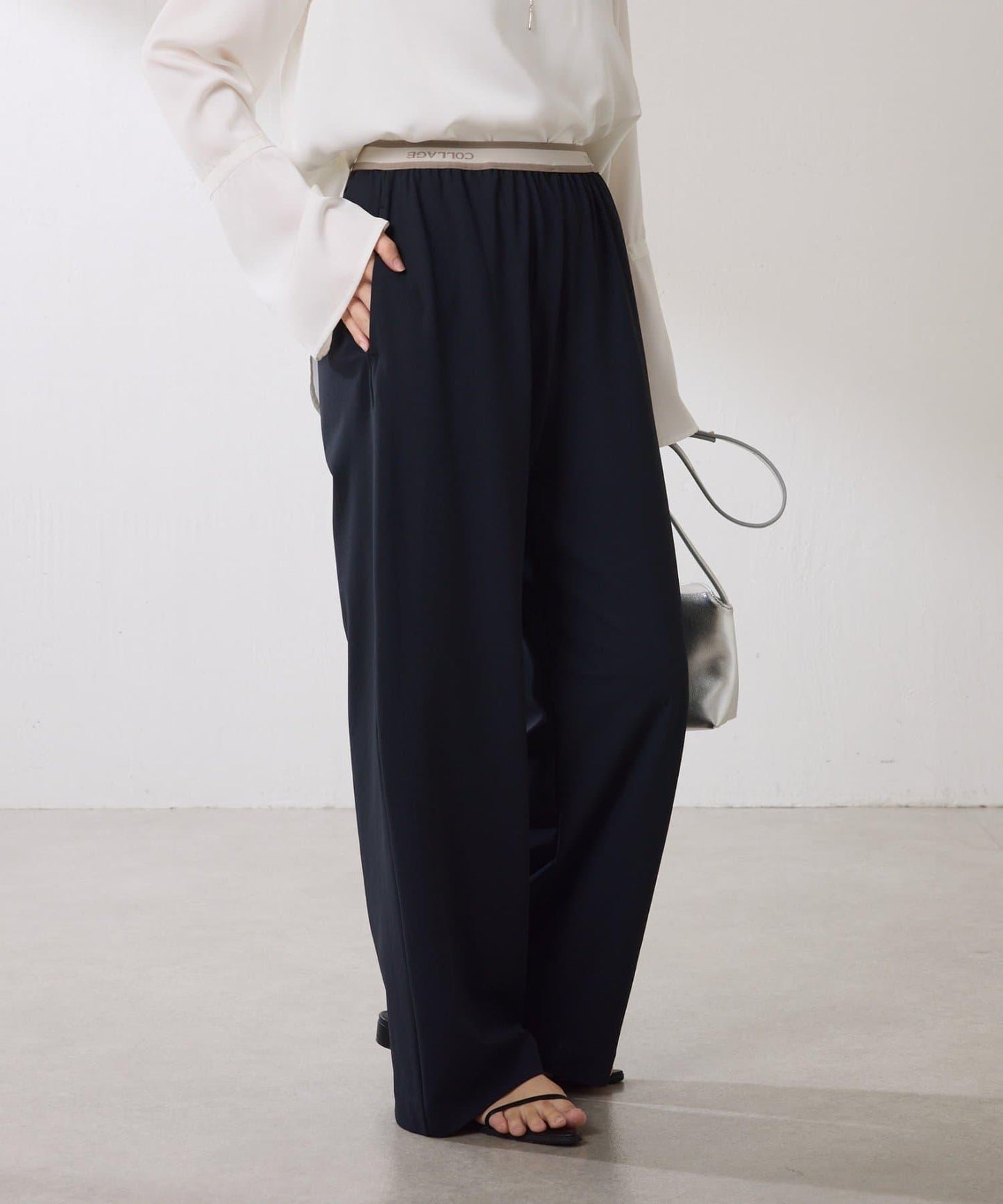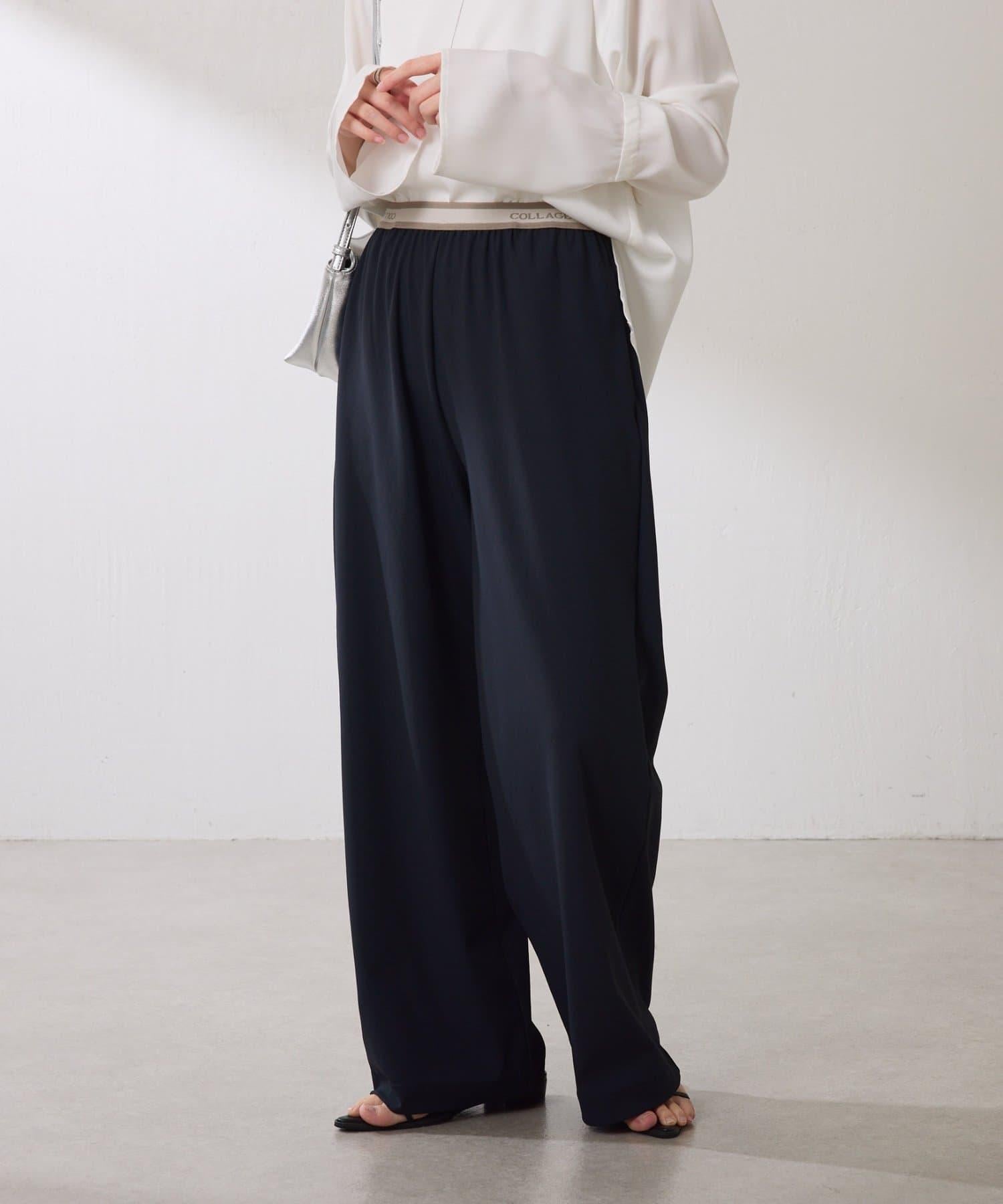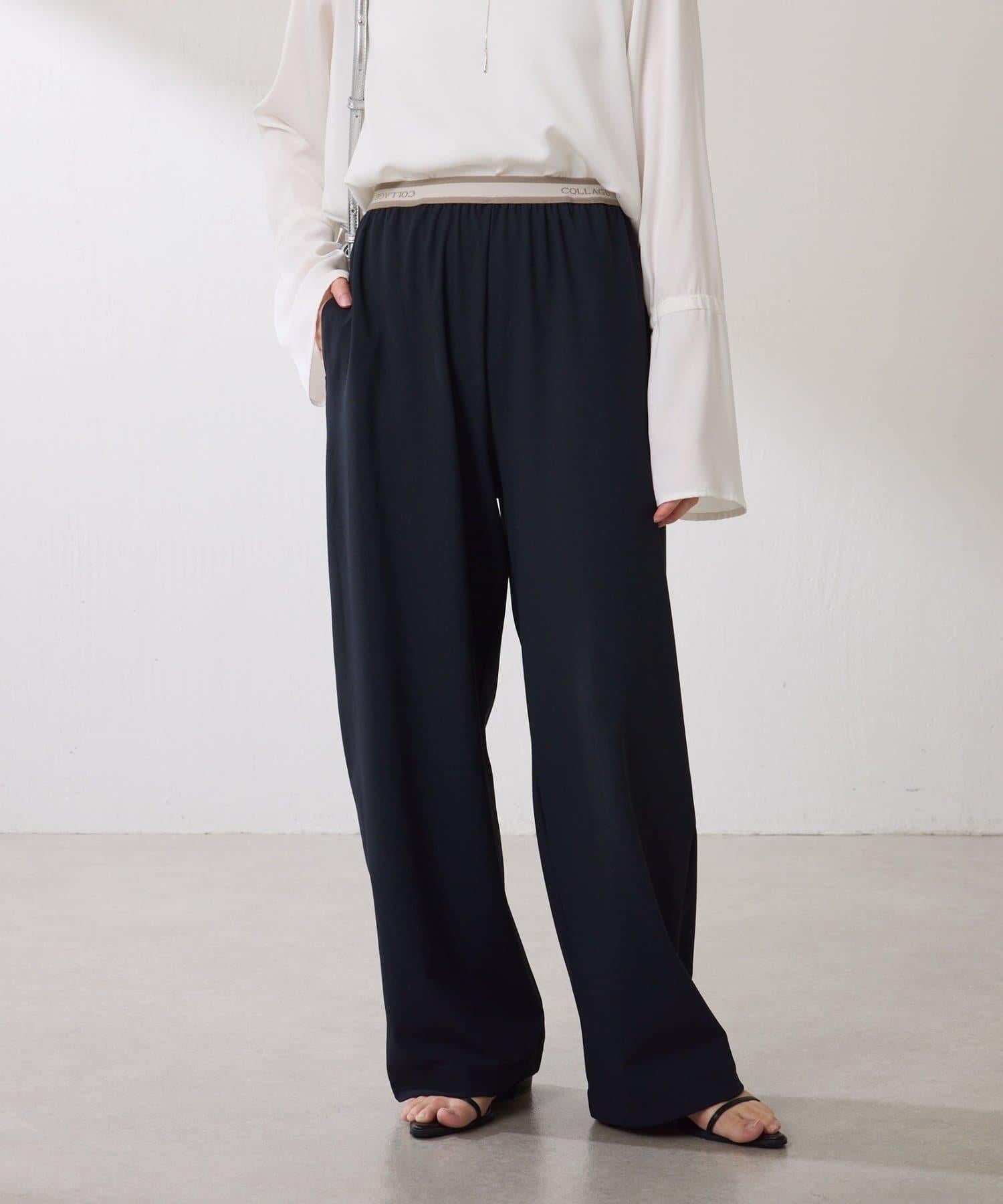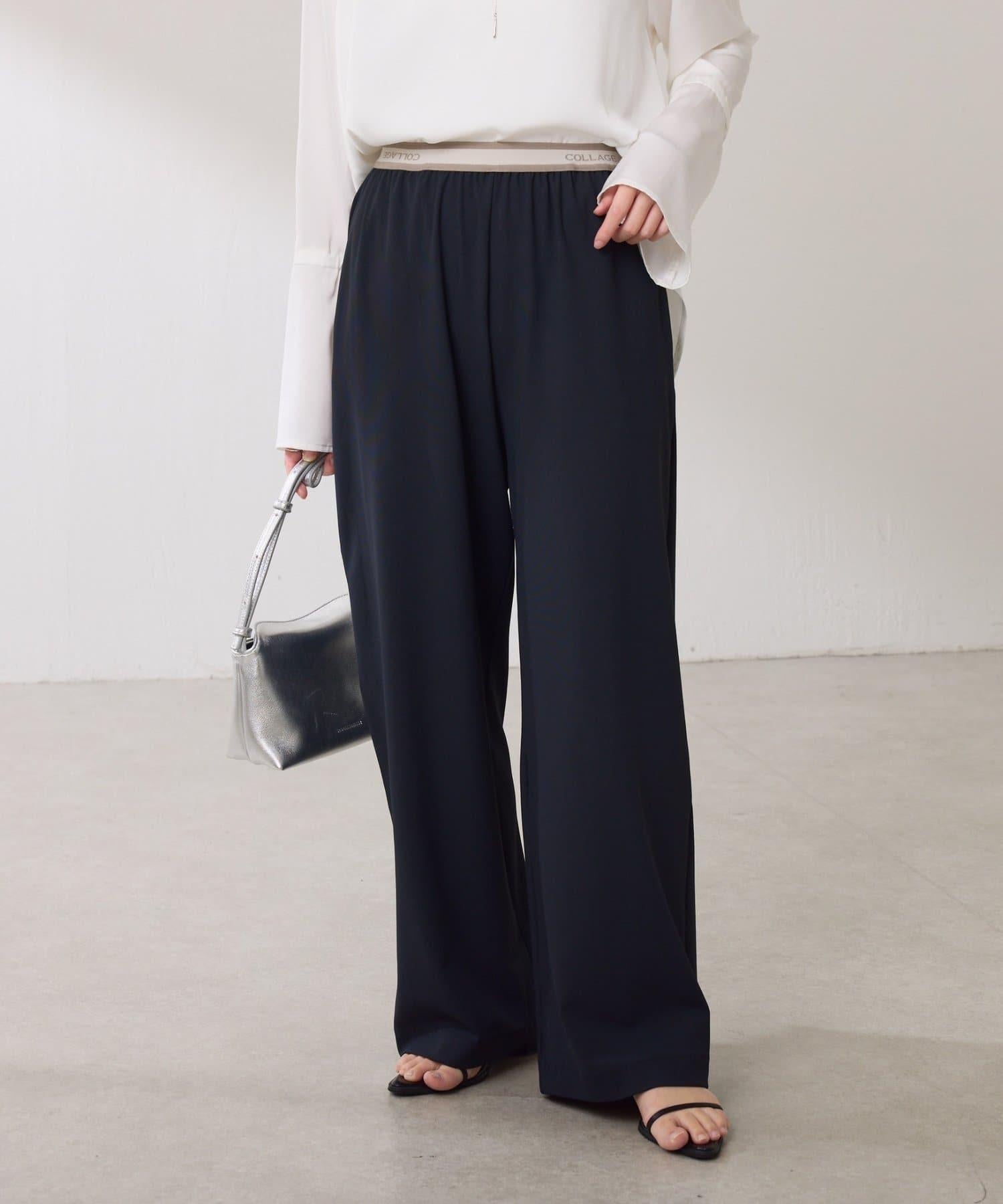 【人氣設計/腰部全鬆緊】標誌腰帶針織褲