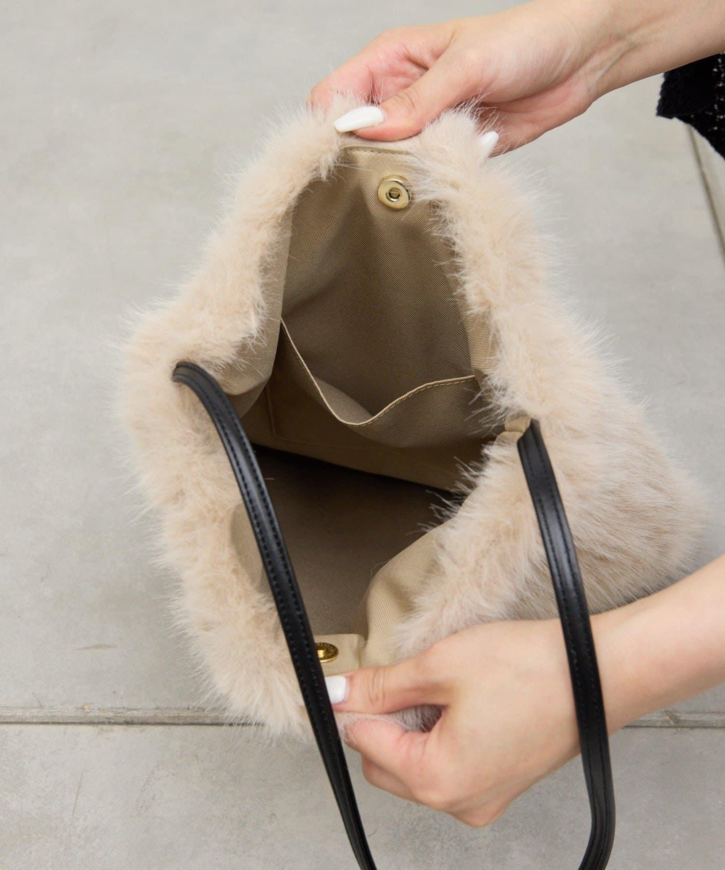 手感細膩的優雅皮草手提包。