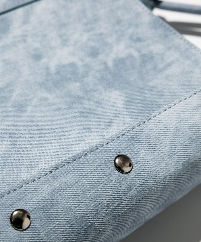 合成皮革配以牛仔布風格印花,是簡約搭配的完美之選。
