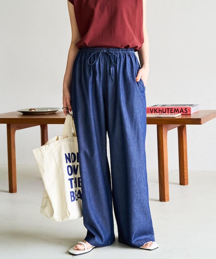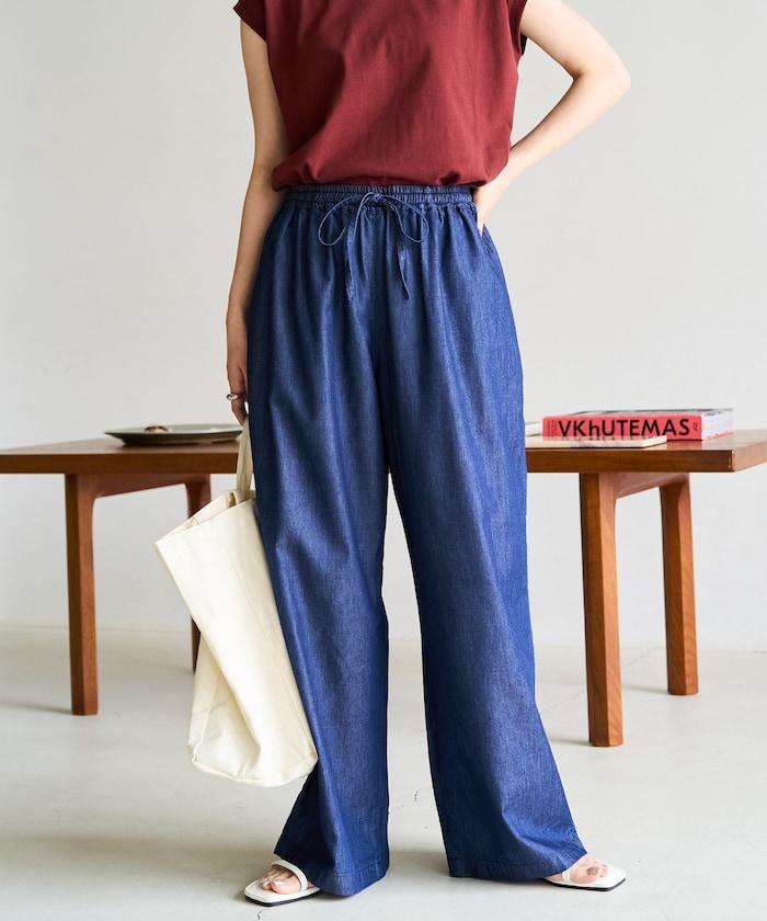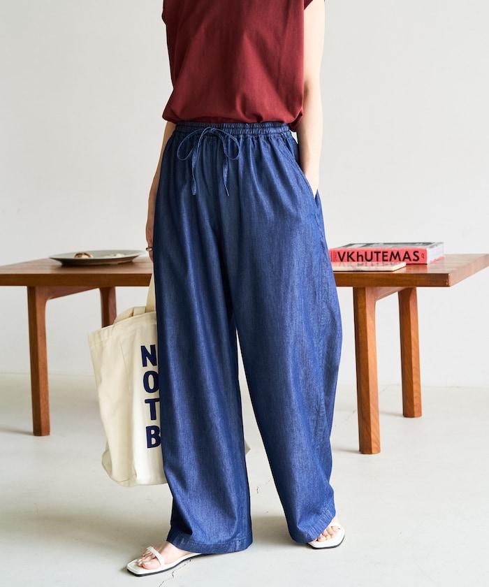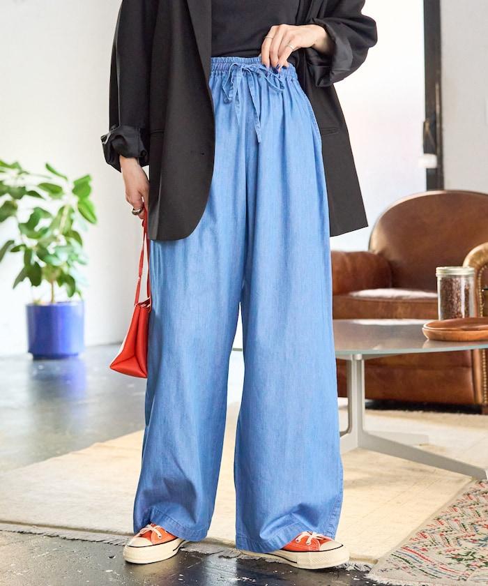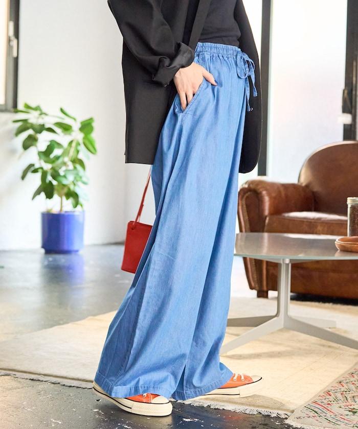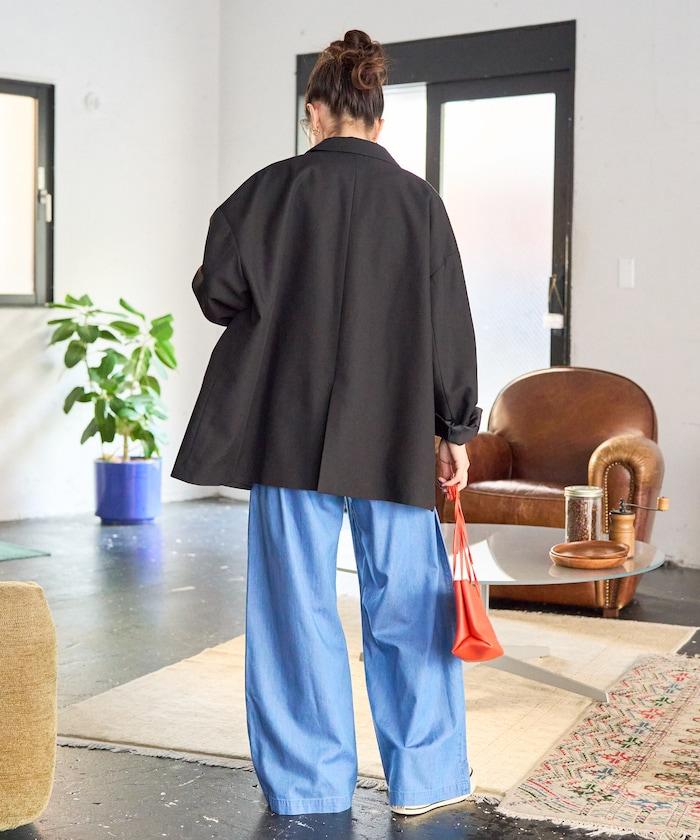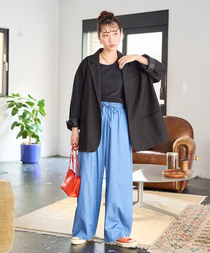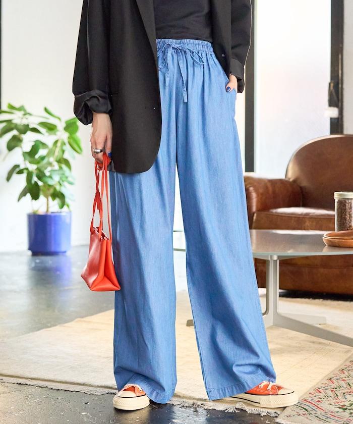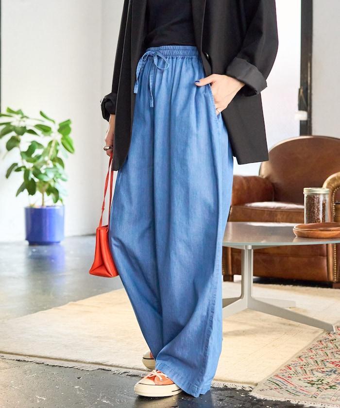 牛仔布質地的簡易長褲,廓形優美,給人輕鬆愜意的感覺。