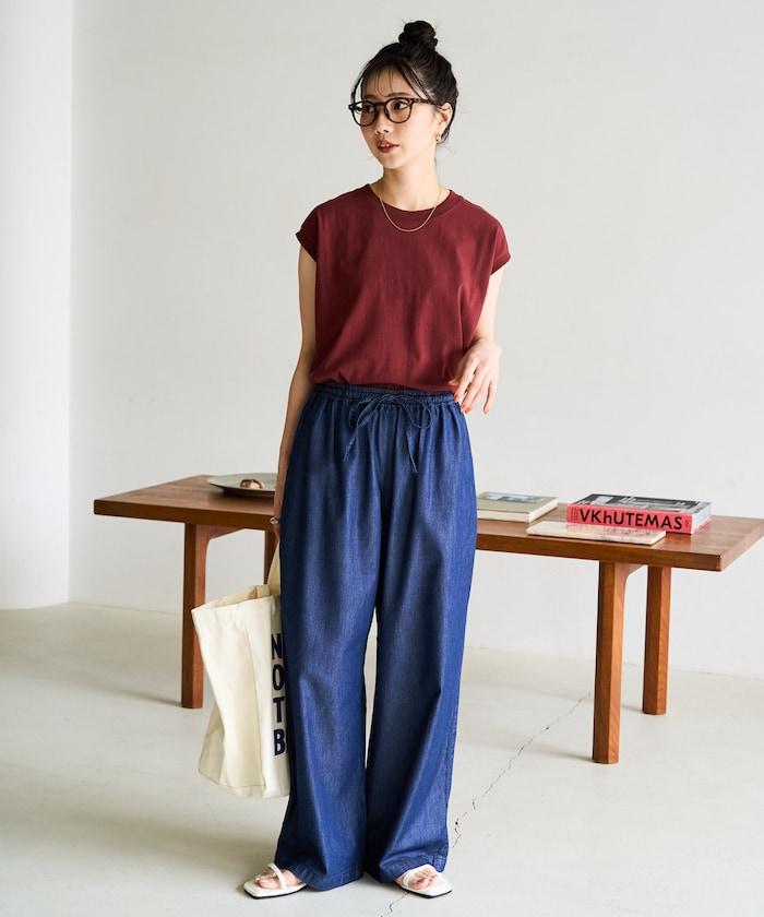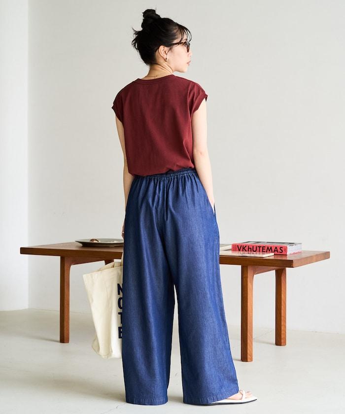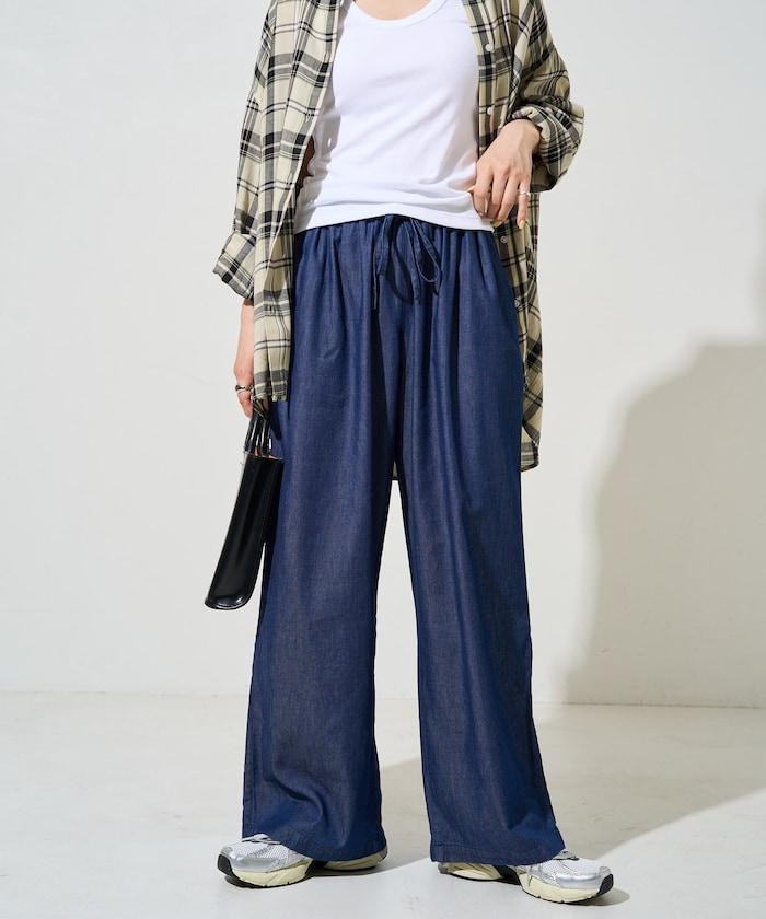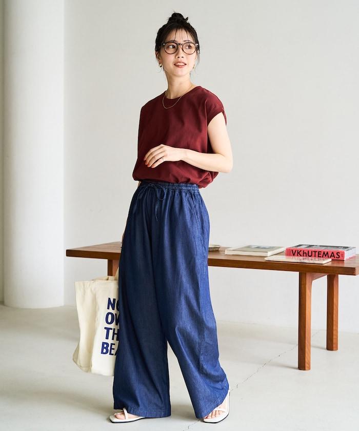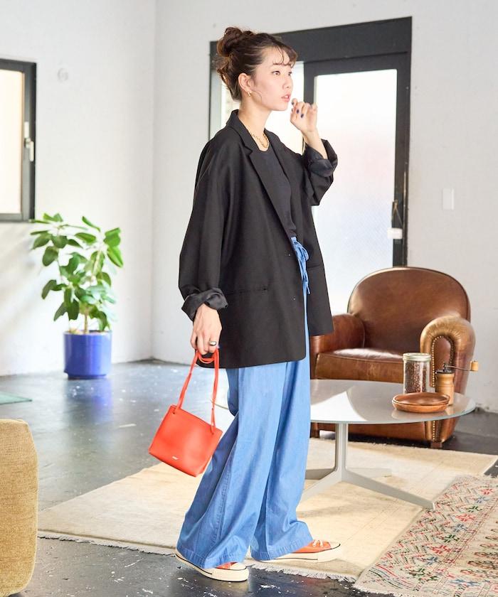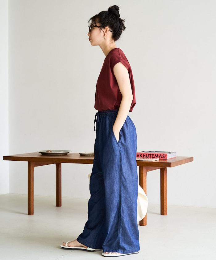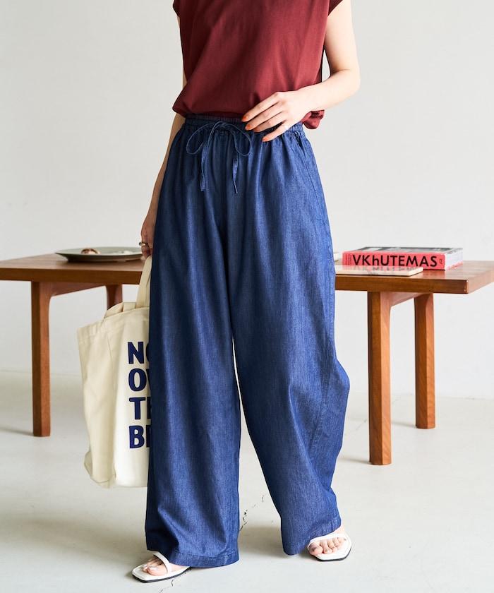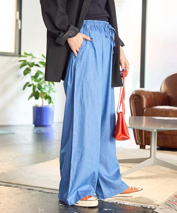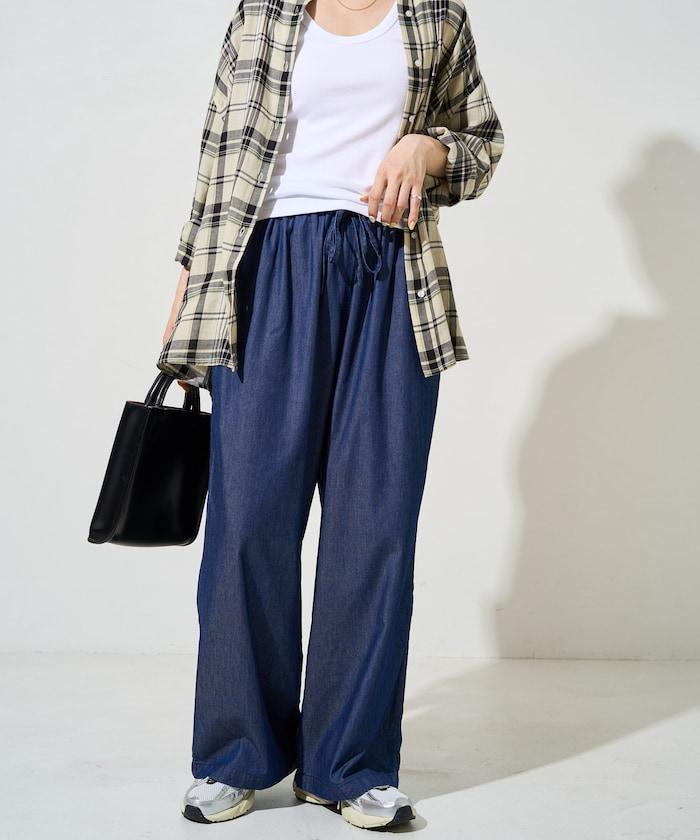 牛仔布質地的簡易長褲,廓形優美,給人輕鬆愜意的感覺。