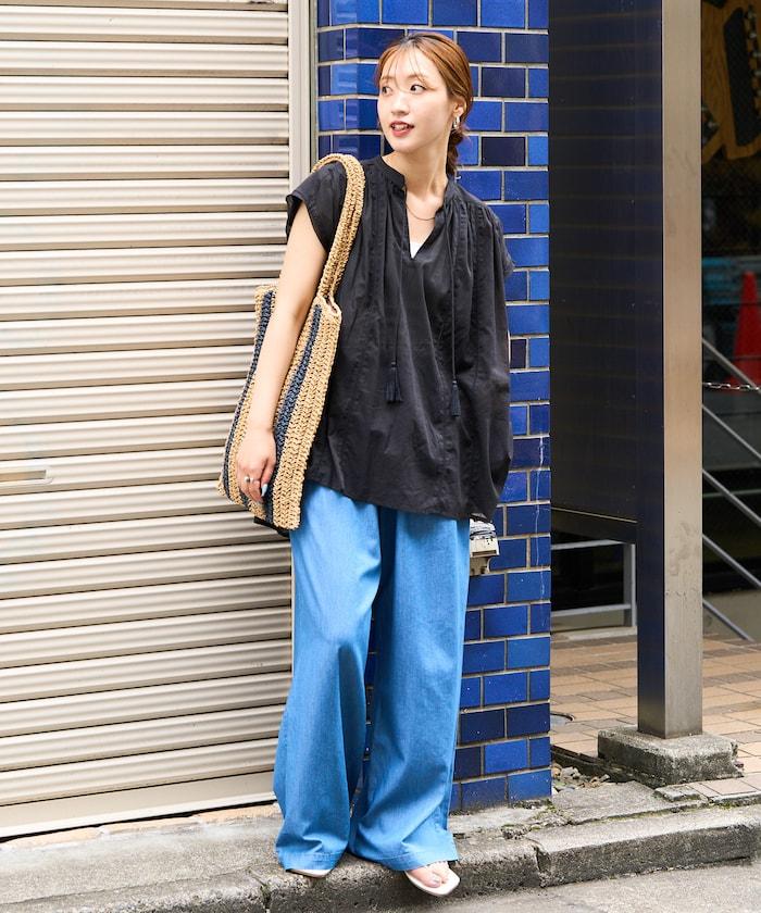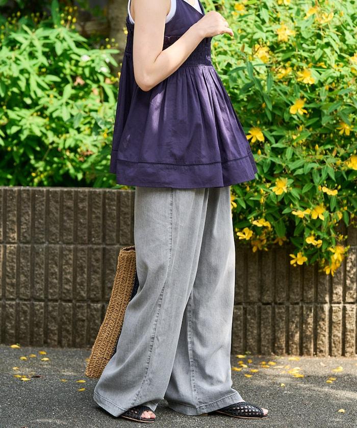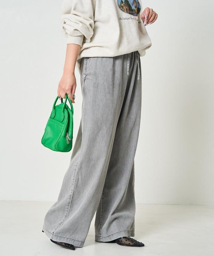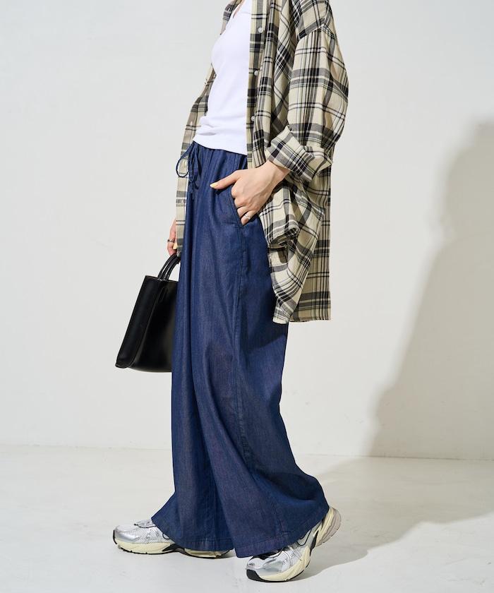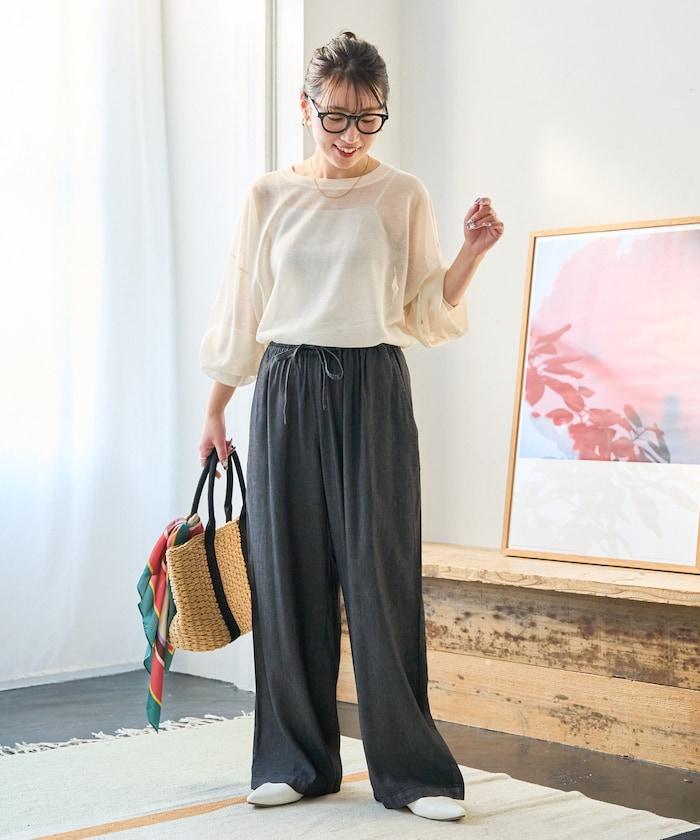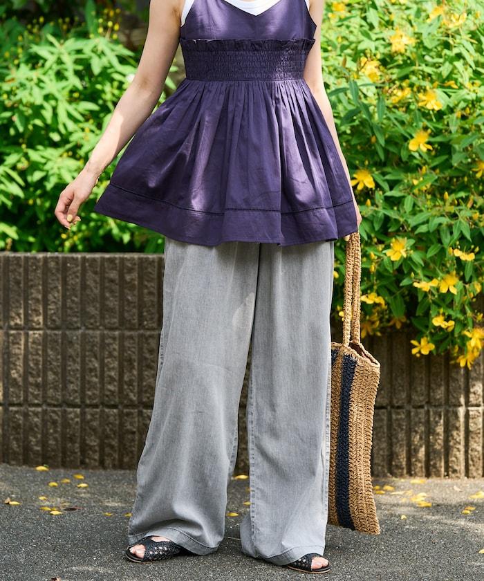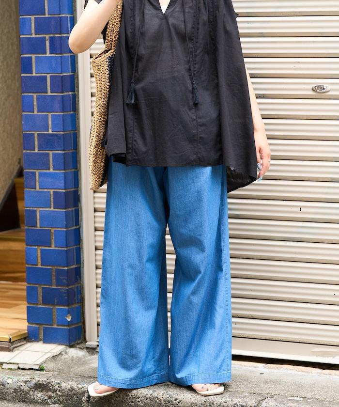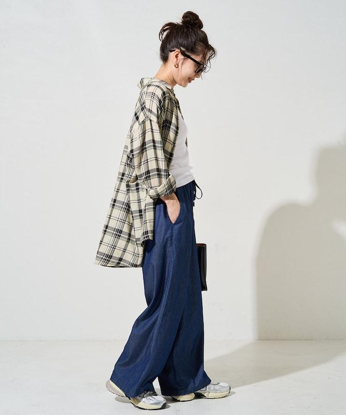 牛仔布質地的簡易長褲,廓形優美,給人輕鬆愜意的感覺。