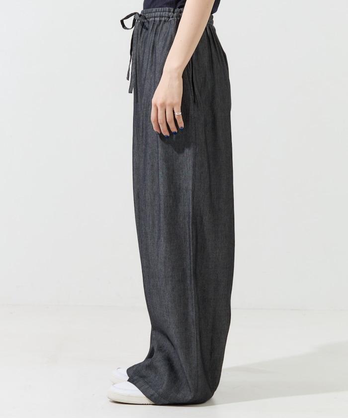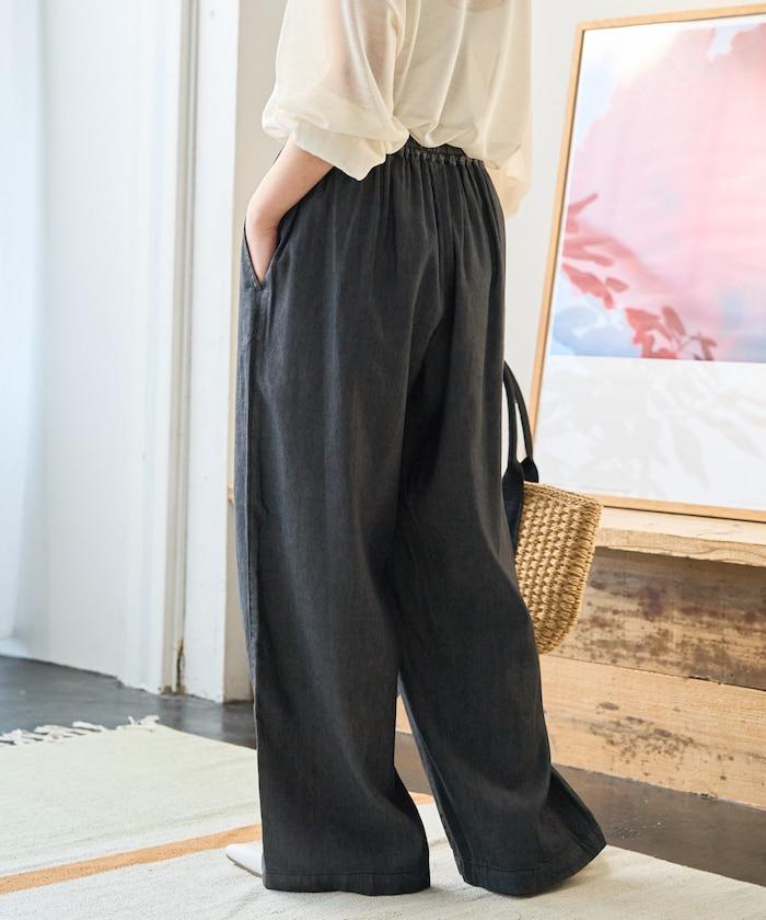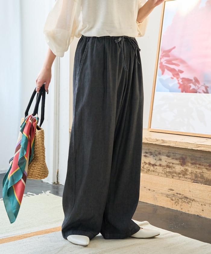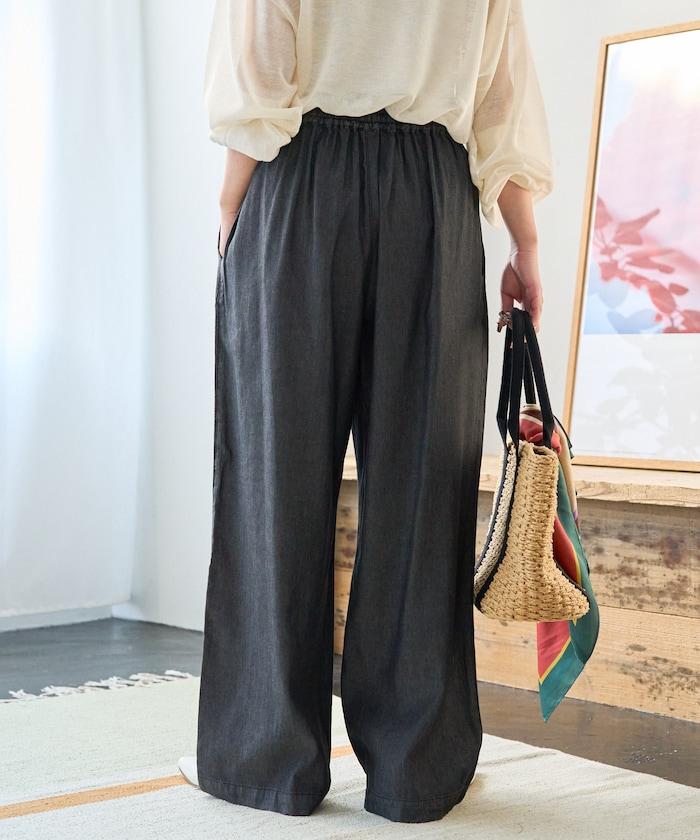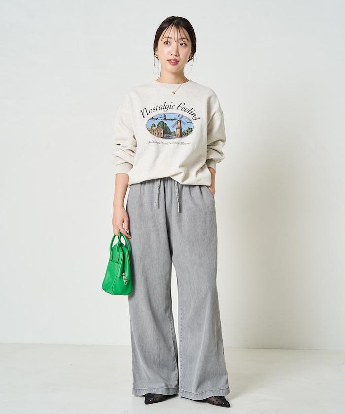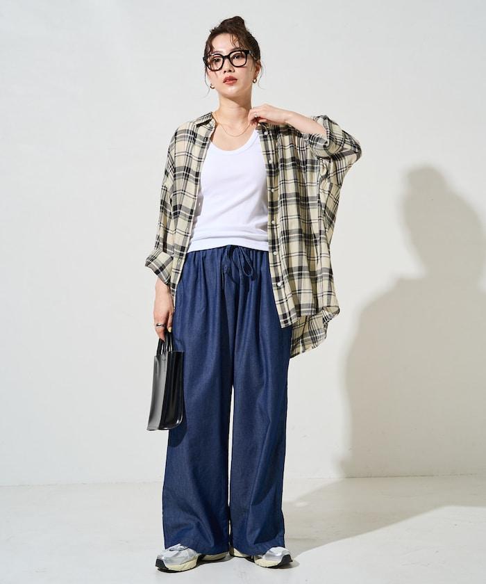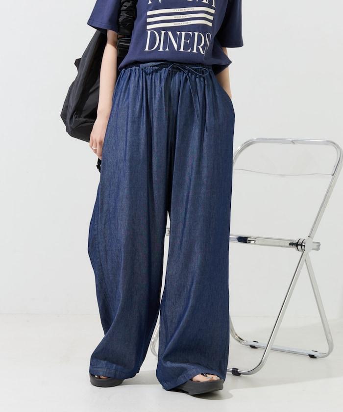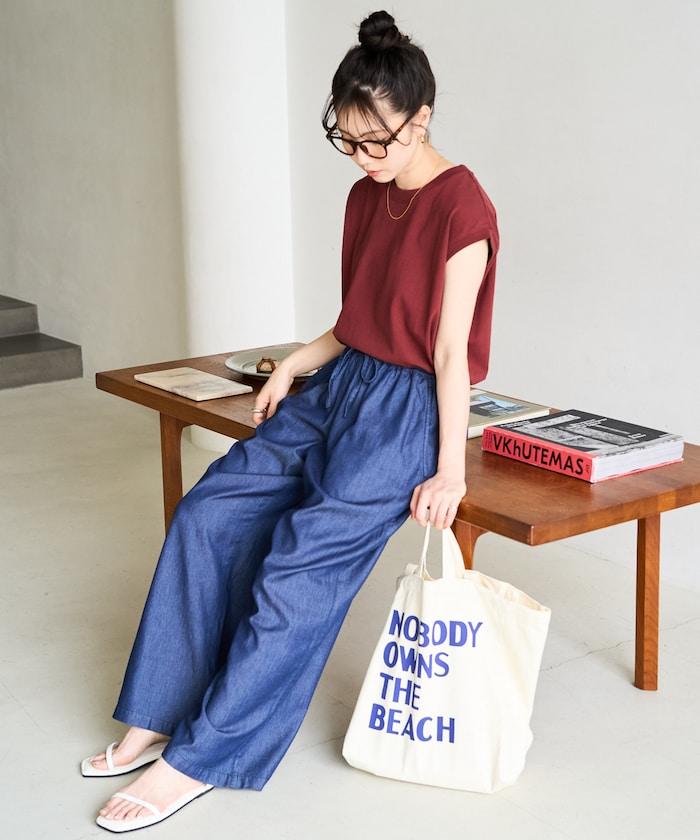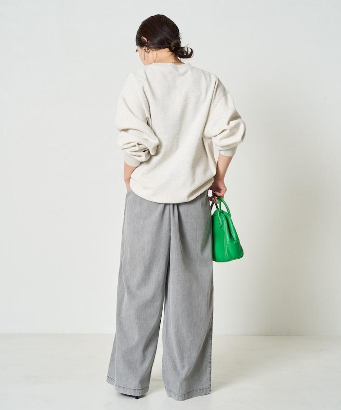 牛仔布質地的簡易長褲,廓形優美,給人輕鬆愜意的感覺。