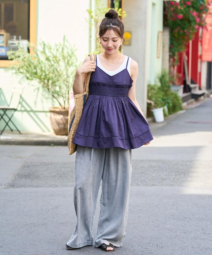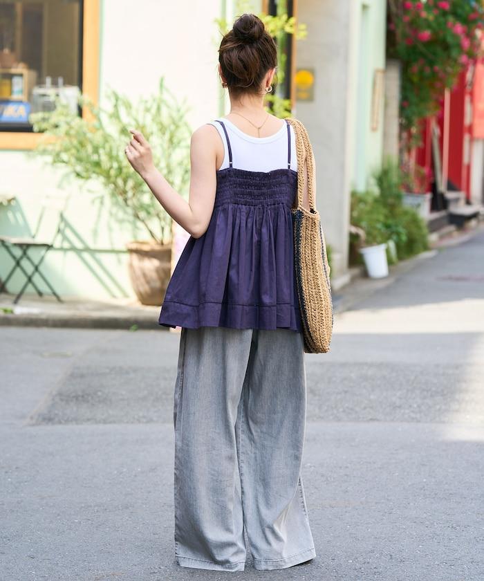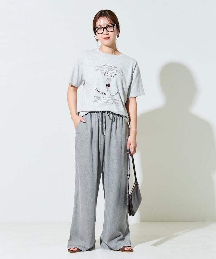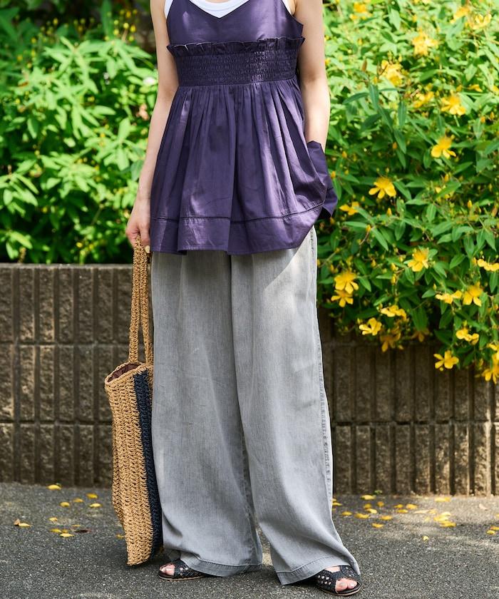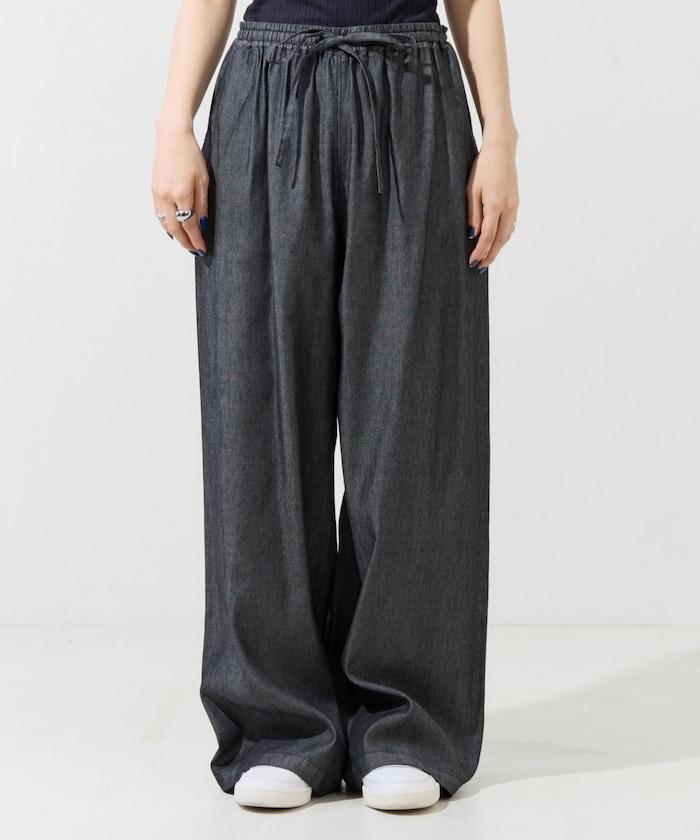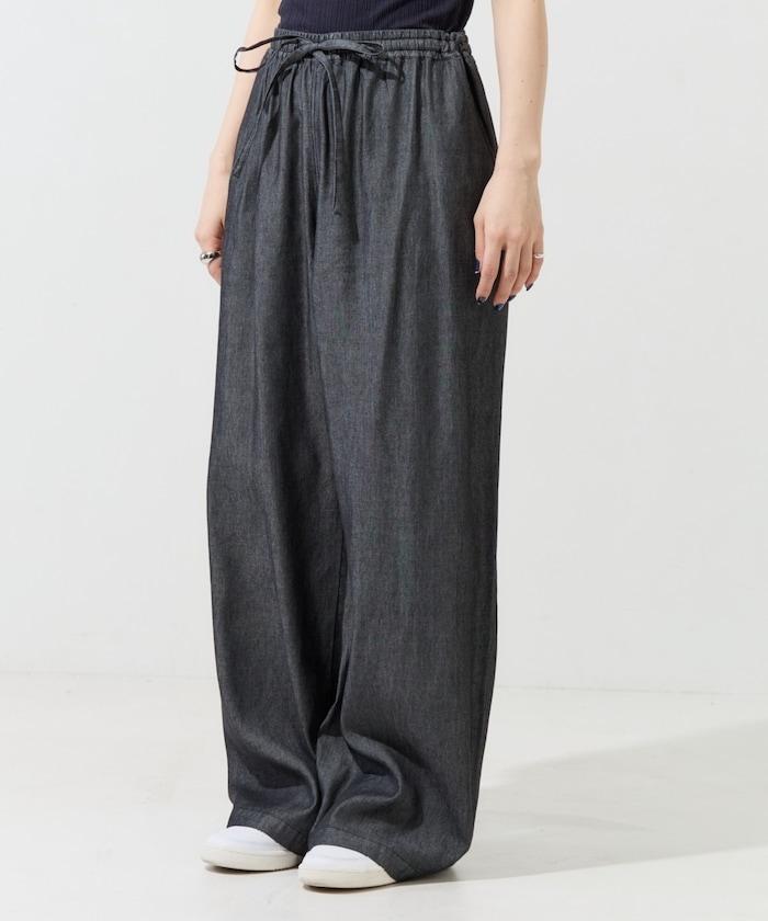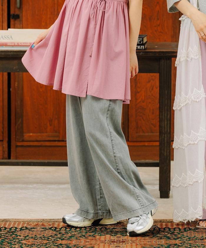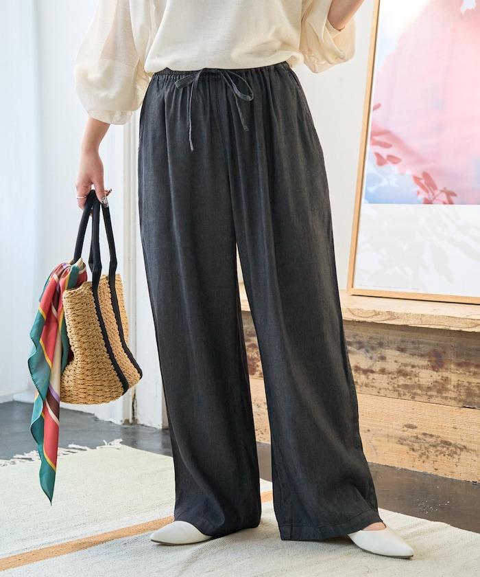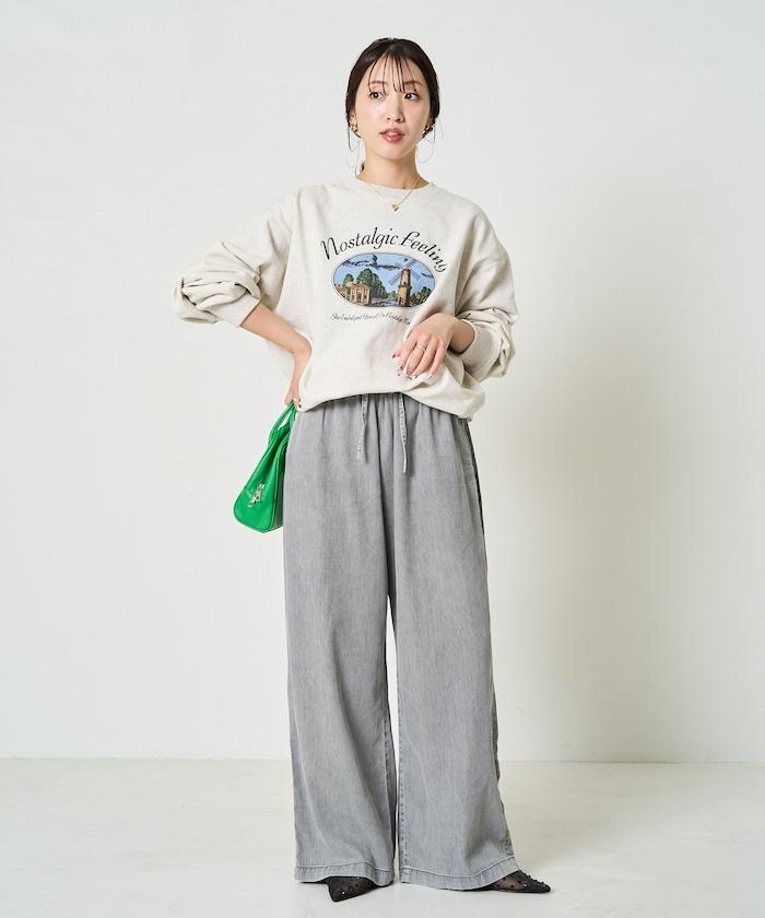 牛仔布質地的簡易長褲,廓形優美,給人輕鬆愜意的感覺。
