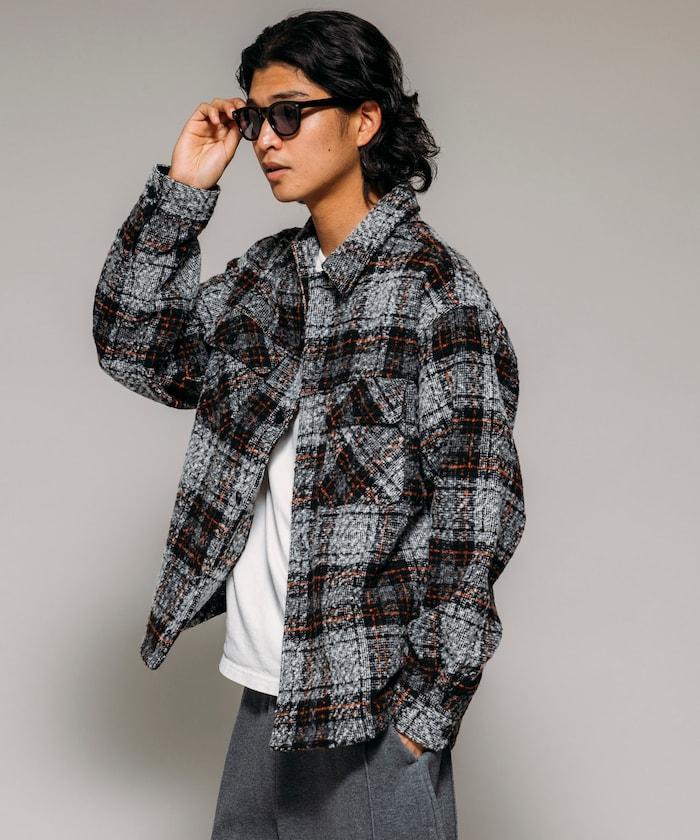 仿呢格紋CPO襯衫夾克