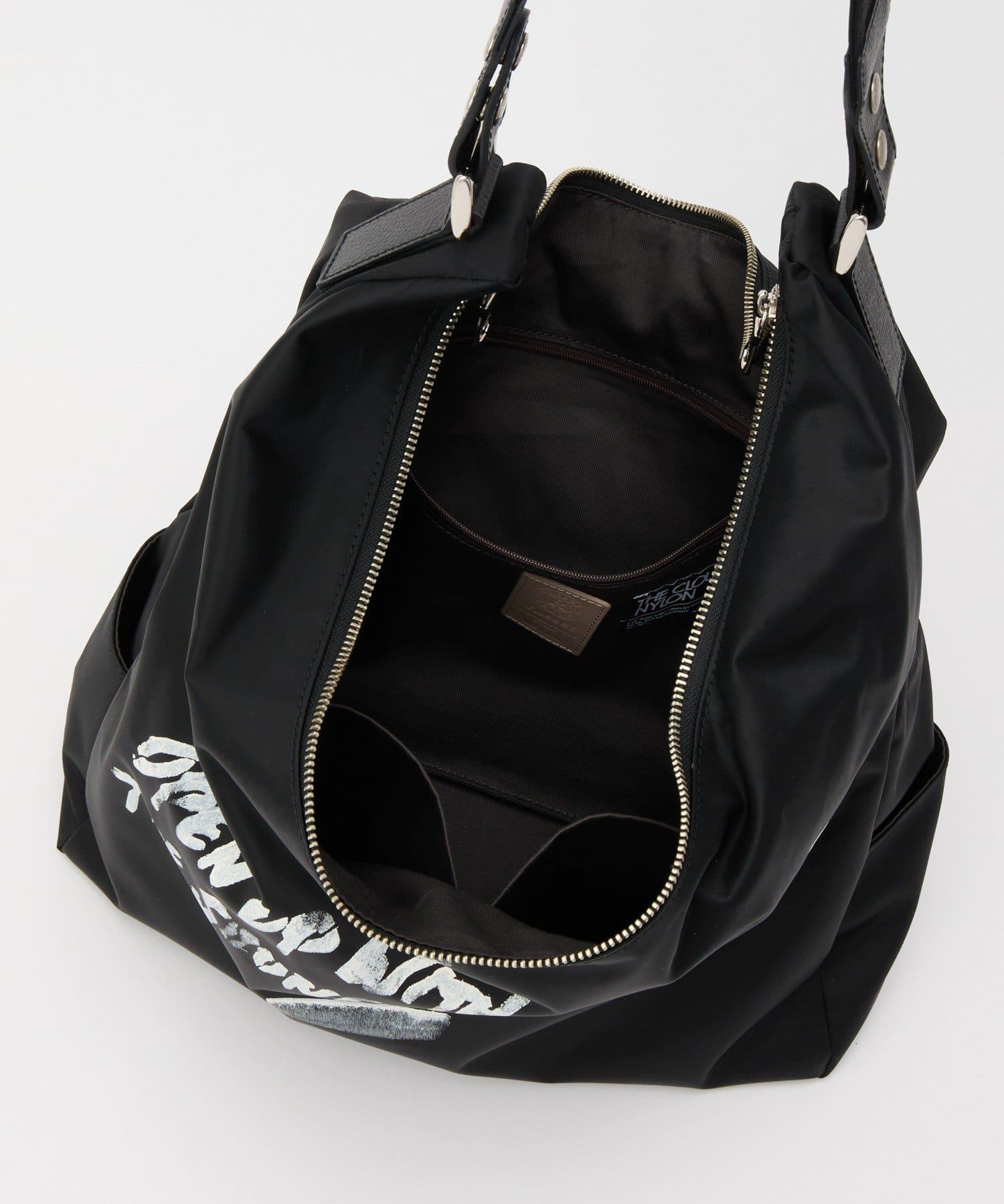 在一款深受歡迎的赤褐色雙肩包上,印上了森谷勉(Tsutomu Moriya)的特別設計,森谷勉主要從事模板藝術創作。