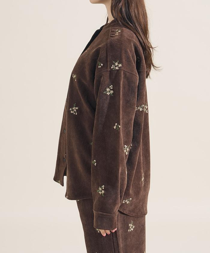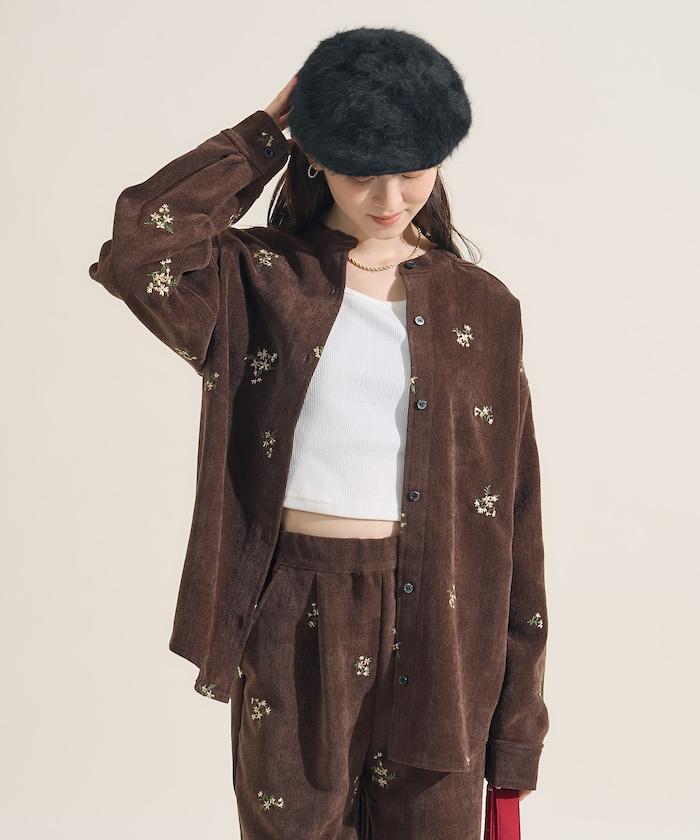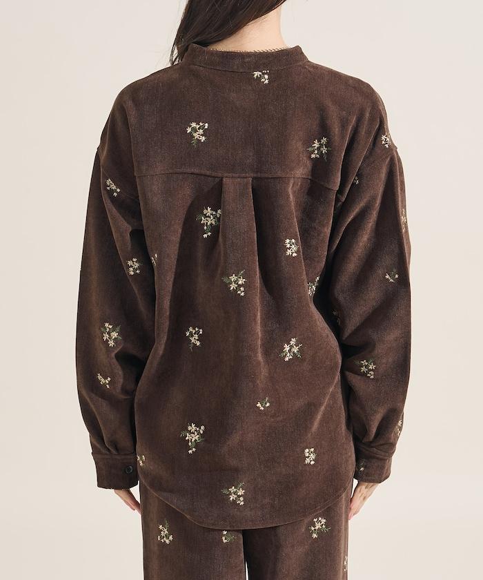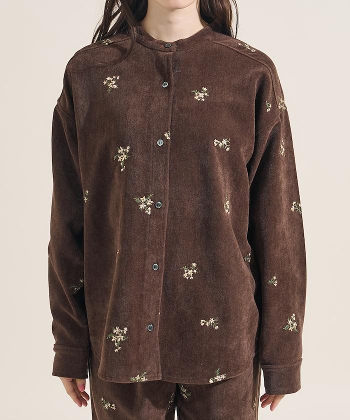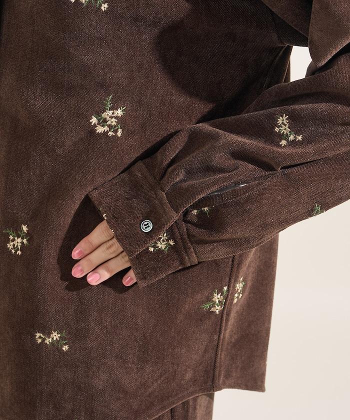 仿天鵝絨平紋燈芯絨小花圖案襯衫<可搭配套裝>